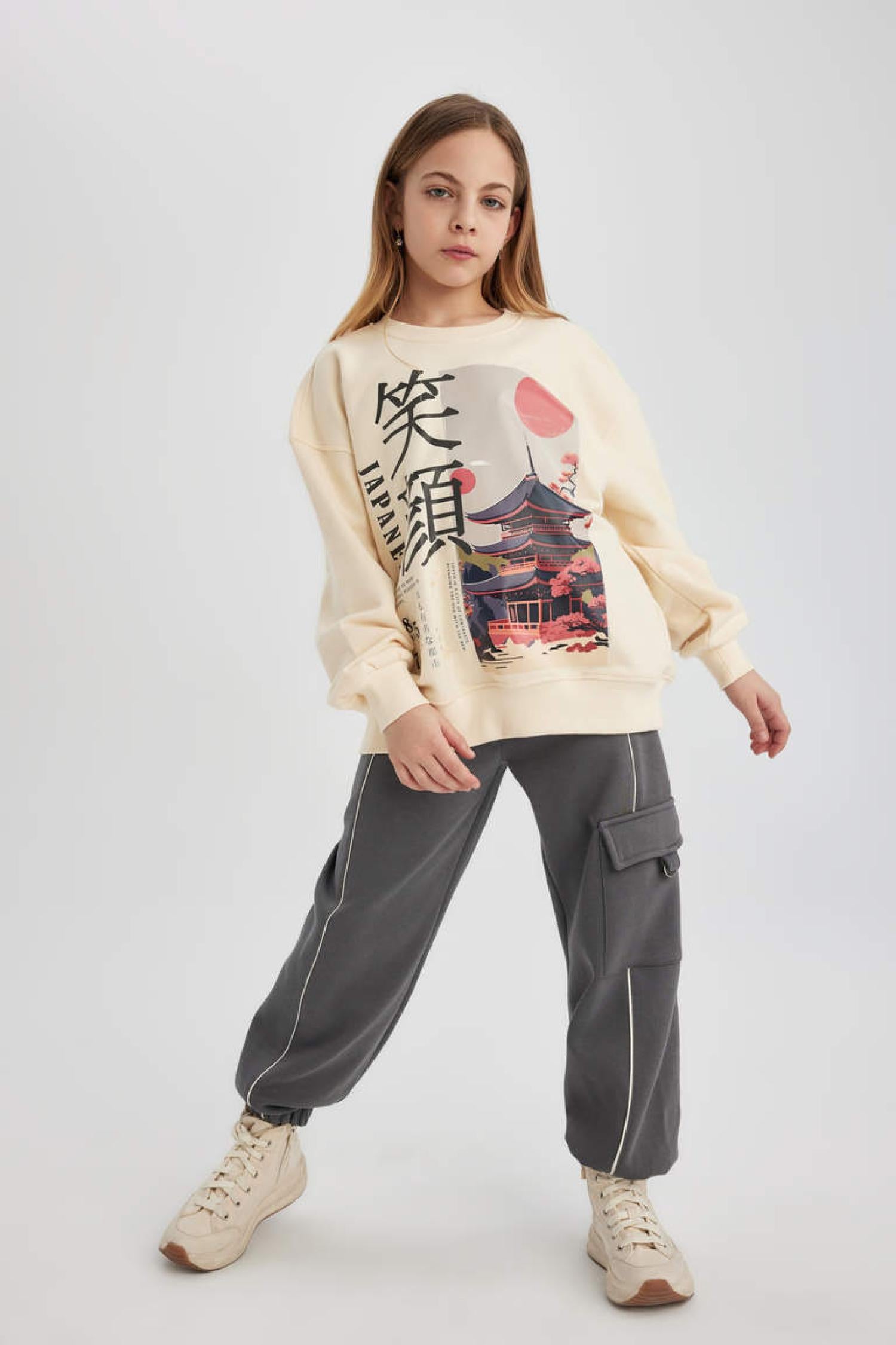 Defacto C0307A8 Ss Kız Çocuk Loose Fit Kalın Kargo Cepli Eşofman Altı