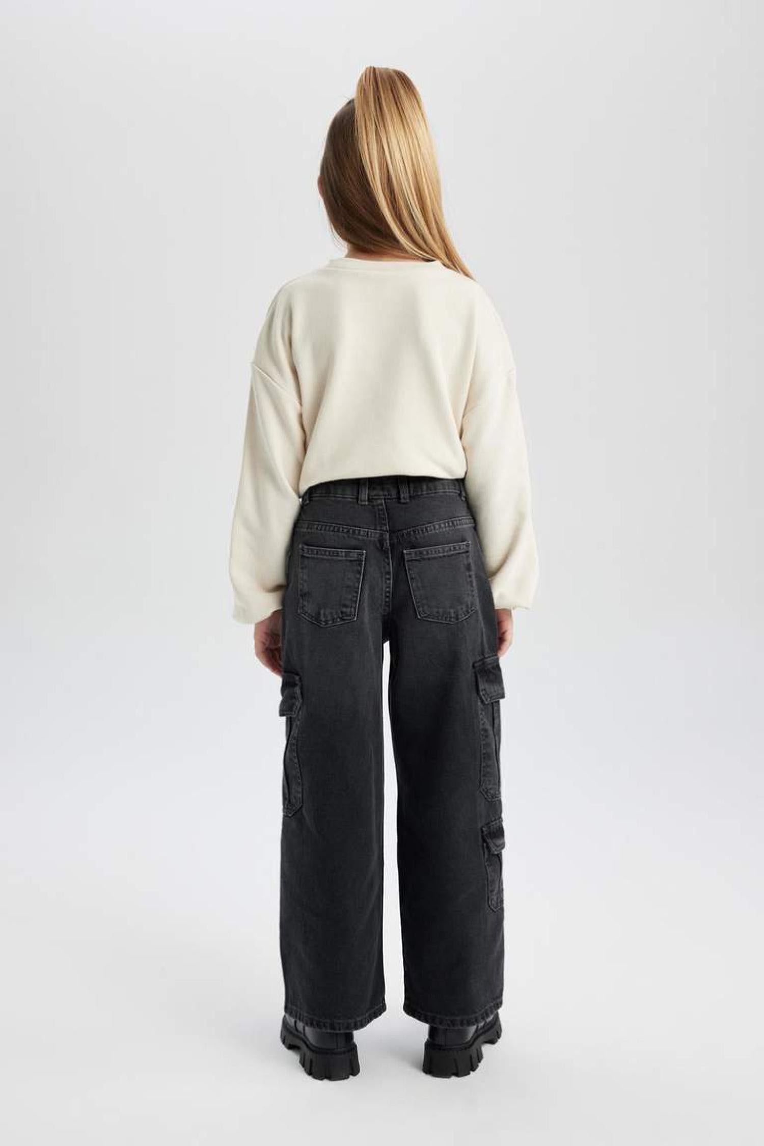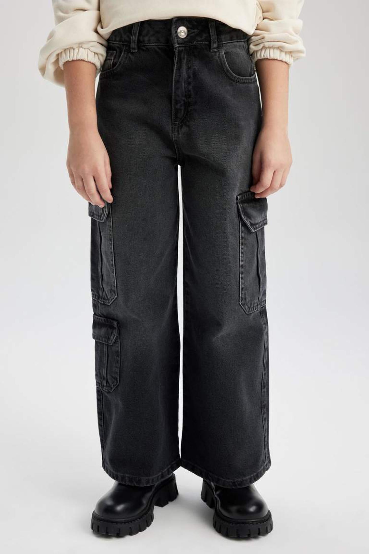 Defacto B9819A8 Ss Kız Çocuk Wide Leg Kargo Geniş Paça Jean Pantolon