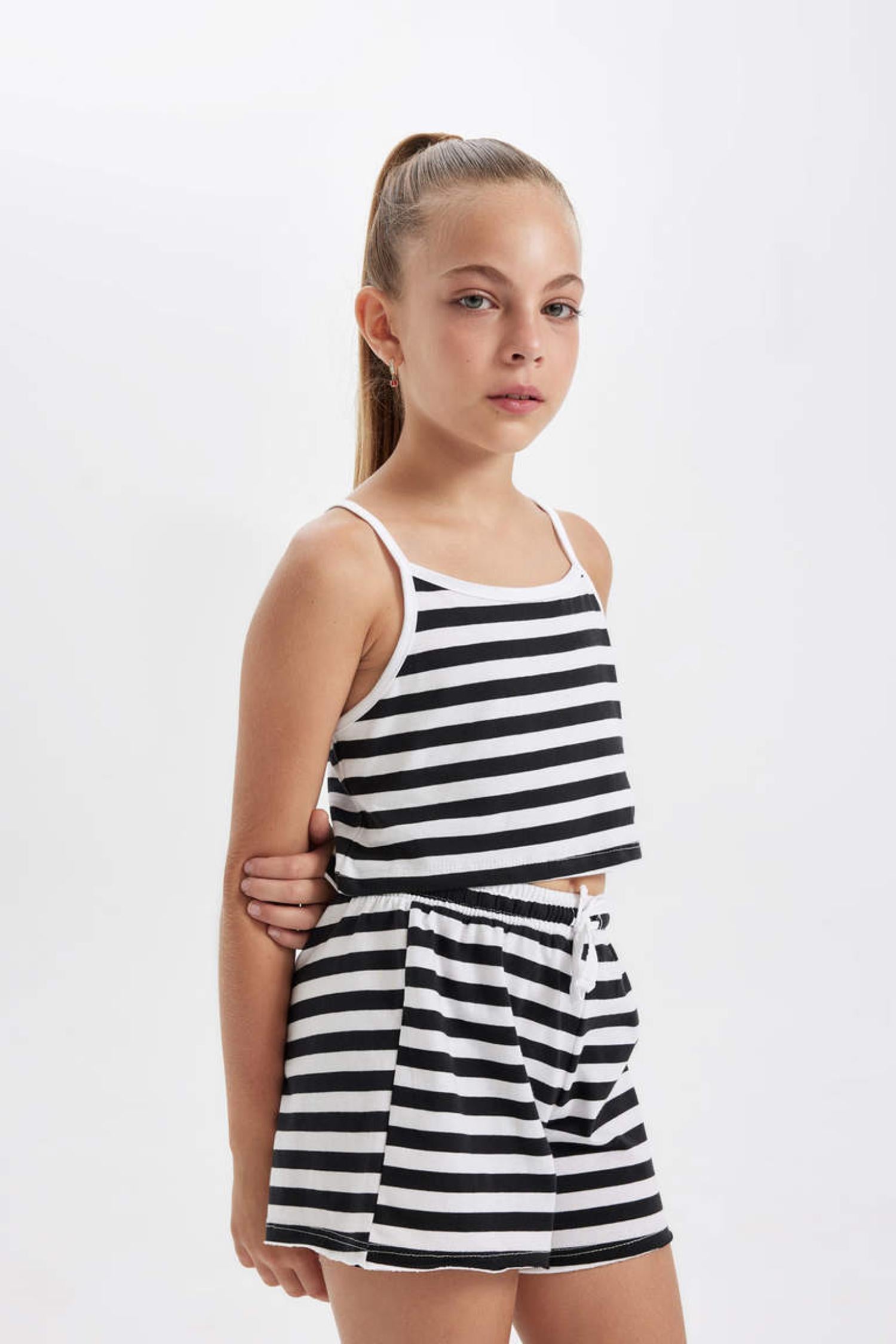 Defacto Kız Çocuk Çizgili Atlet Şort 2'Li Takım D0075A8