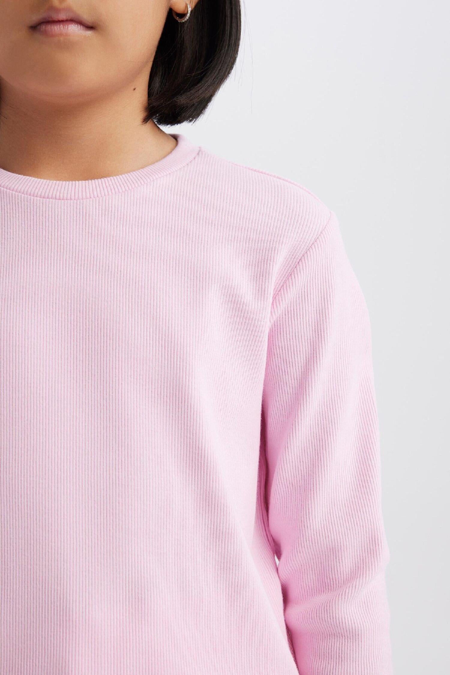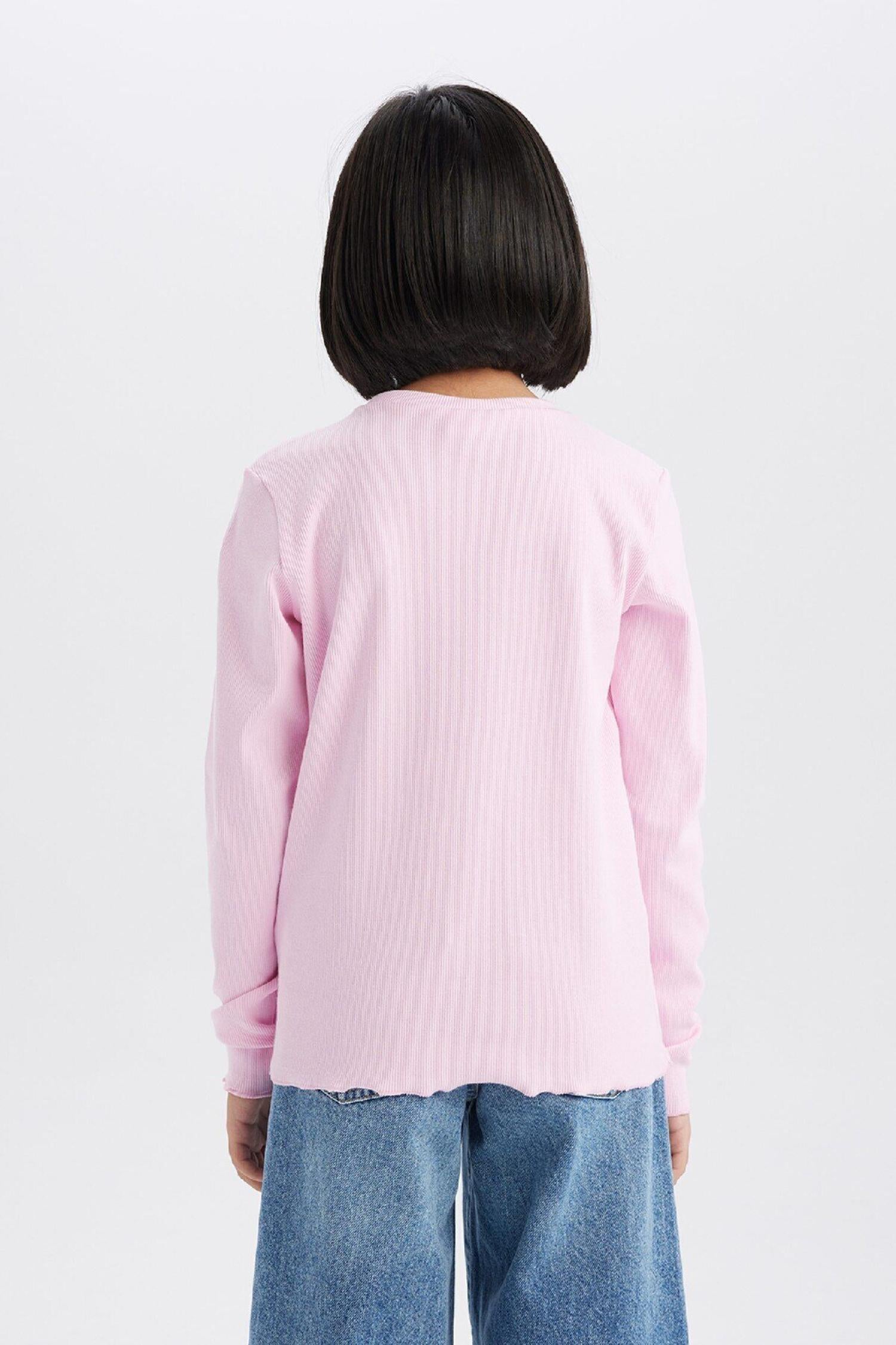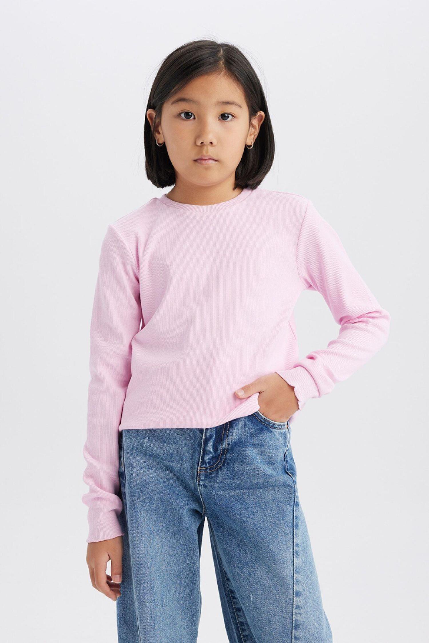 Defacto B7452A8 Kız Çocuk Slim Fit Bisiklet Yaka Ribana Uzun Kollu Tişört Badi