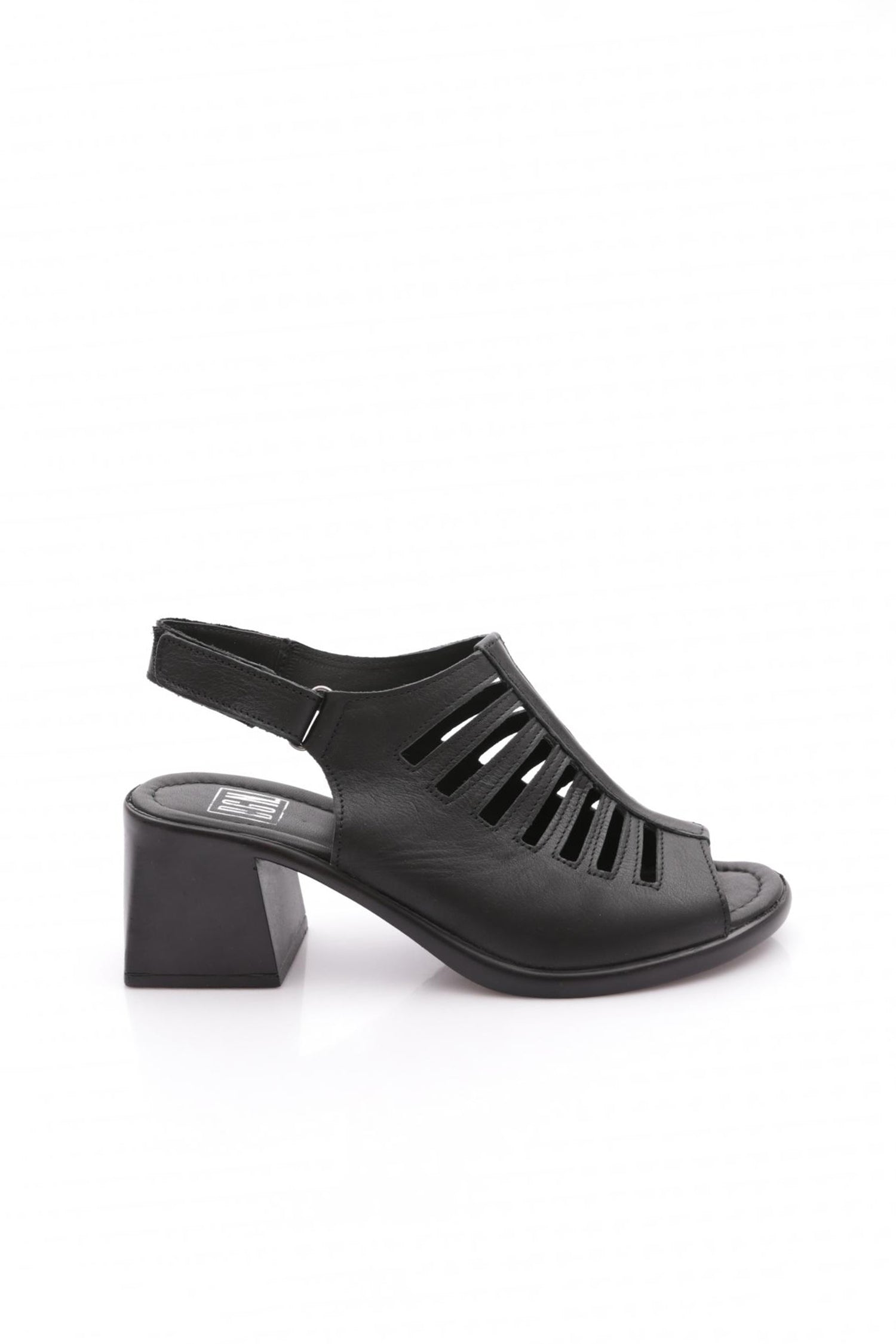 Bayan Kalın Topuklu Burun Dekolteli Çizgi Detaylı Sandalet 231123219