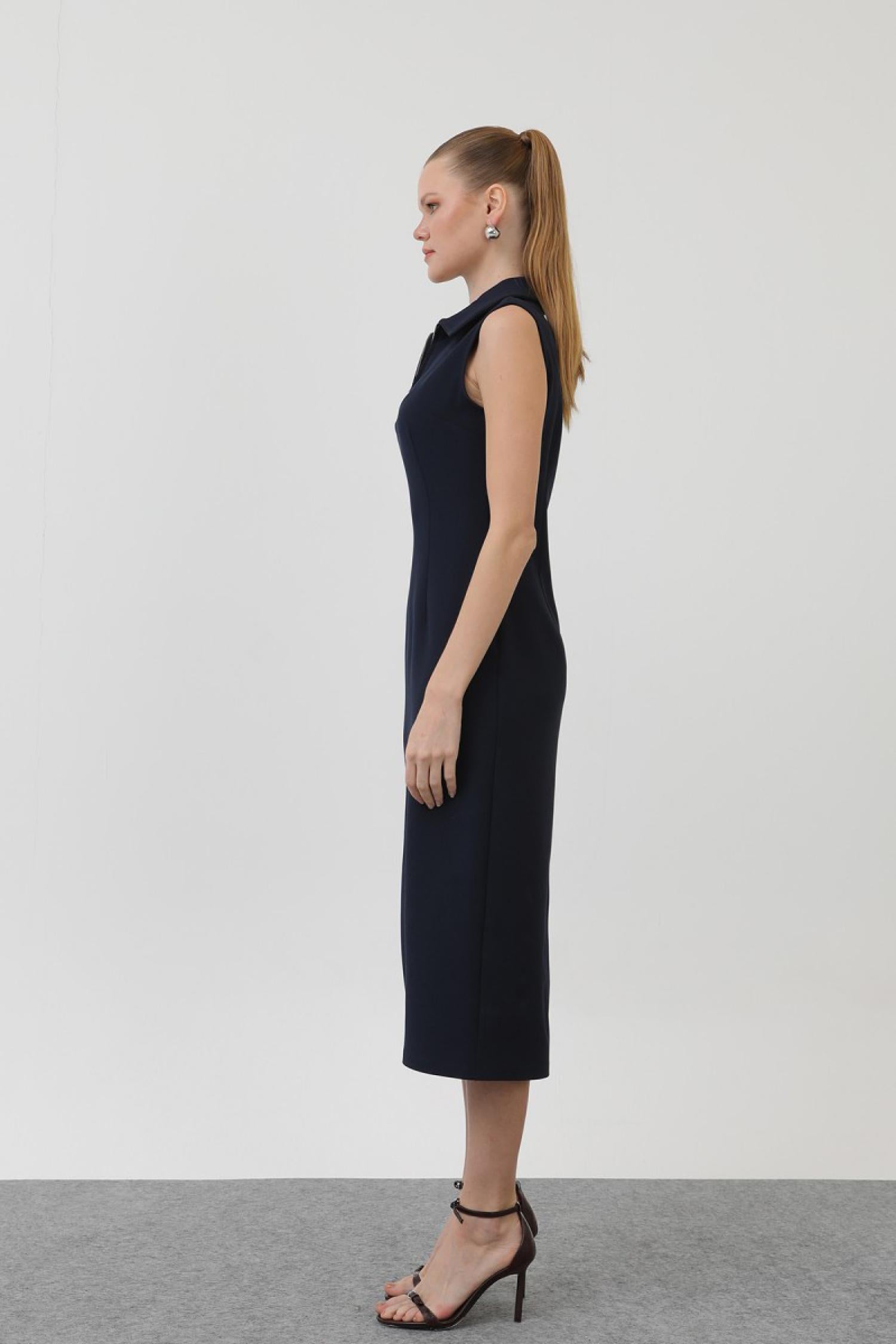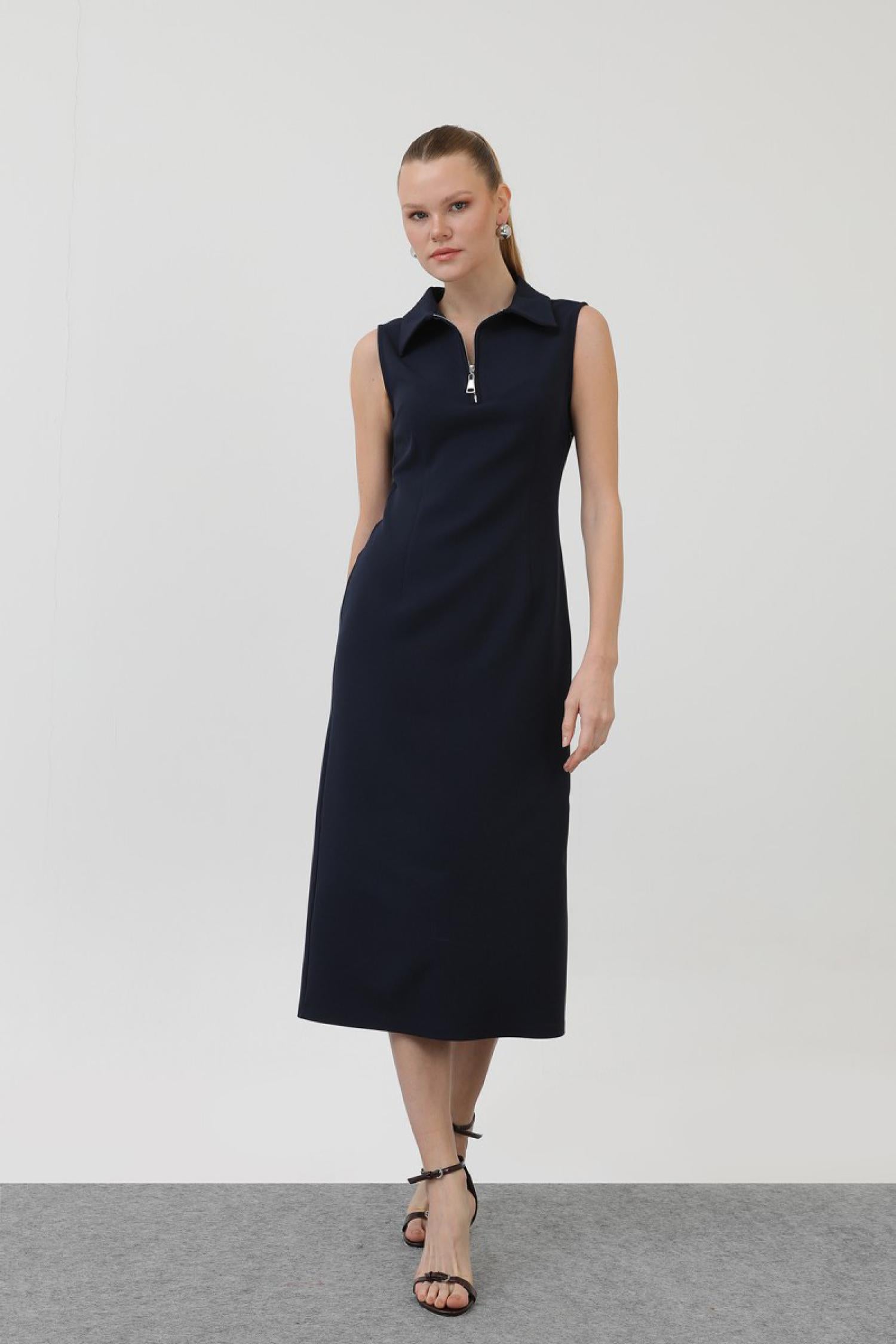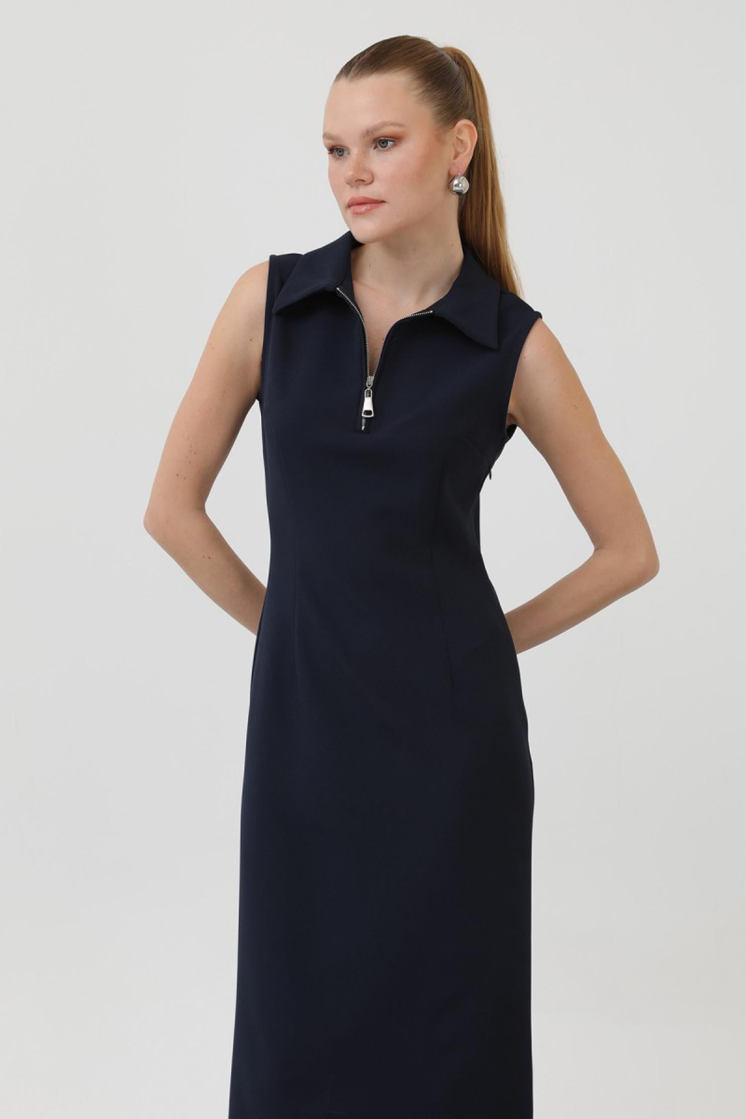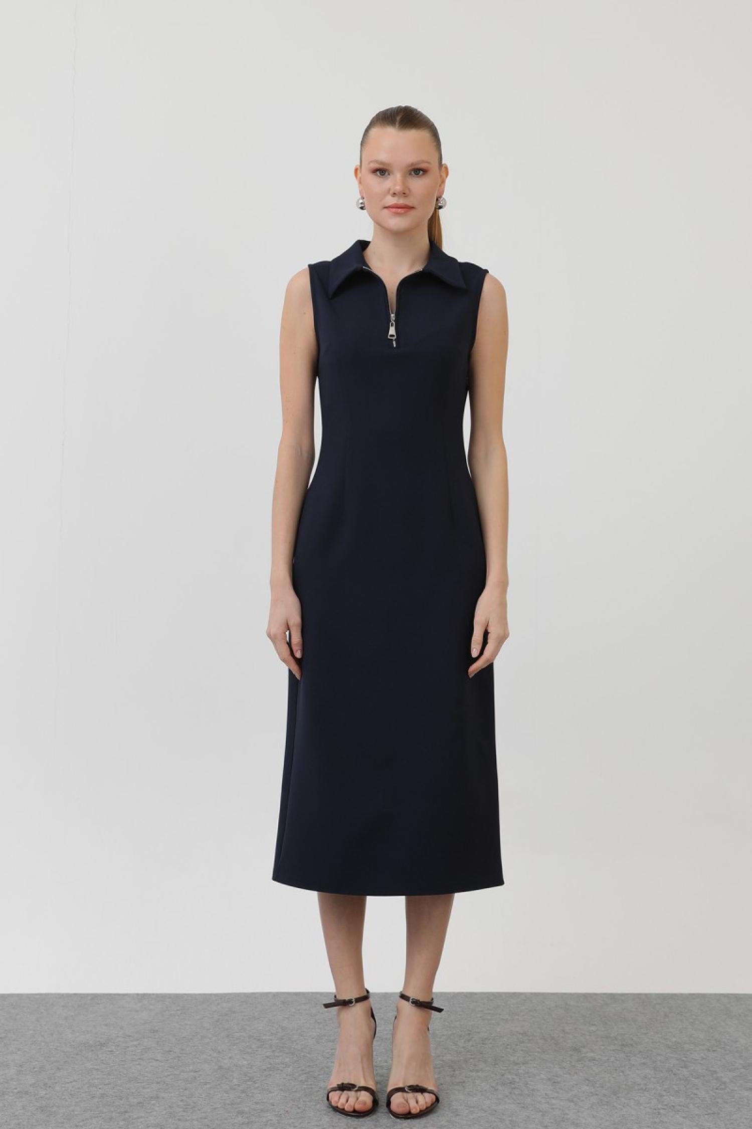 Soul 32149 Kadın Fermuar Detaylı Midi Elbise