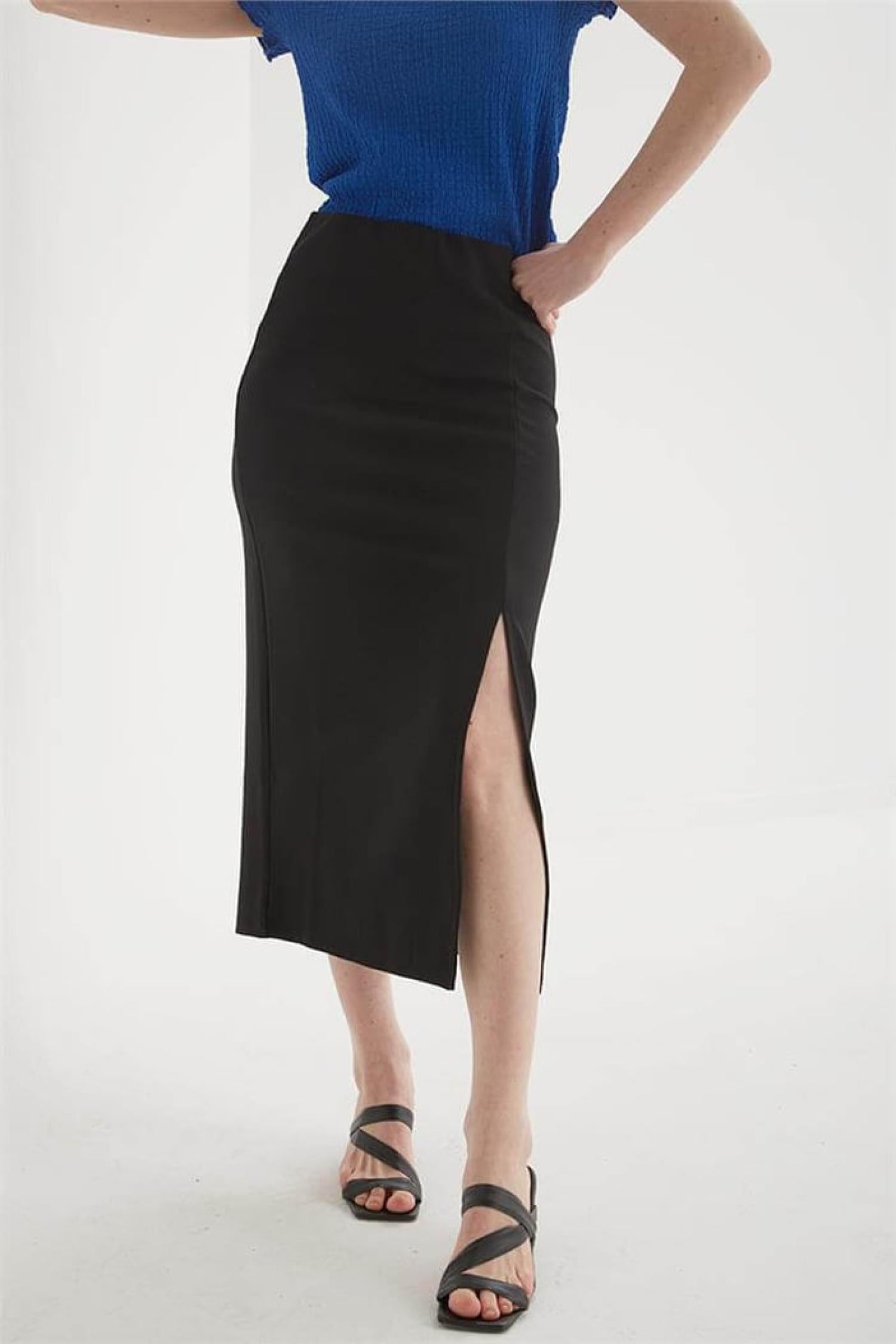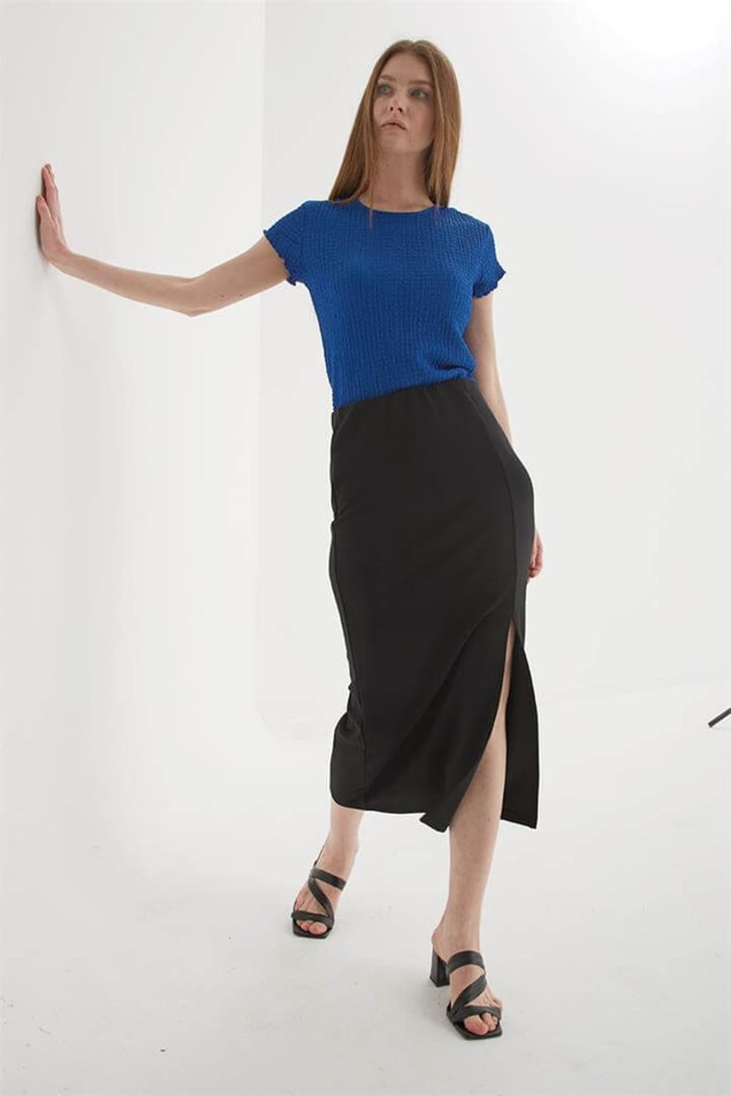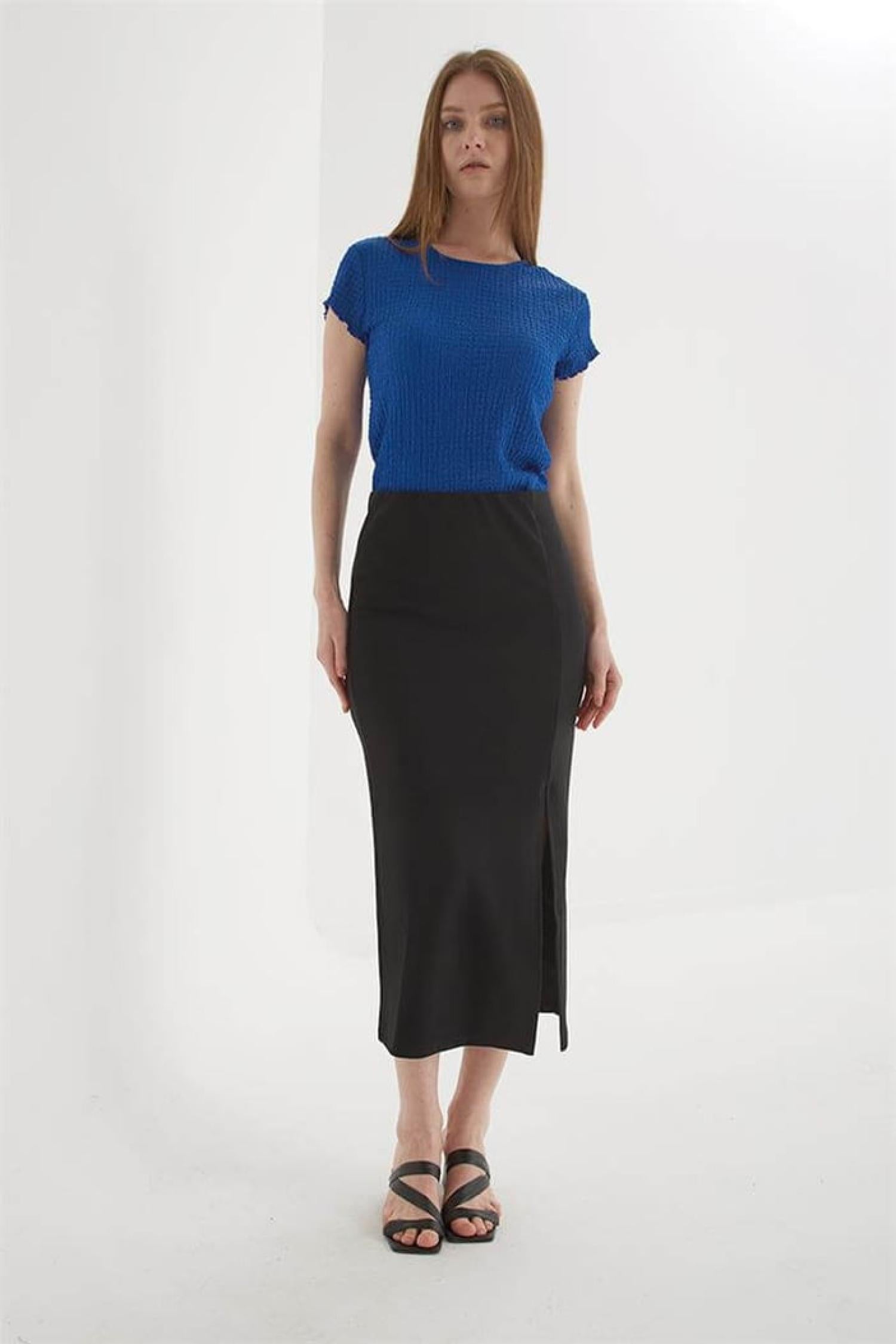 Fashion Friends 25Y0187K1 Kadın Yırtmaçlı Midi Etek
