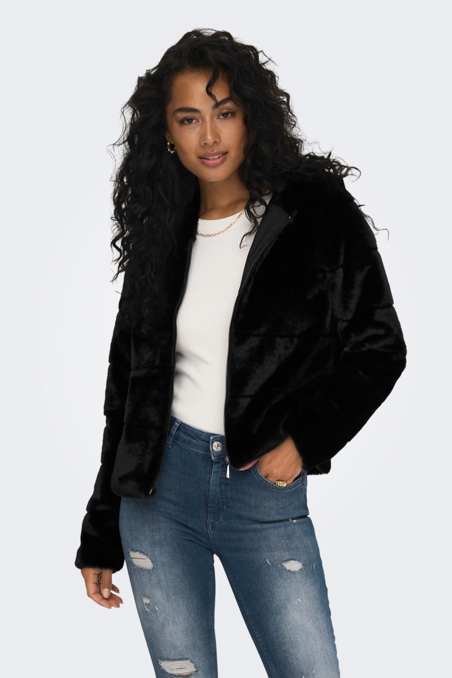 Only 15304759-Fw Onlnewchrıs Fur Hooded Jacket Cc Otw Kadın Kürk Kaban