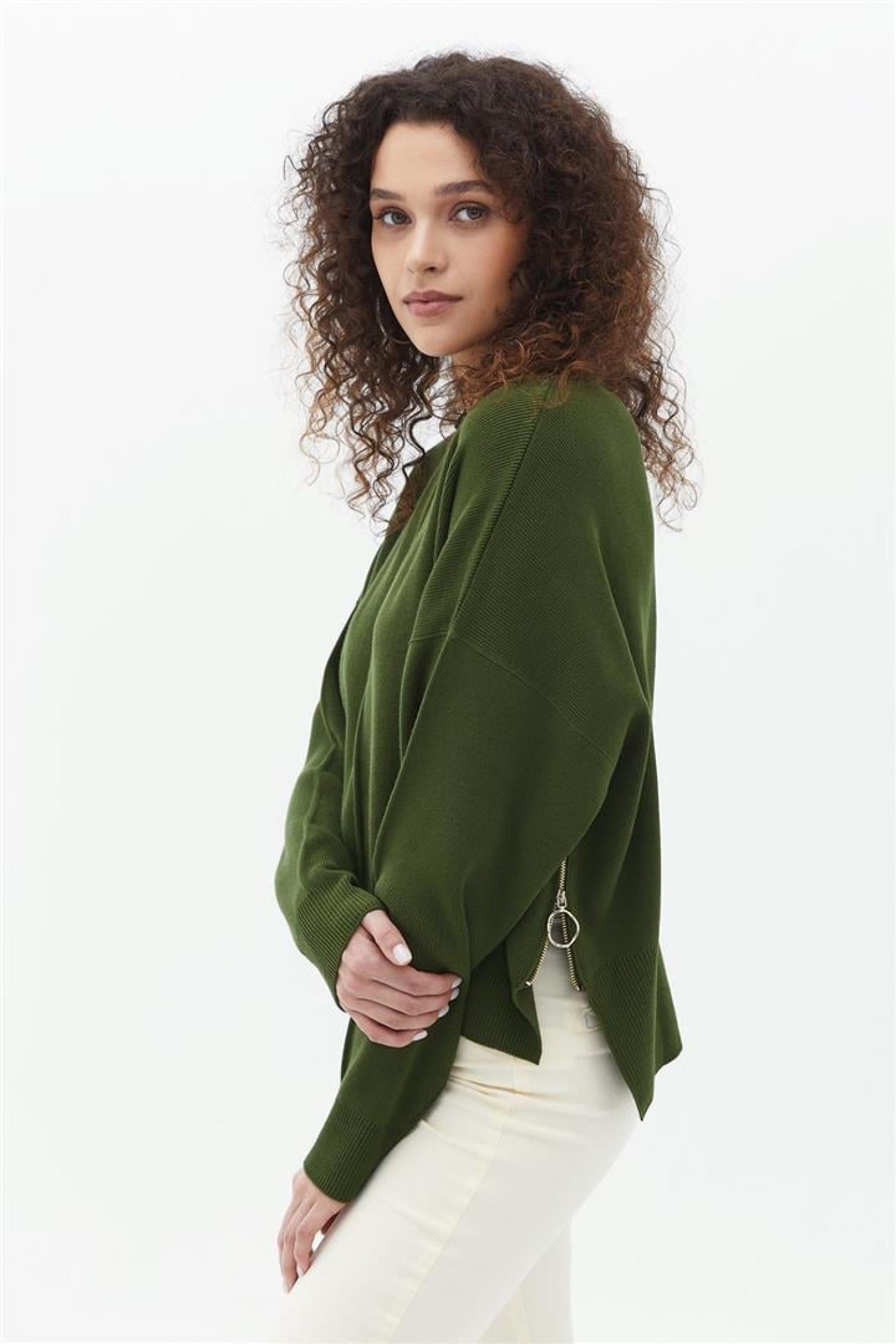 Fashion Friends 24K0027K1 Kadın Yanı Fermuarlı Kazak