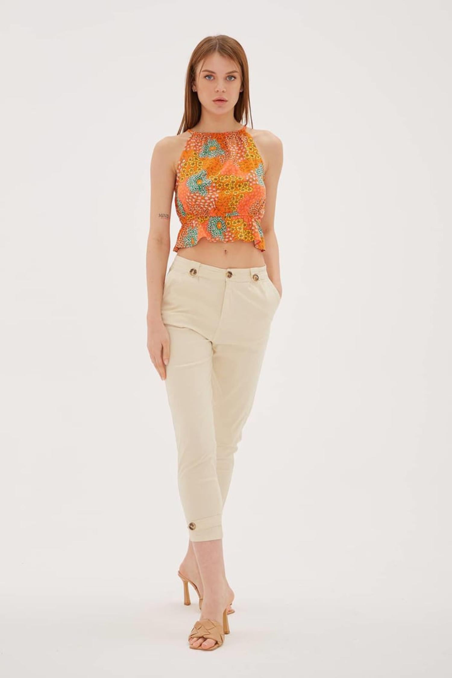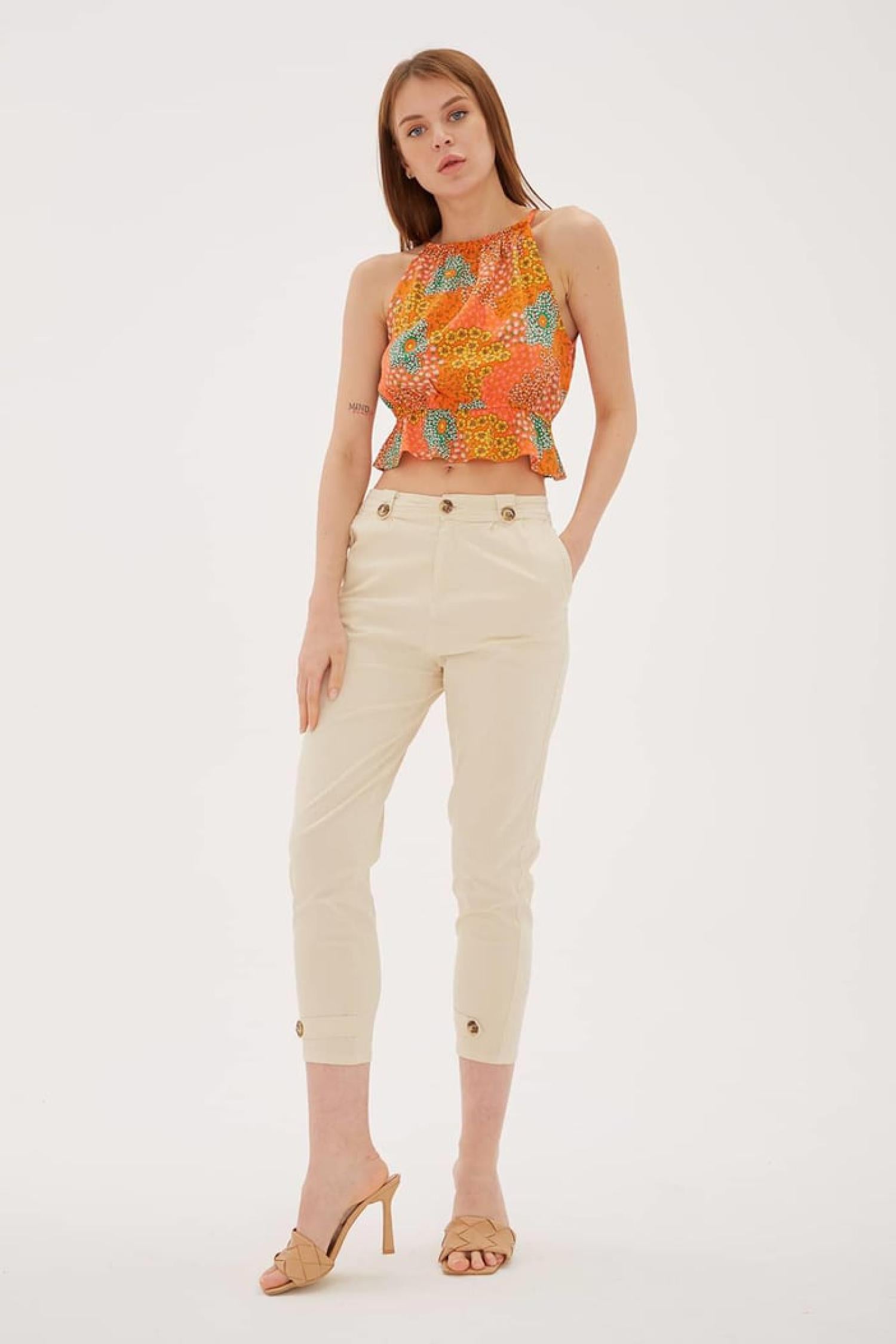 Fashion Friends 25Y0312K1 Kadın Paçası Düğme Detaylı Pantolon