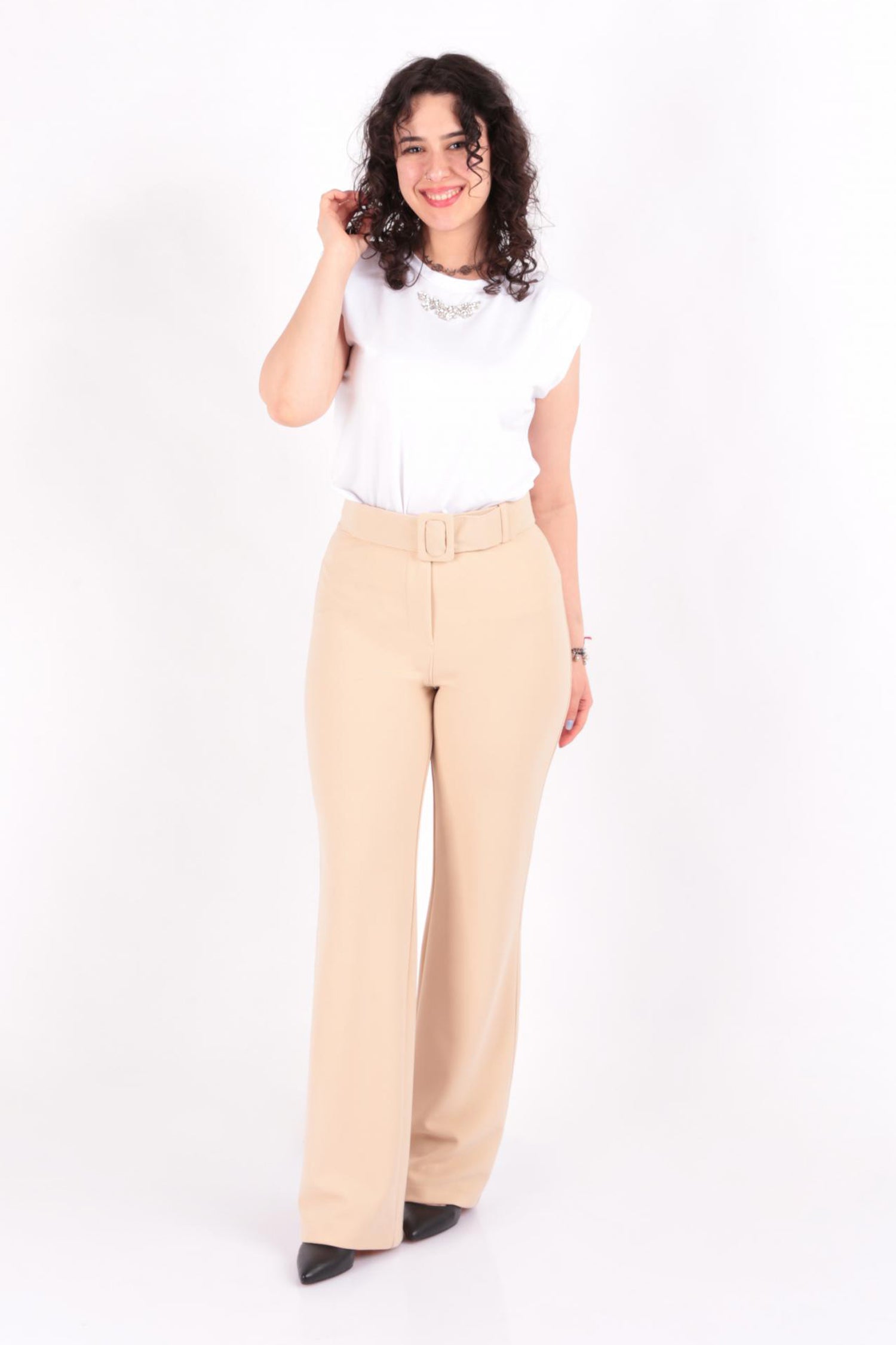 Tülin K24-12002 Kadın Örme Kemerli Pantolon Ss