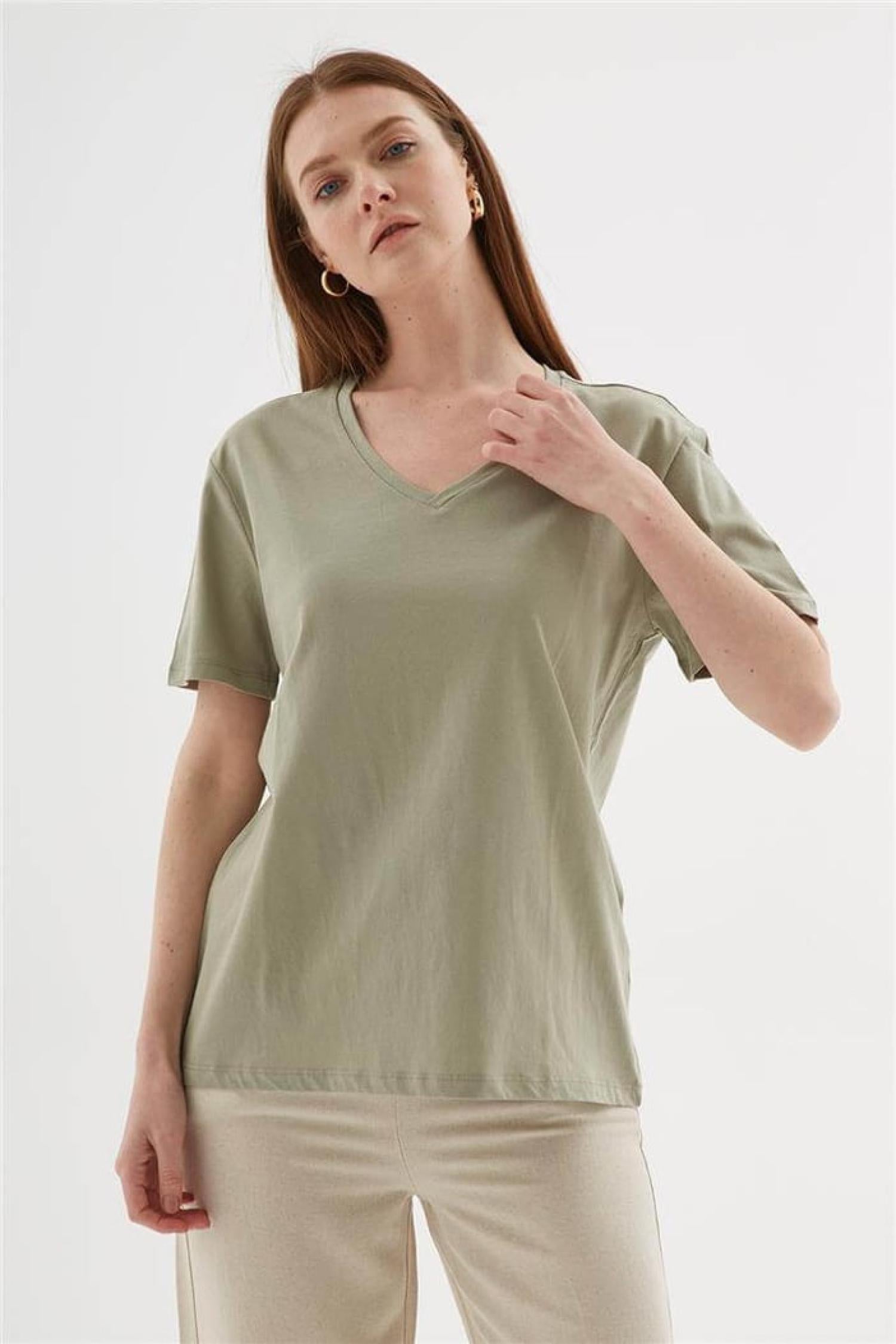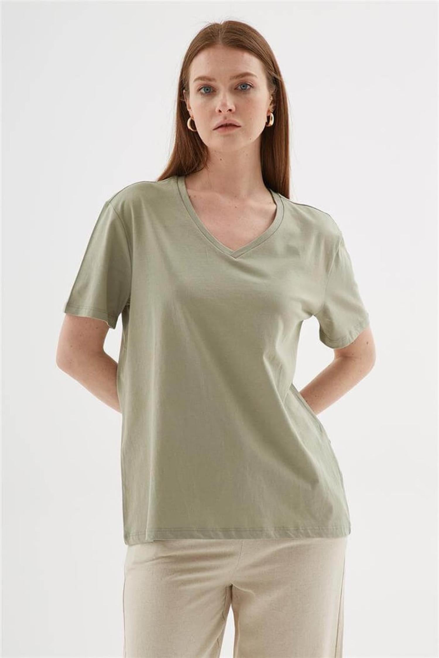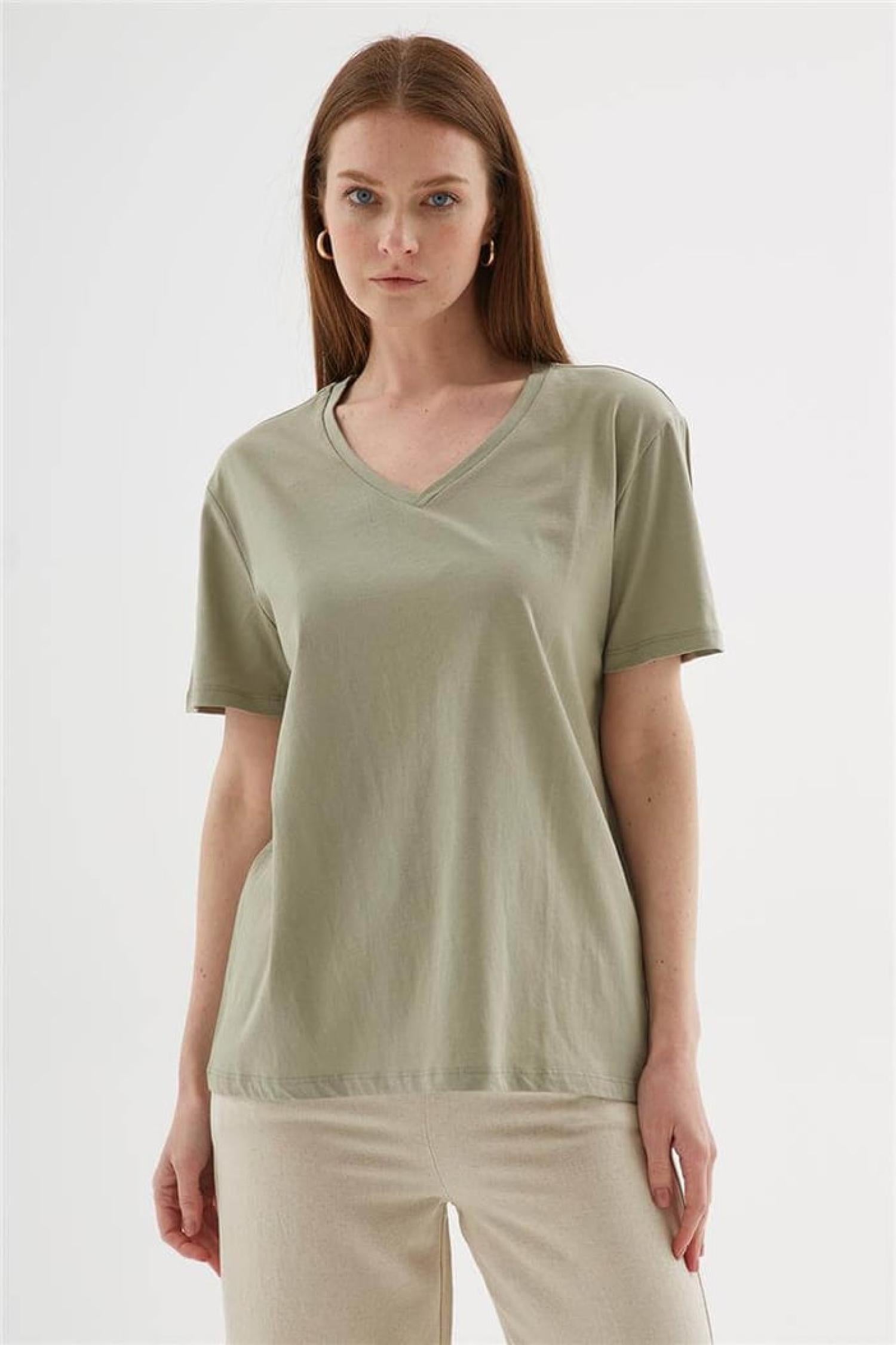 Fashion Friends 25Y0248K1 Kadın V Yaka T-Shirt