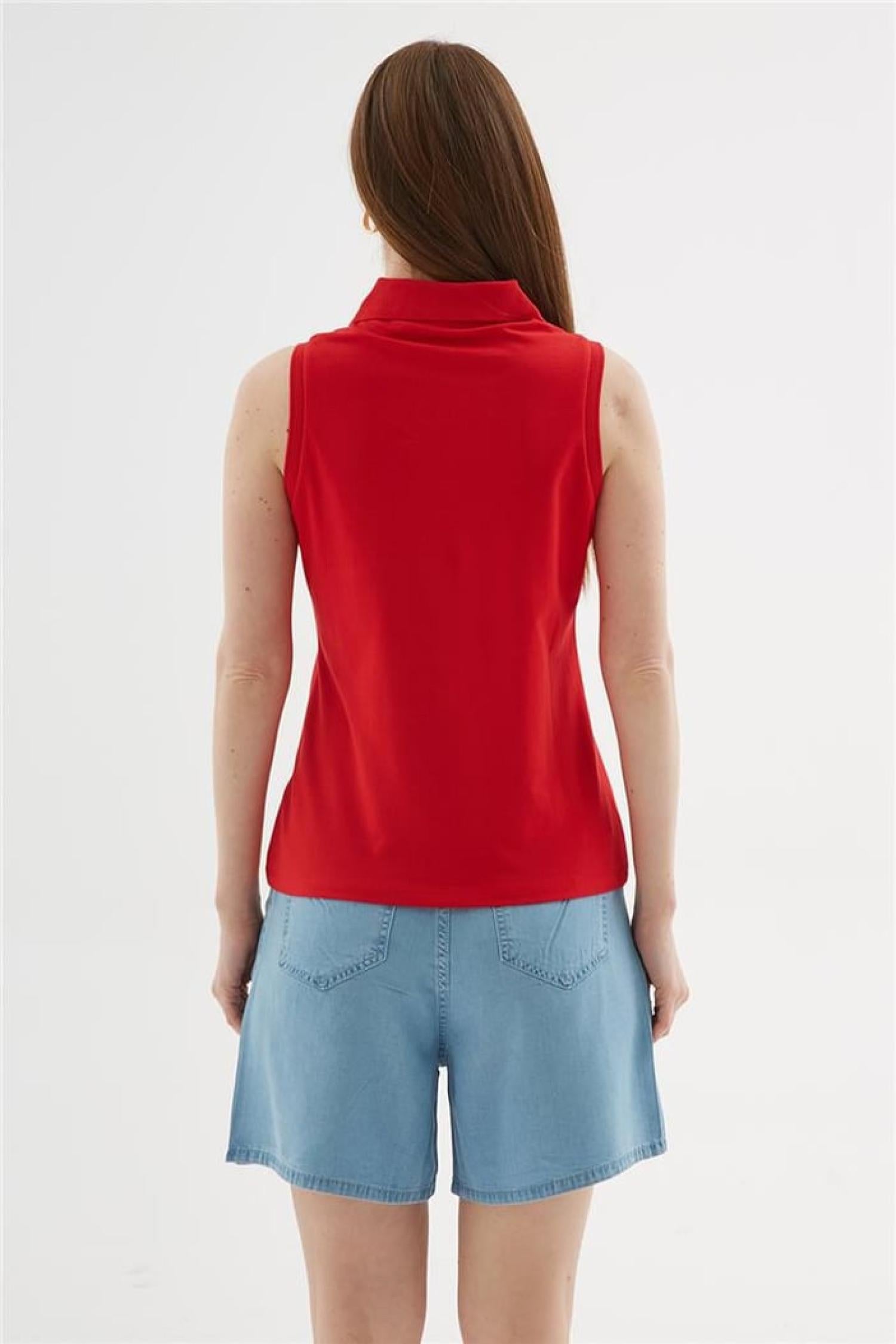 Fashion Friends 25Y0516K1 Kadın Polo V Yaka Kolsuz T-Shirt