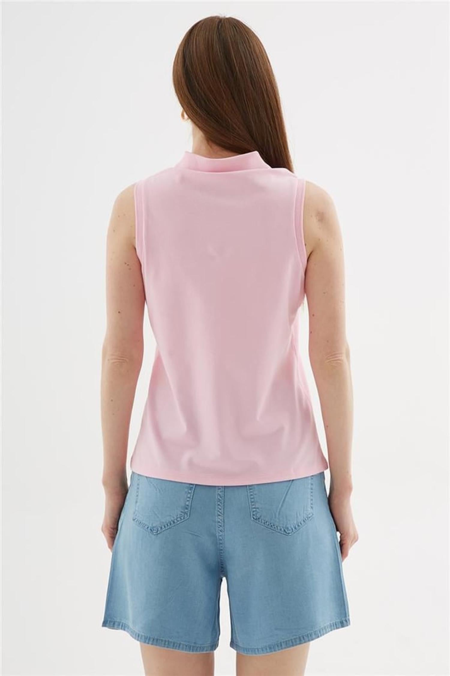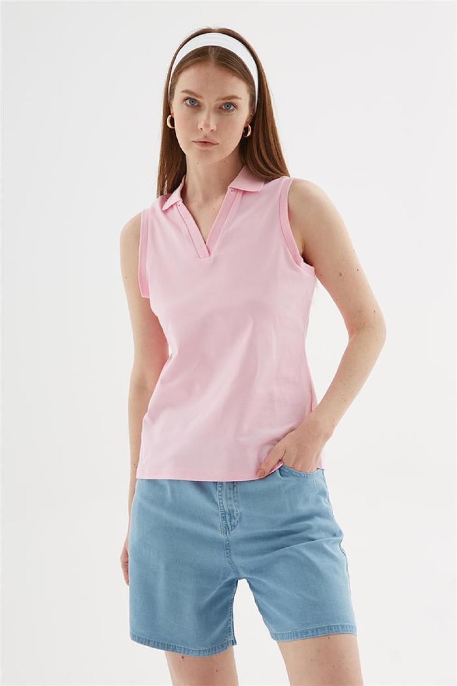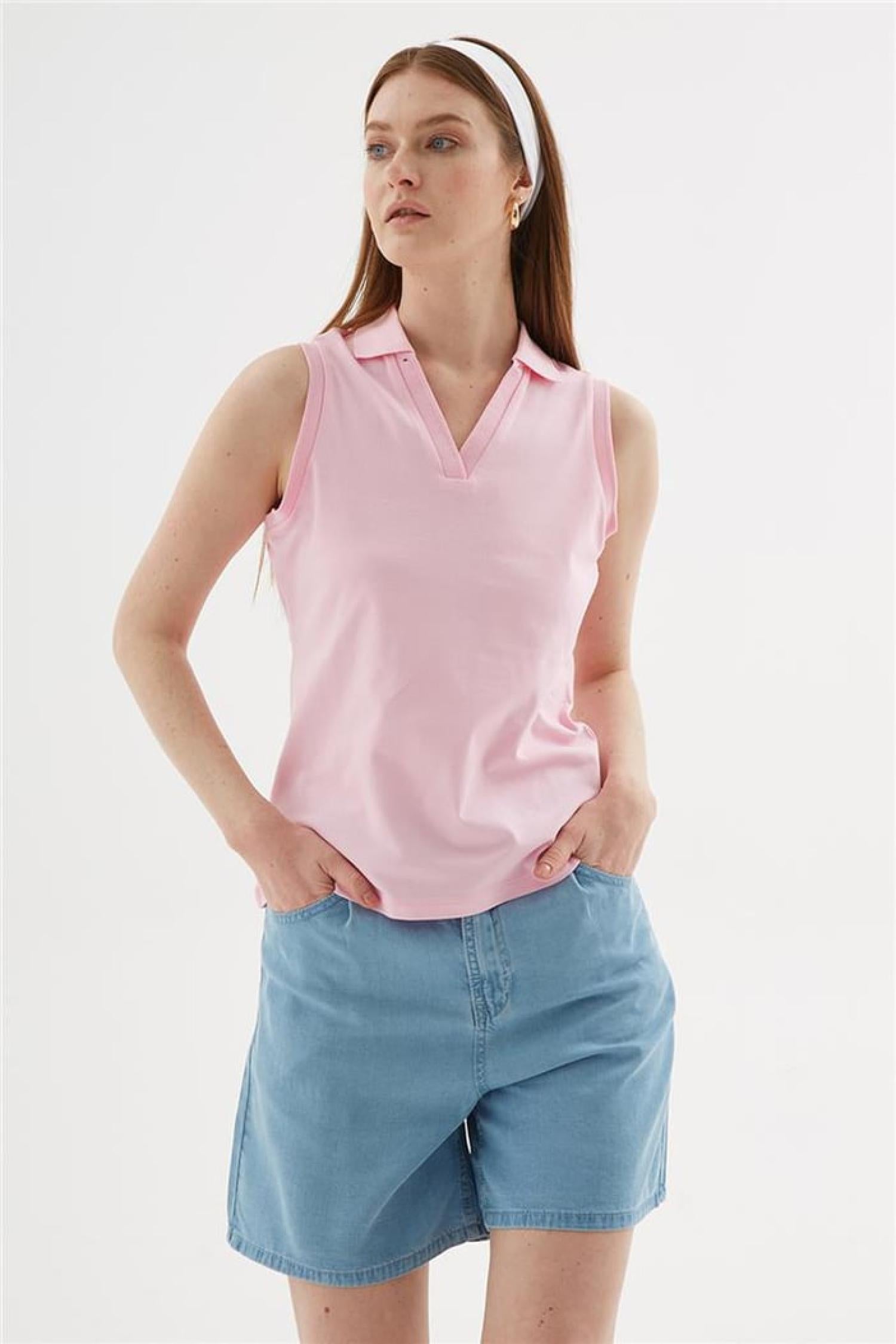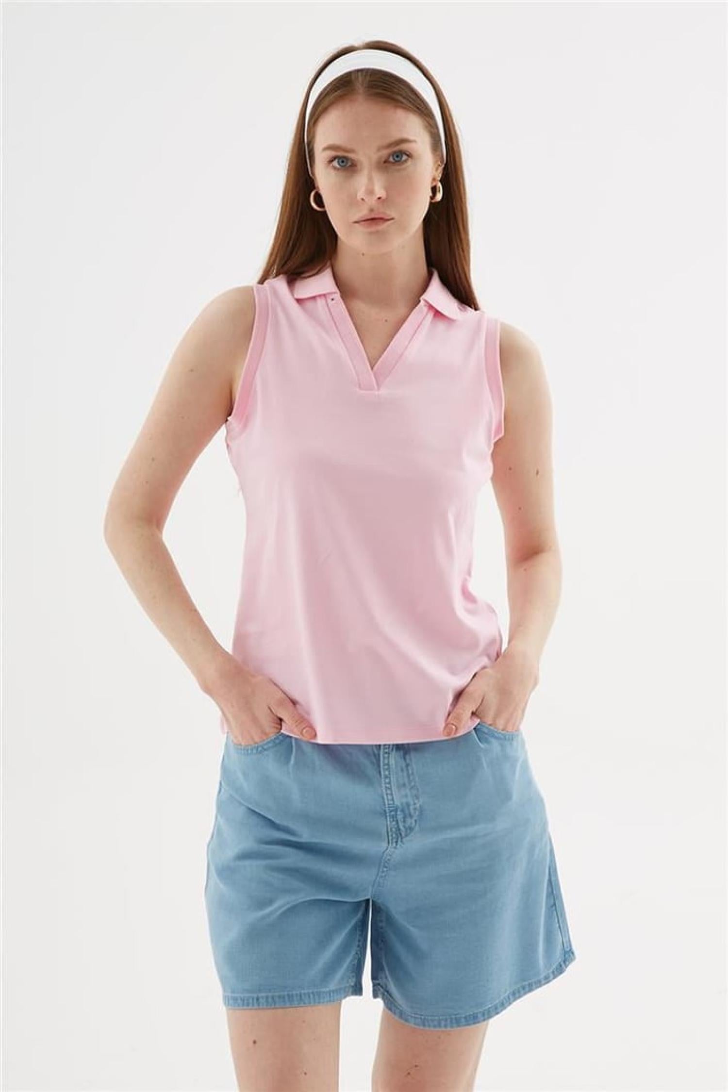 Fashion Friends 25Y0516K1 Kadın Polo V Yaka Kolsuz T-Shirt