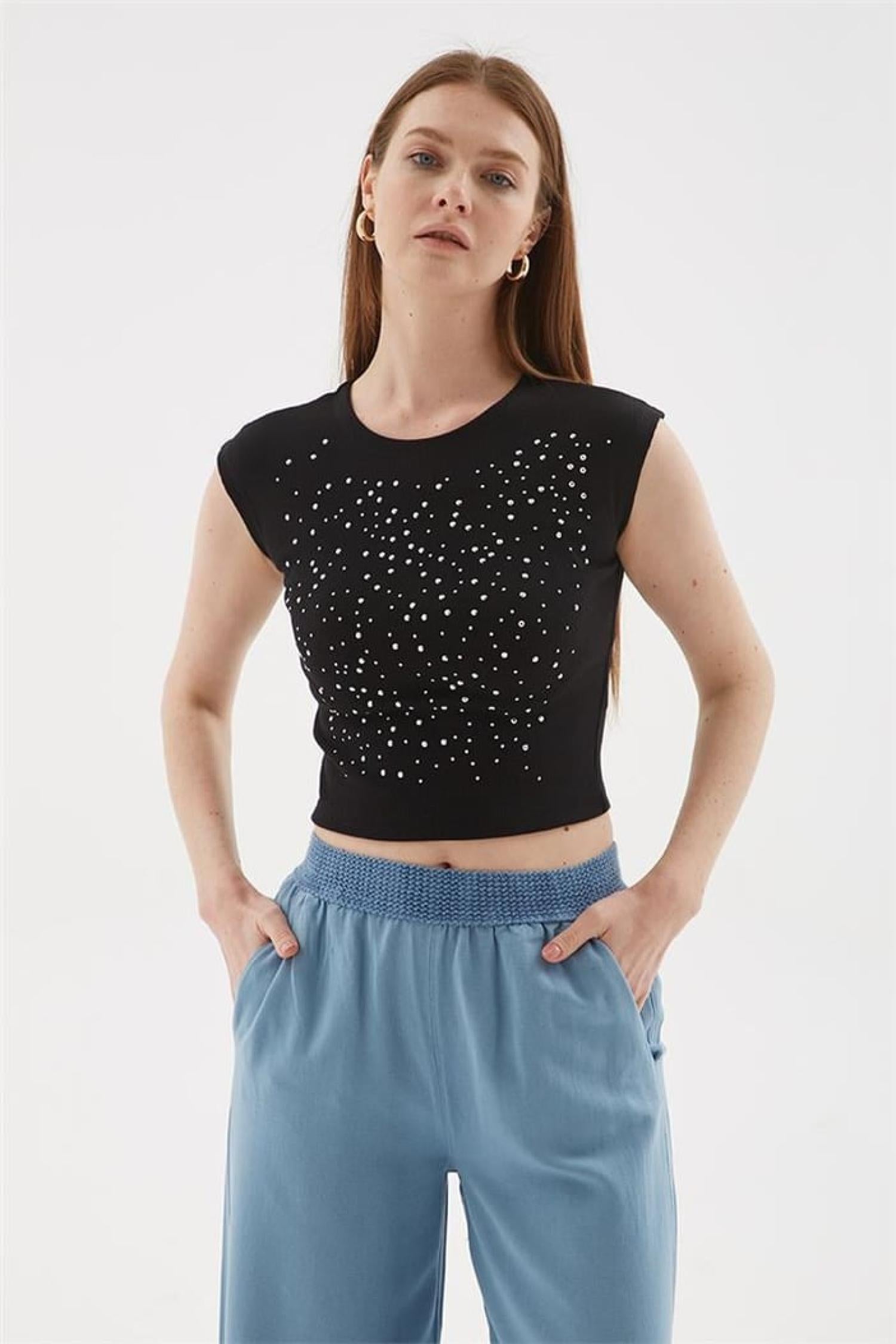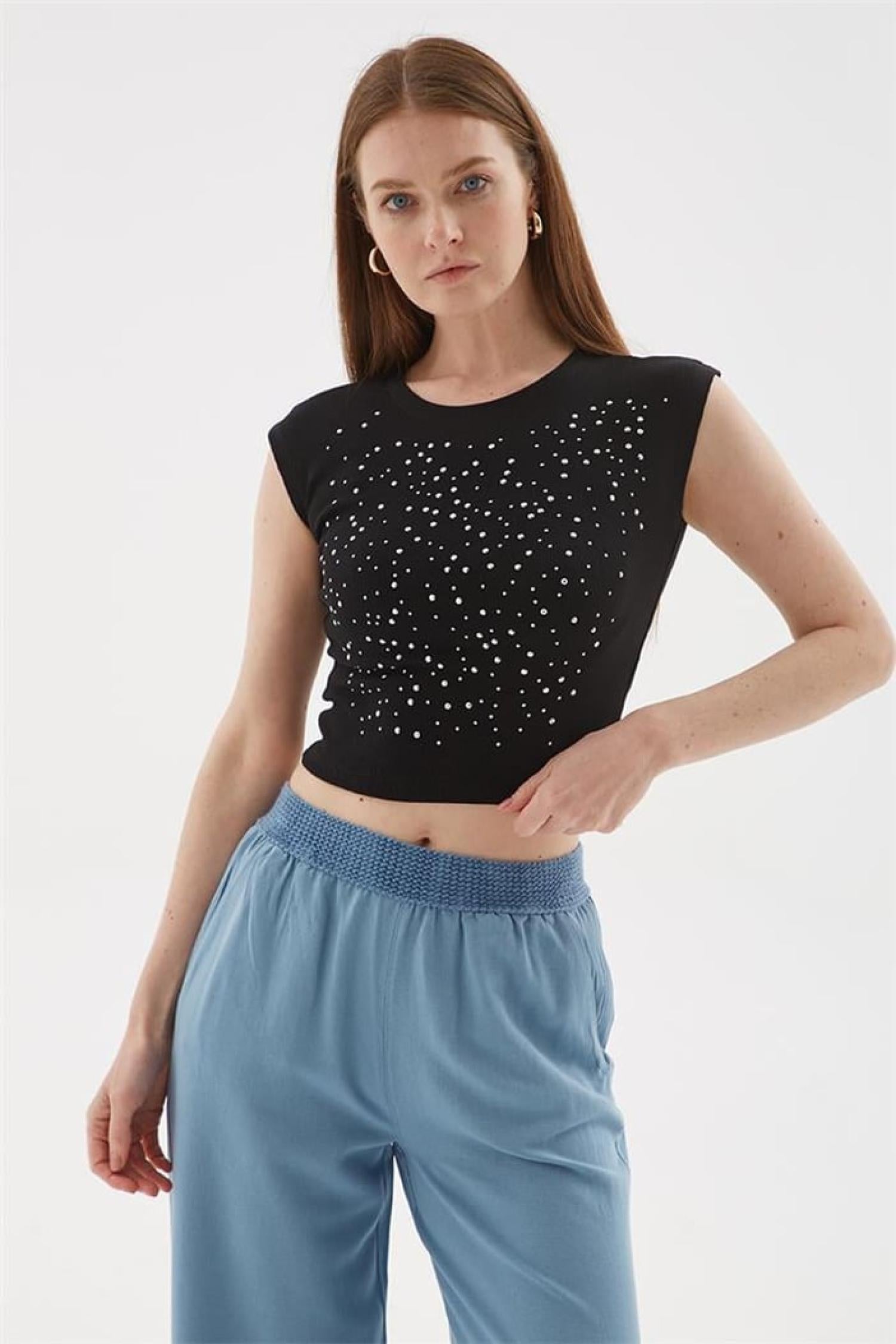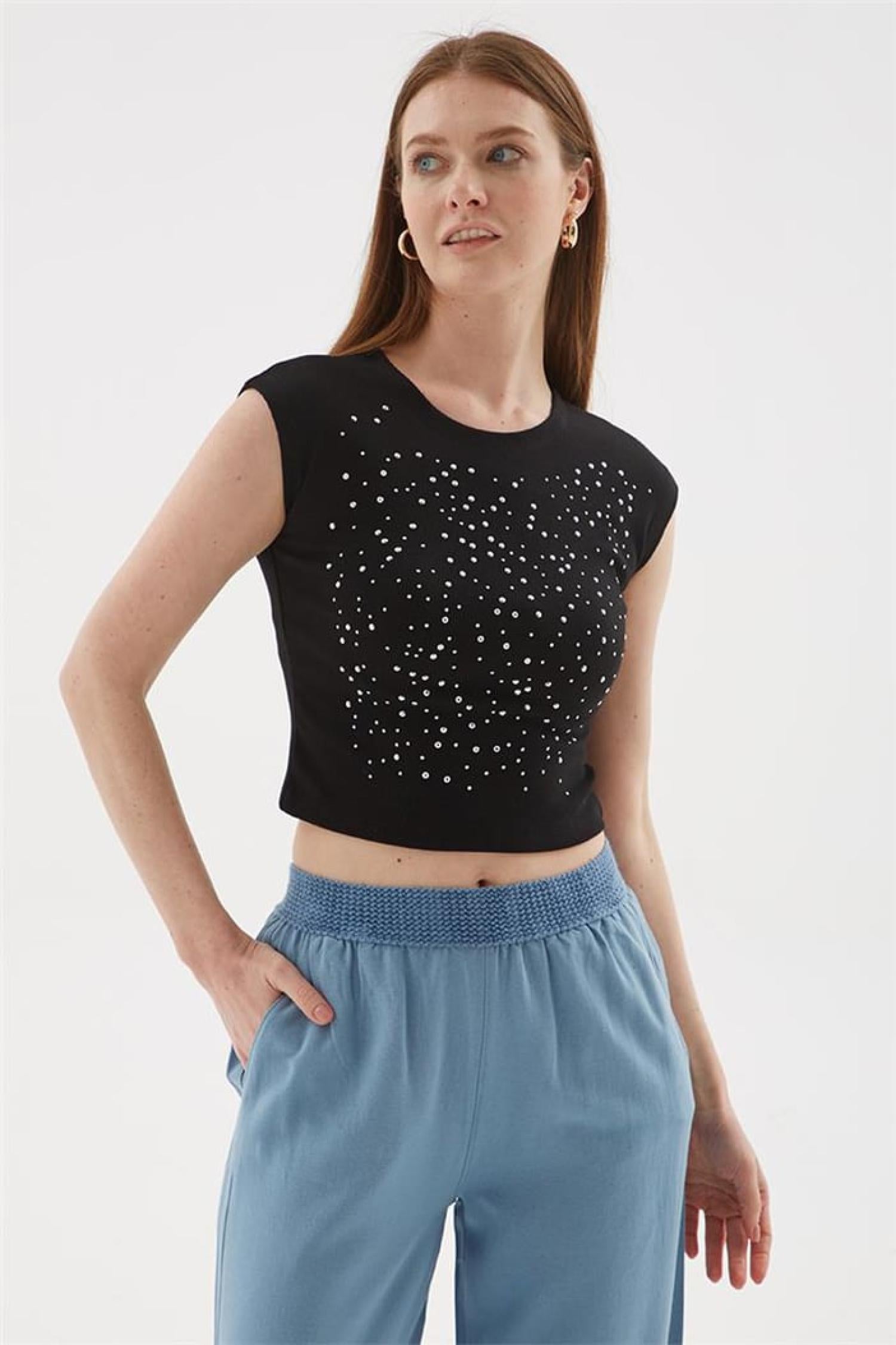 Fashion Friends 25Y0559K1 Kadın Taş Detaylı T-Shirt