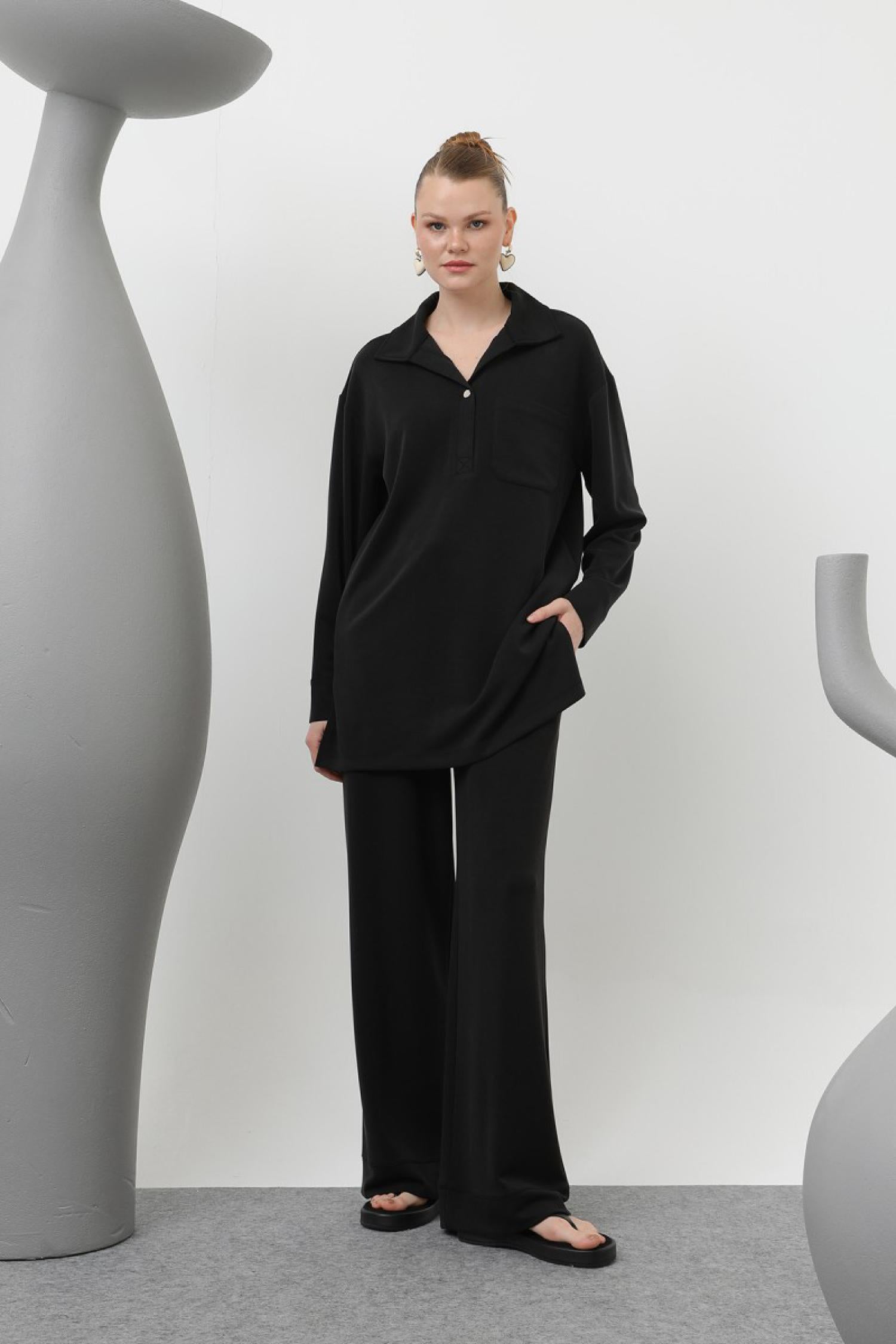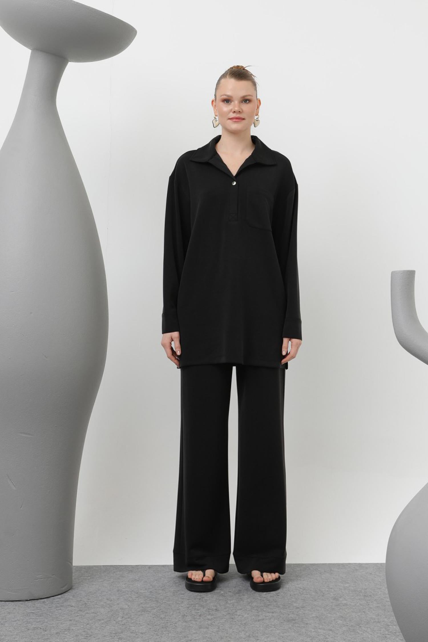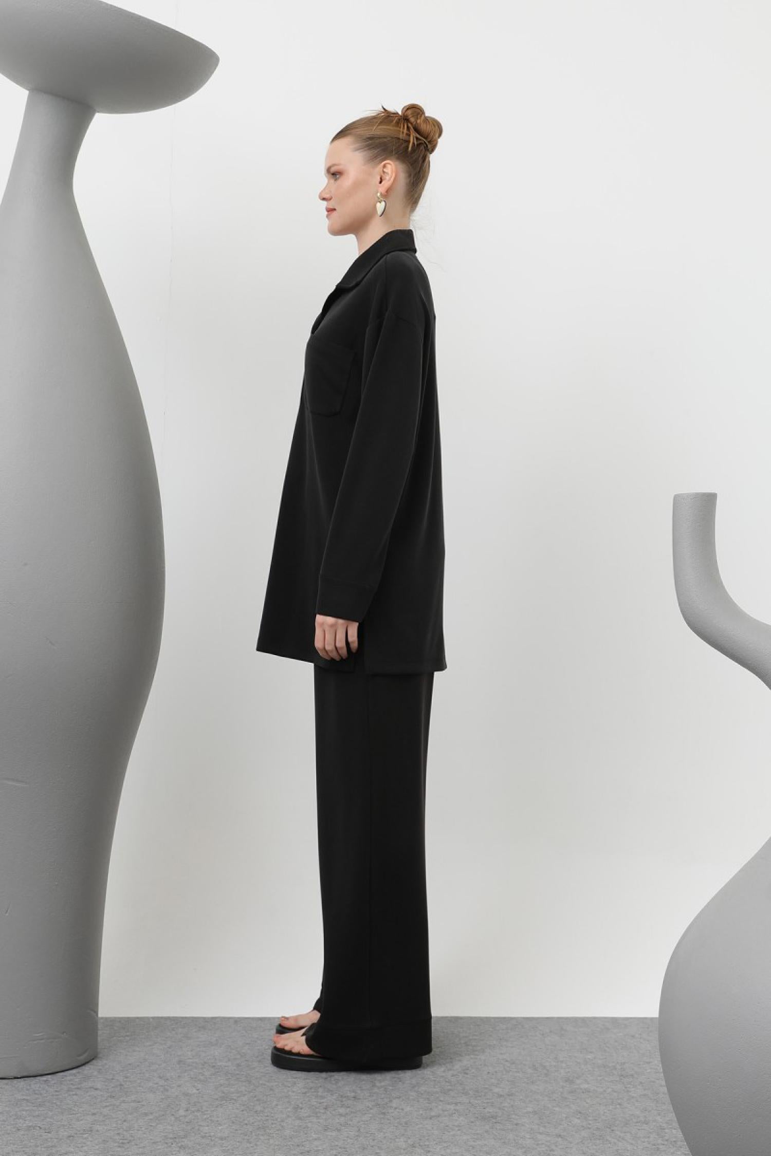 Loreen 20605 Kadın Yakası Çıtçıtlı Cep Detaylı Pantolonlu Takım