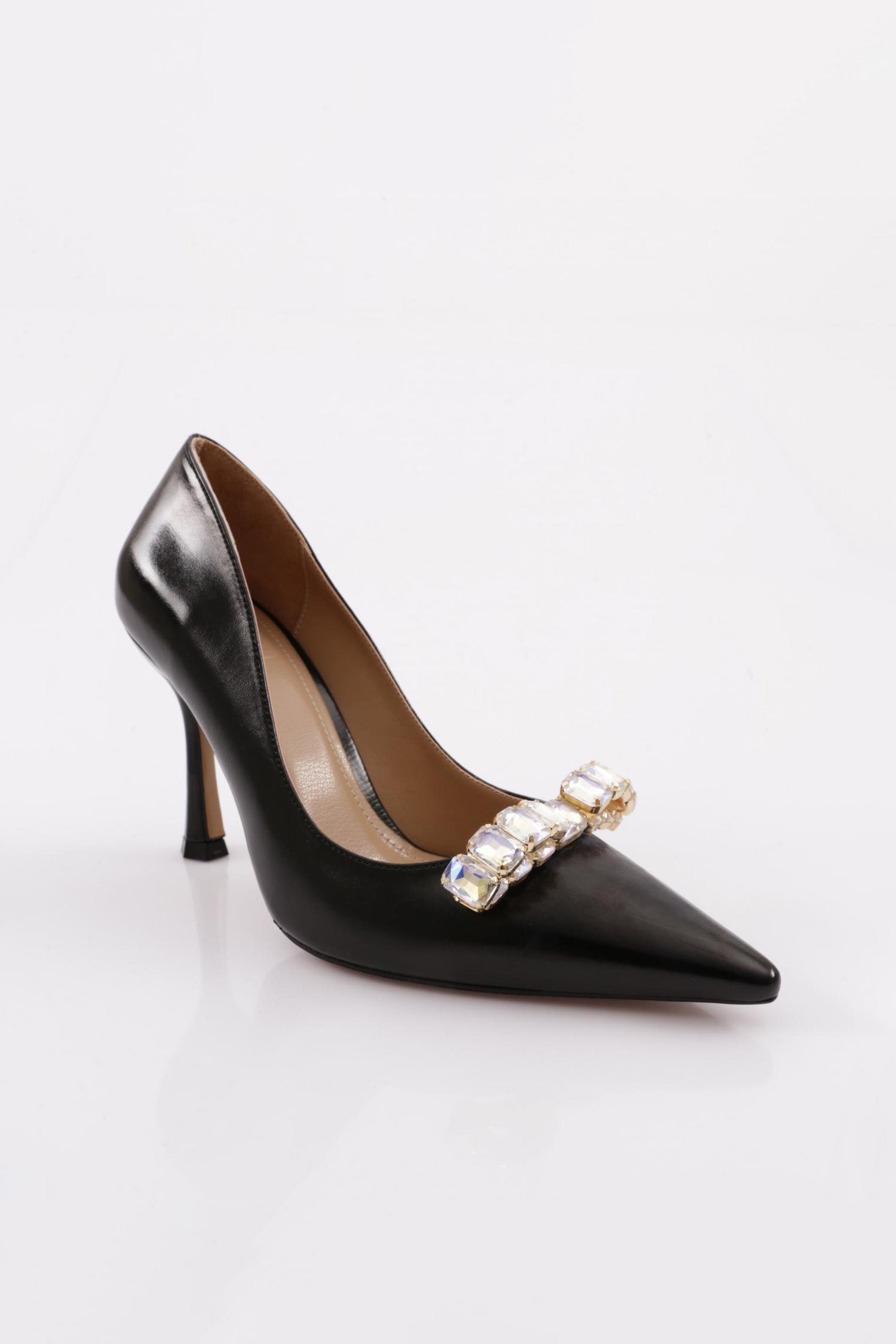 Kadın Sivri Burun Kristal Taş Tokalı Topuklu Ayakkabı 101653236