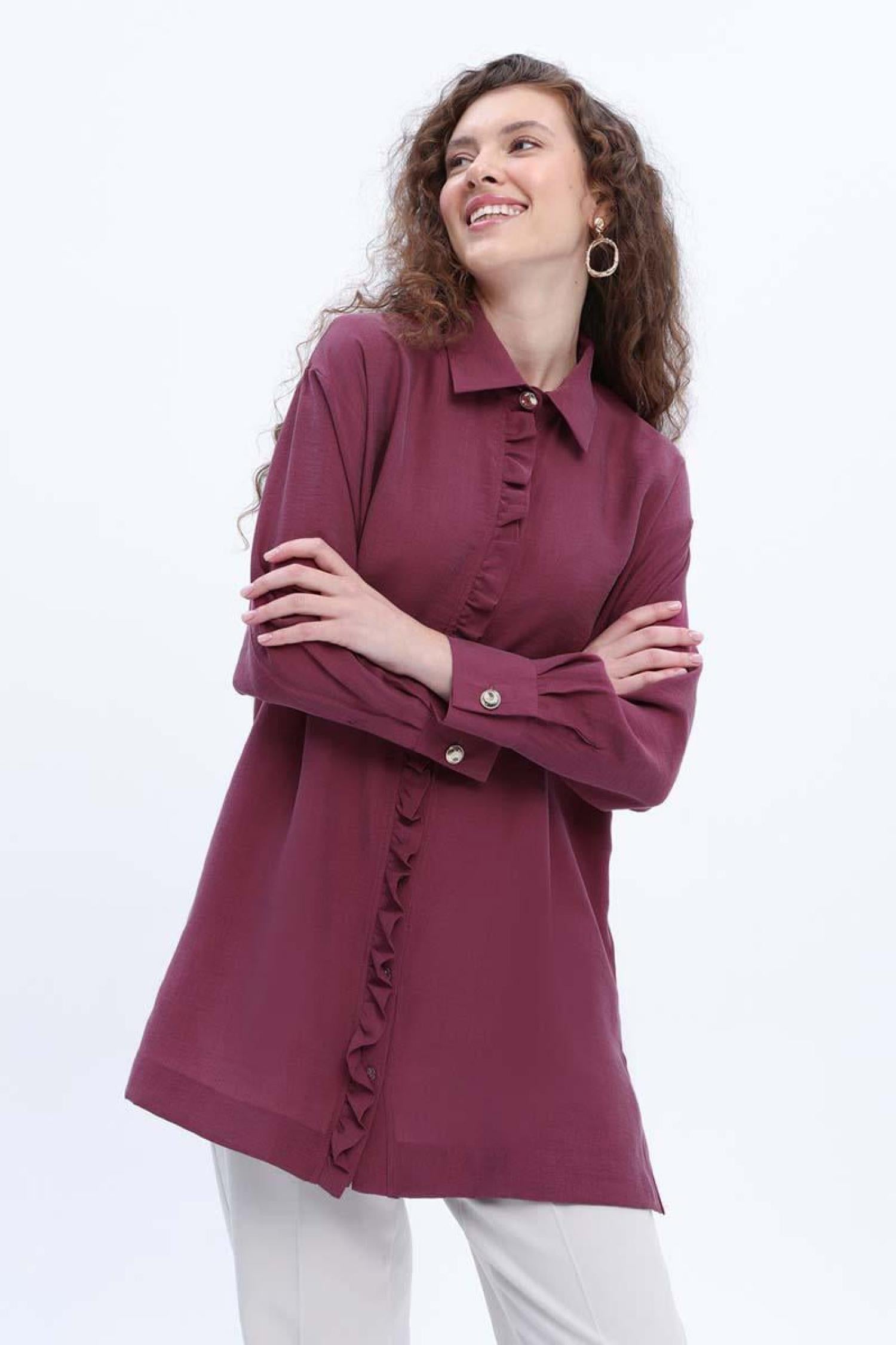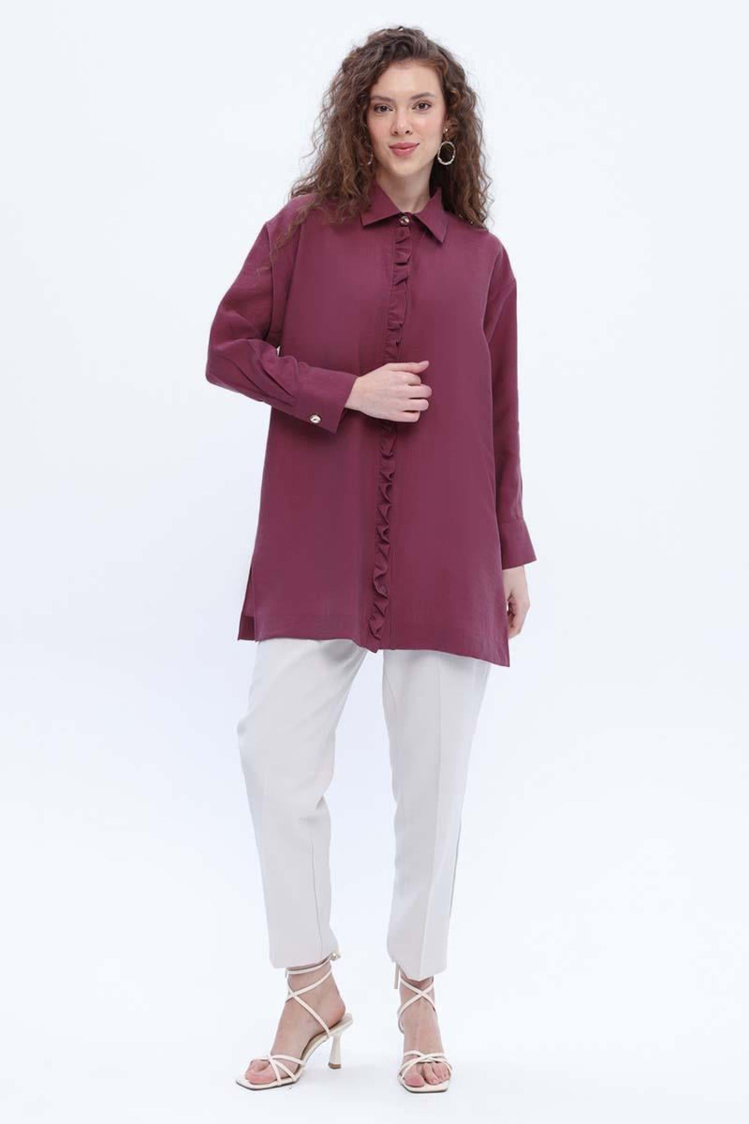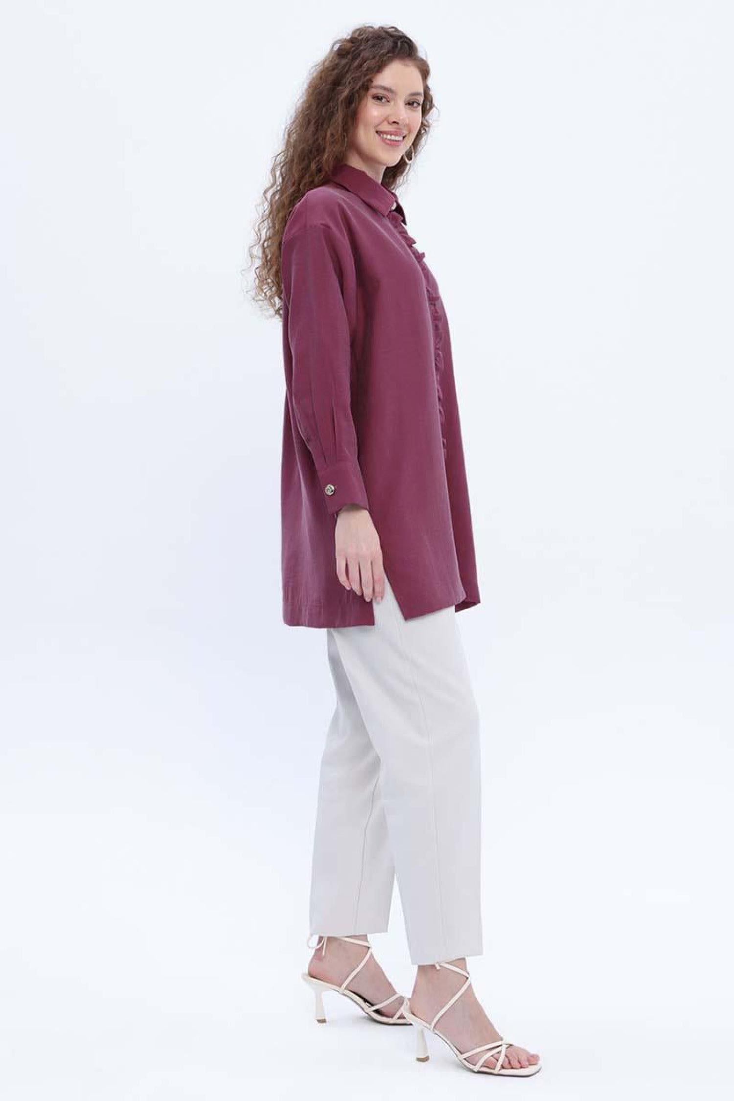 Allday 24Ds51246Al0 Kadın Fırfırlı Yırtmaçlı Gömlek