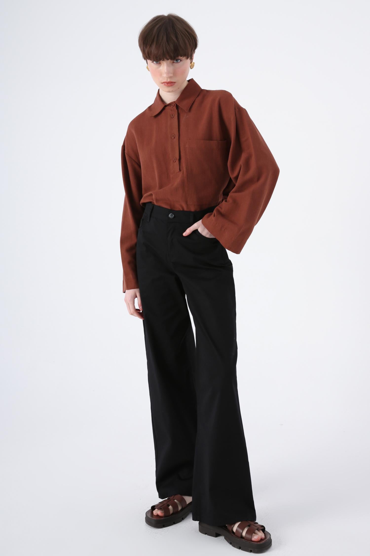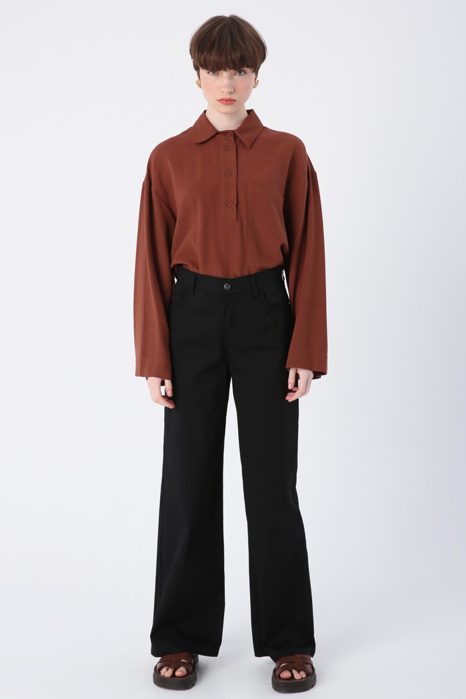 Allday 23Dx77056Al0 Kadın Bol Paça 5 Cepli Likralı Pantolon