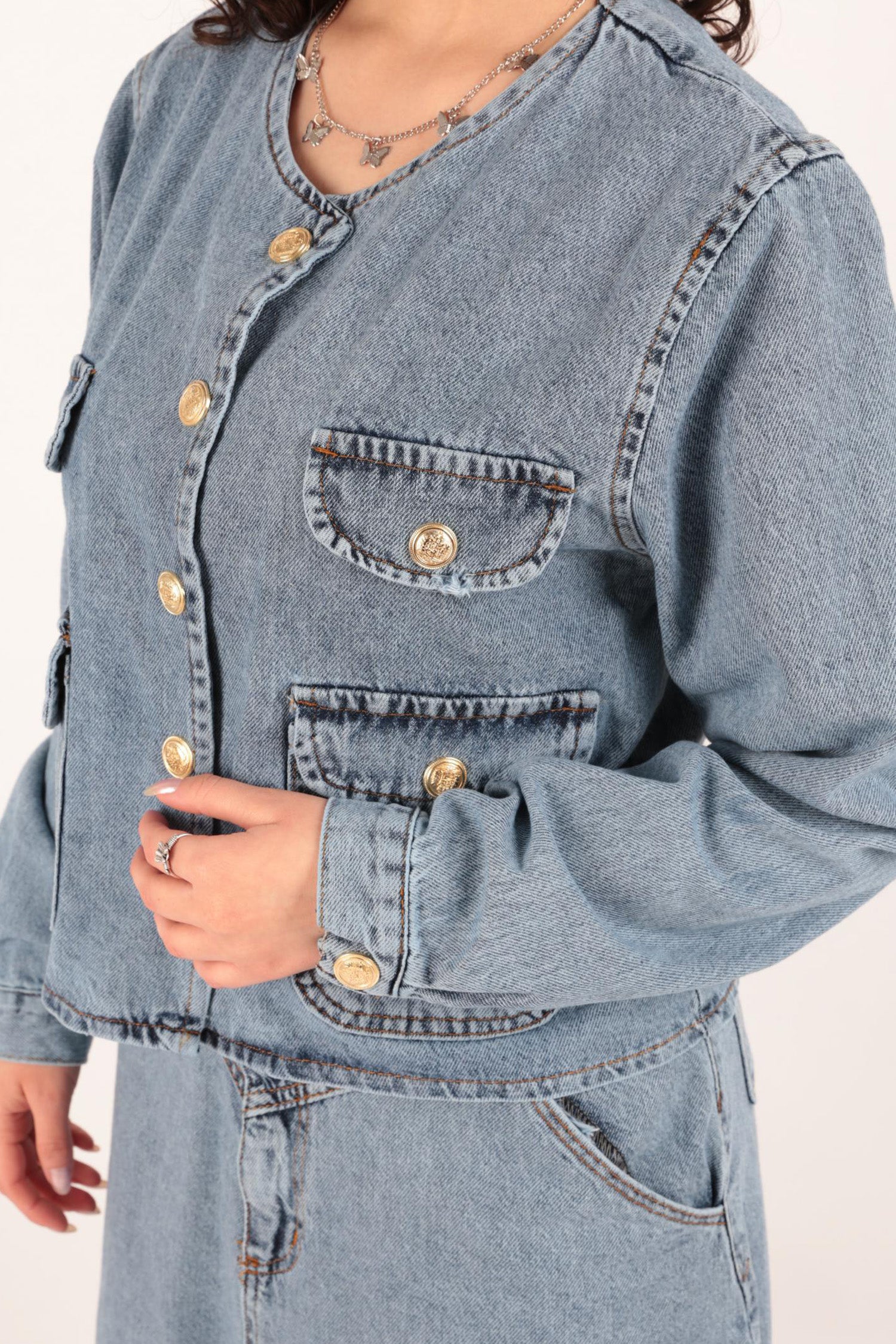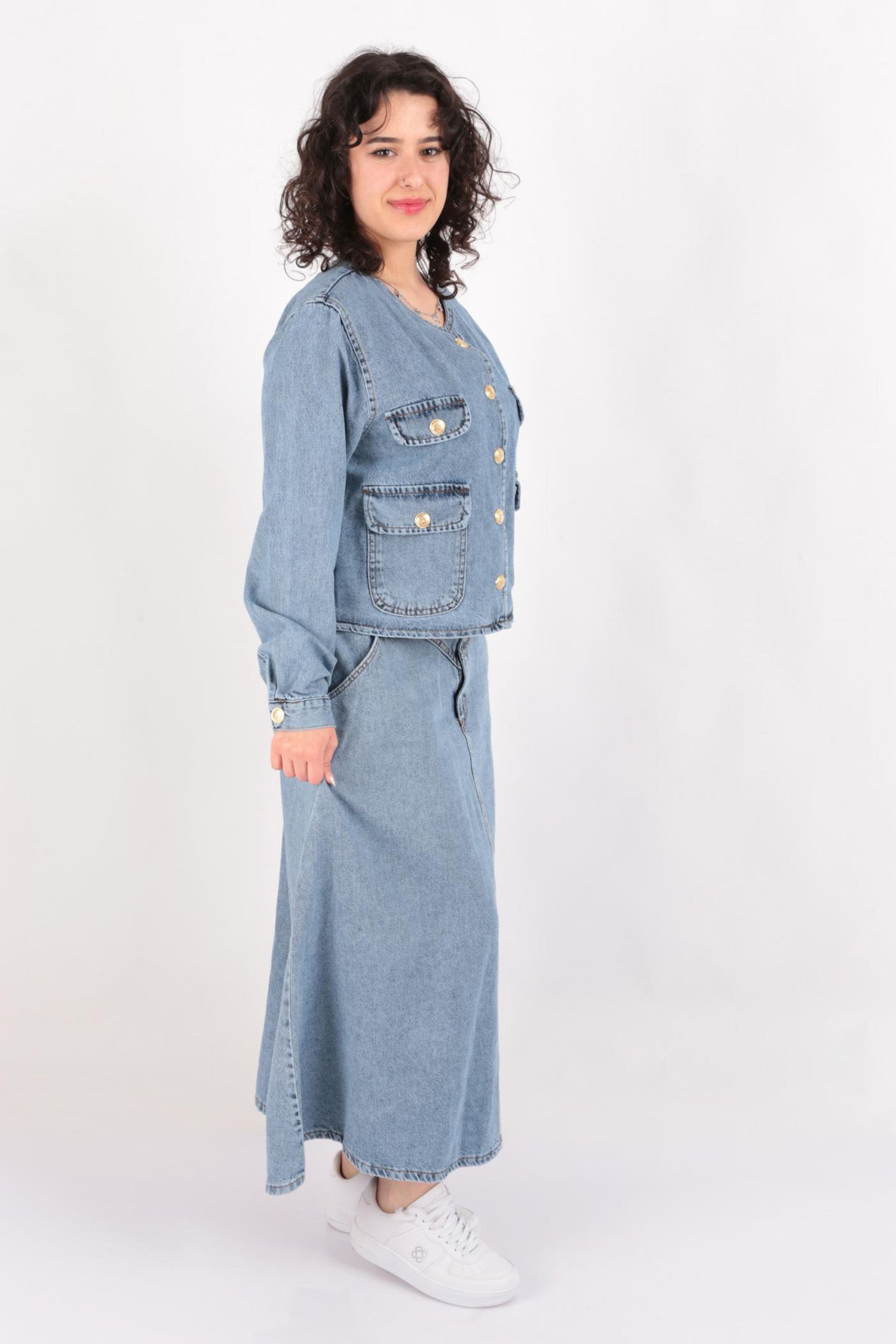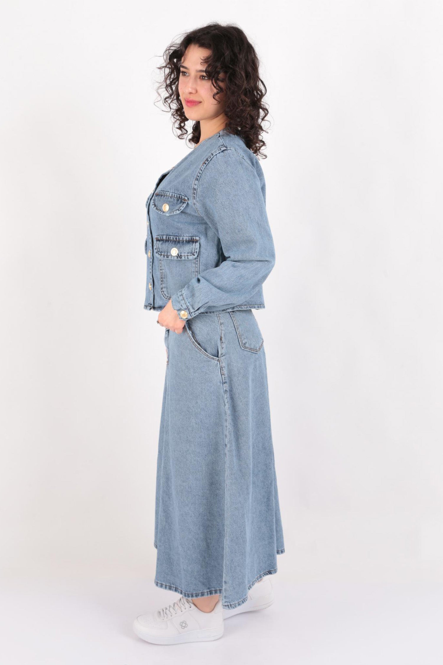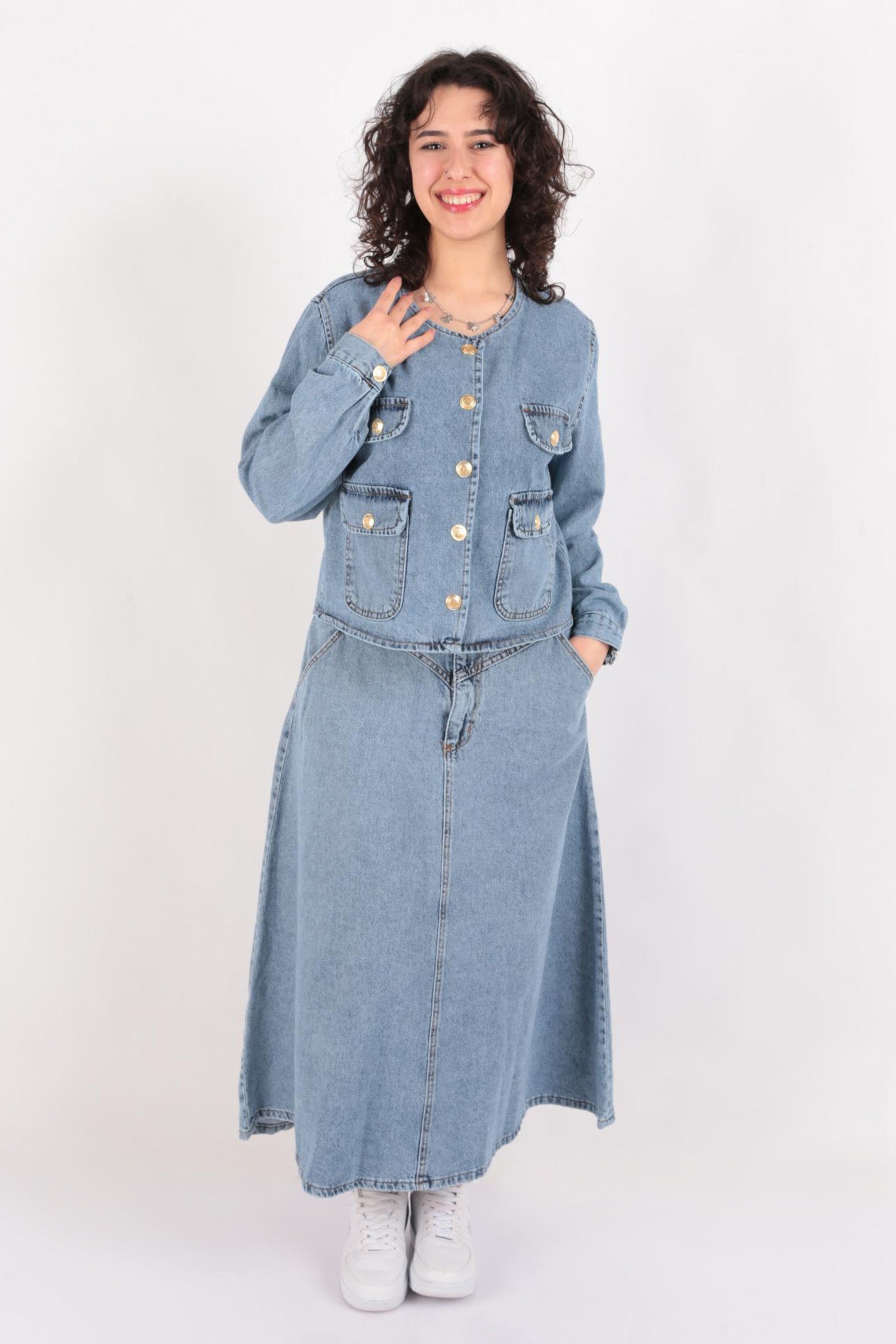Aynaz 12243 Kadın Uzun Kot Etek Ve Kot Ceket İkili Takım Ss