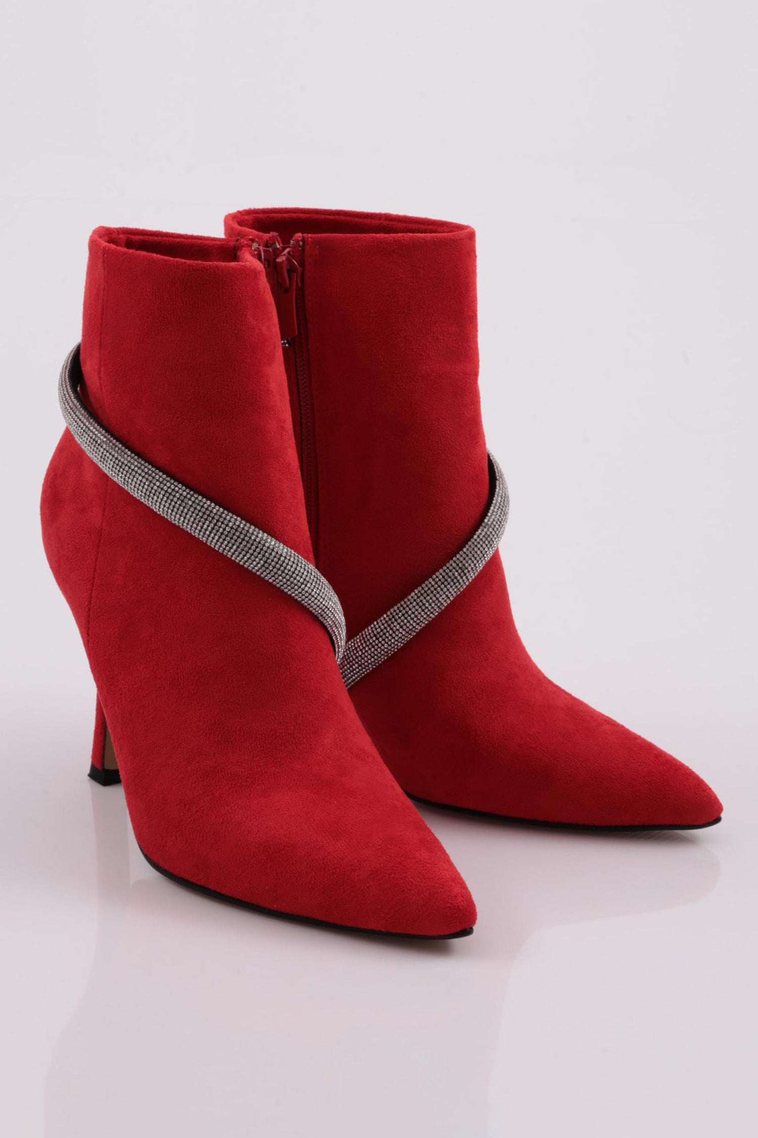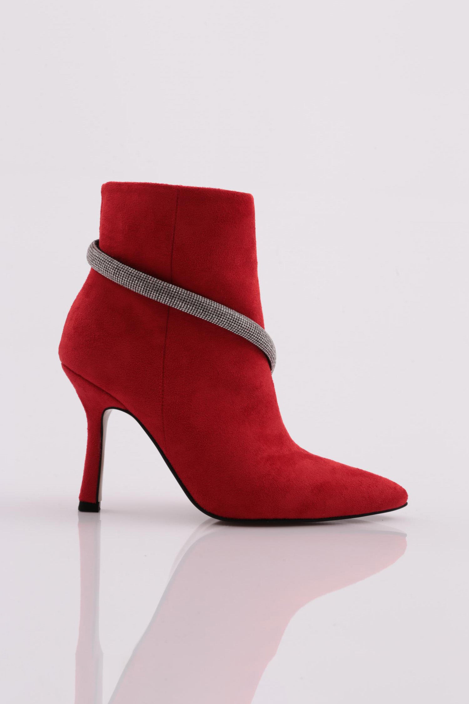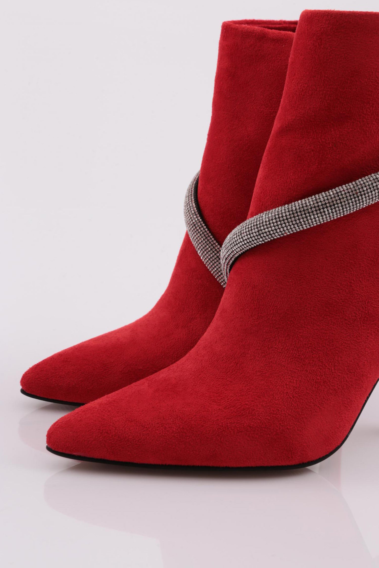 Bilekten Çarpraz Silver Taşlı Zincir Detaylı Kadın Topuklu Bot 6837535