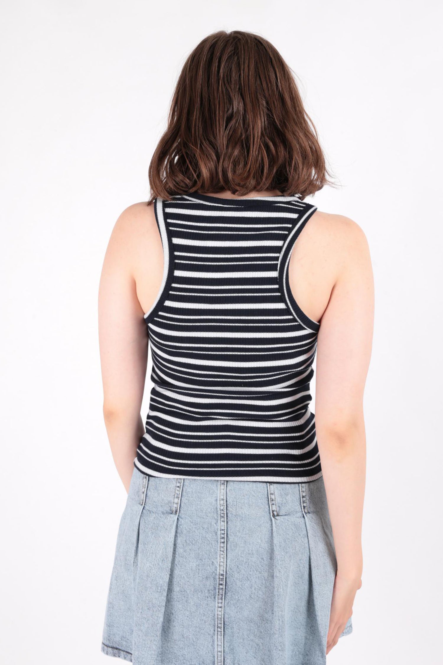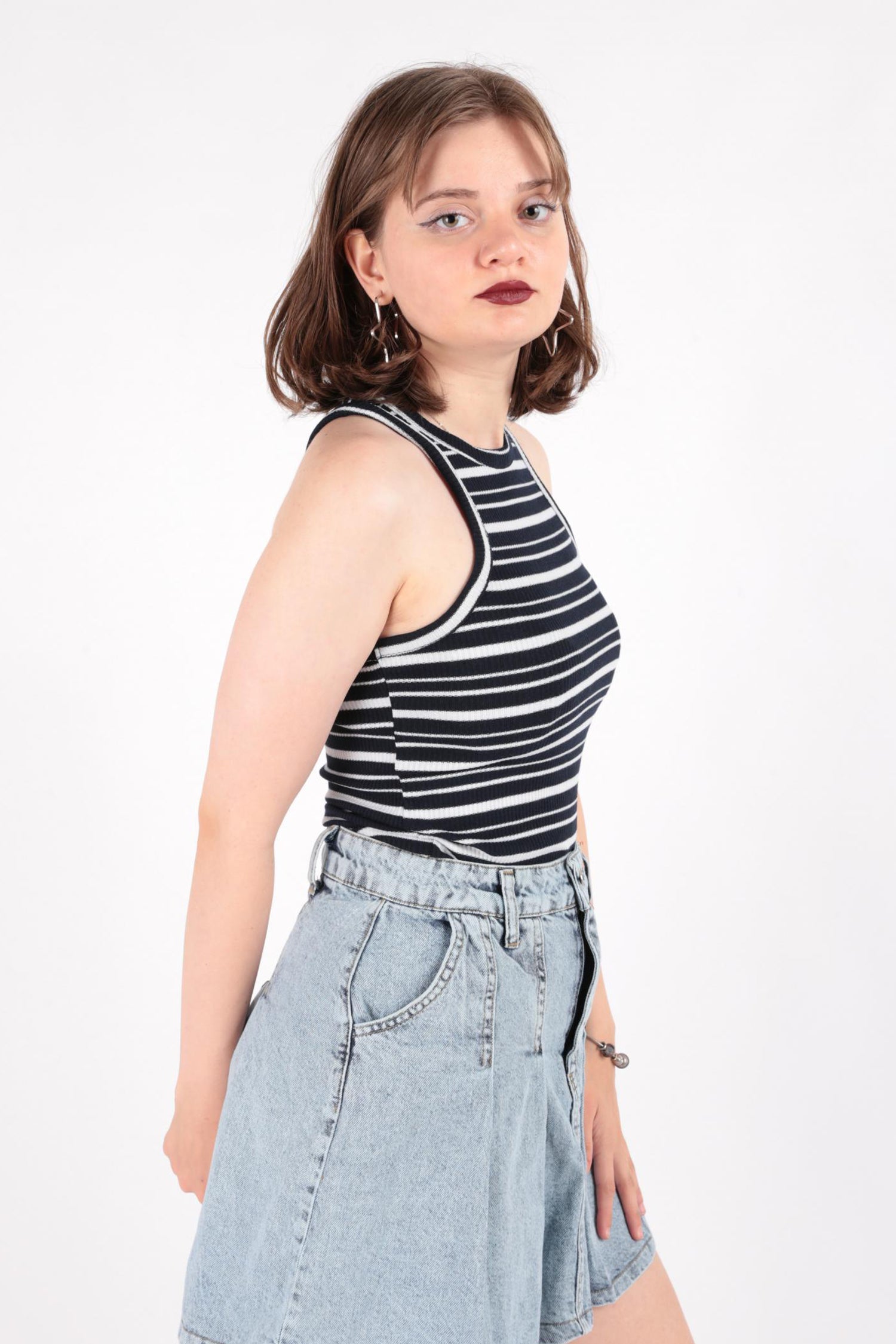 Busem S0016156 Kadın Slim Fit Çizgili Halter Yaka Fitilli Kaşkorse Atlet