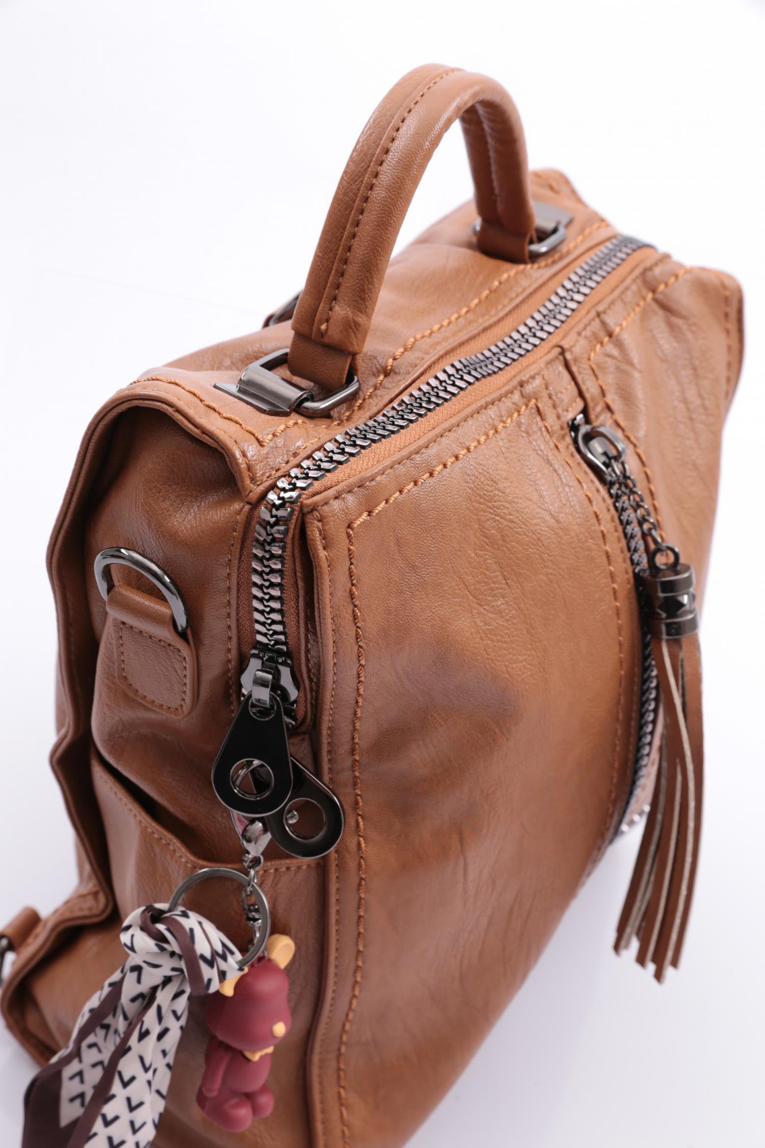 Ççs 17390 Kadın Yıkama Deri Maskotlu El Ve Kol Çantası