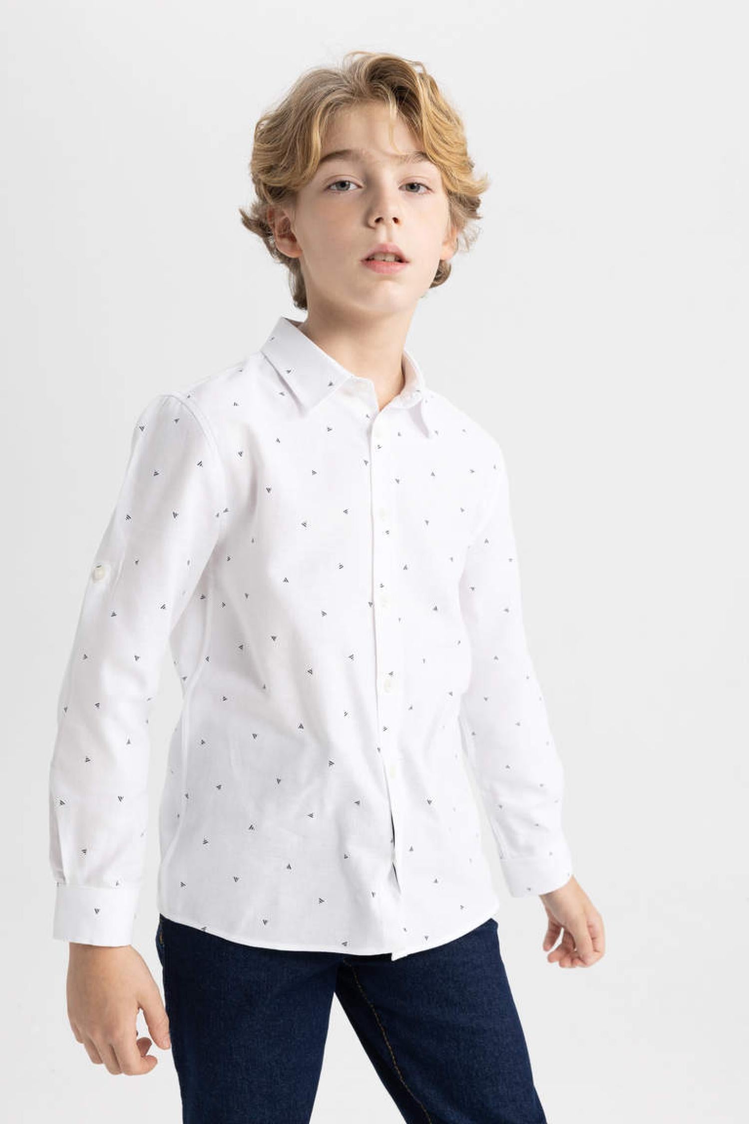 Defacto C0603A8 Ss Erkek Çocuk Regular Fit Polo Yaka Oxford Uzun Kollu Gömlek