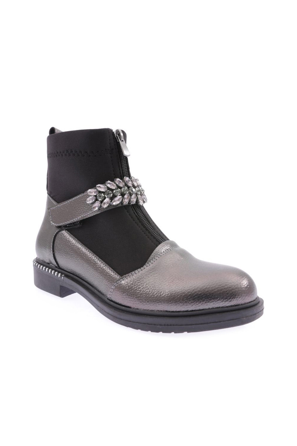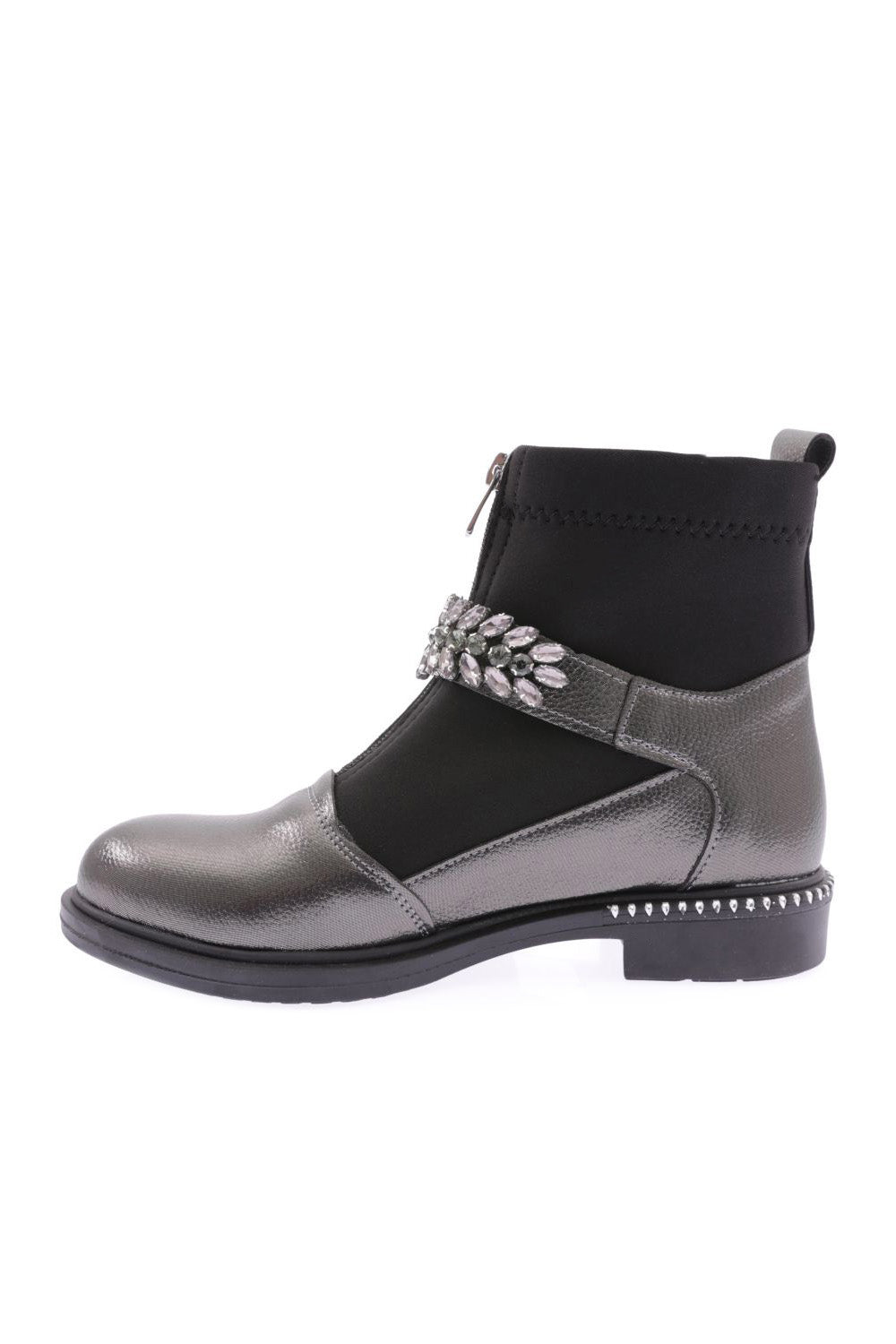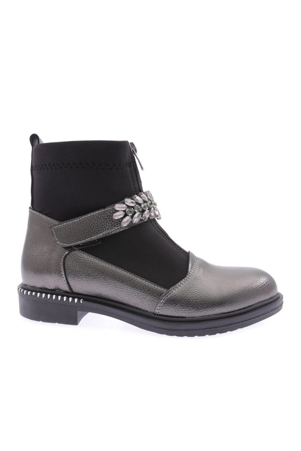 Kadın Yuvarlak Burun Önü Fermuarlı Taşlı Kemerli Bot 26235332132142322