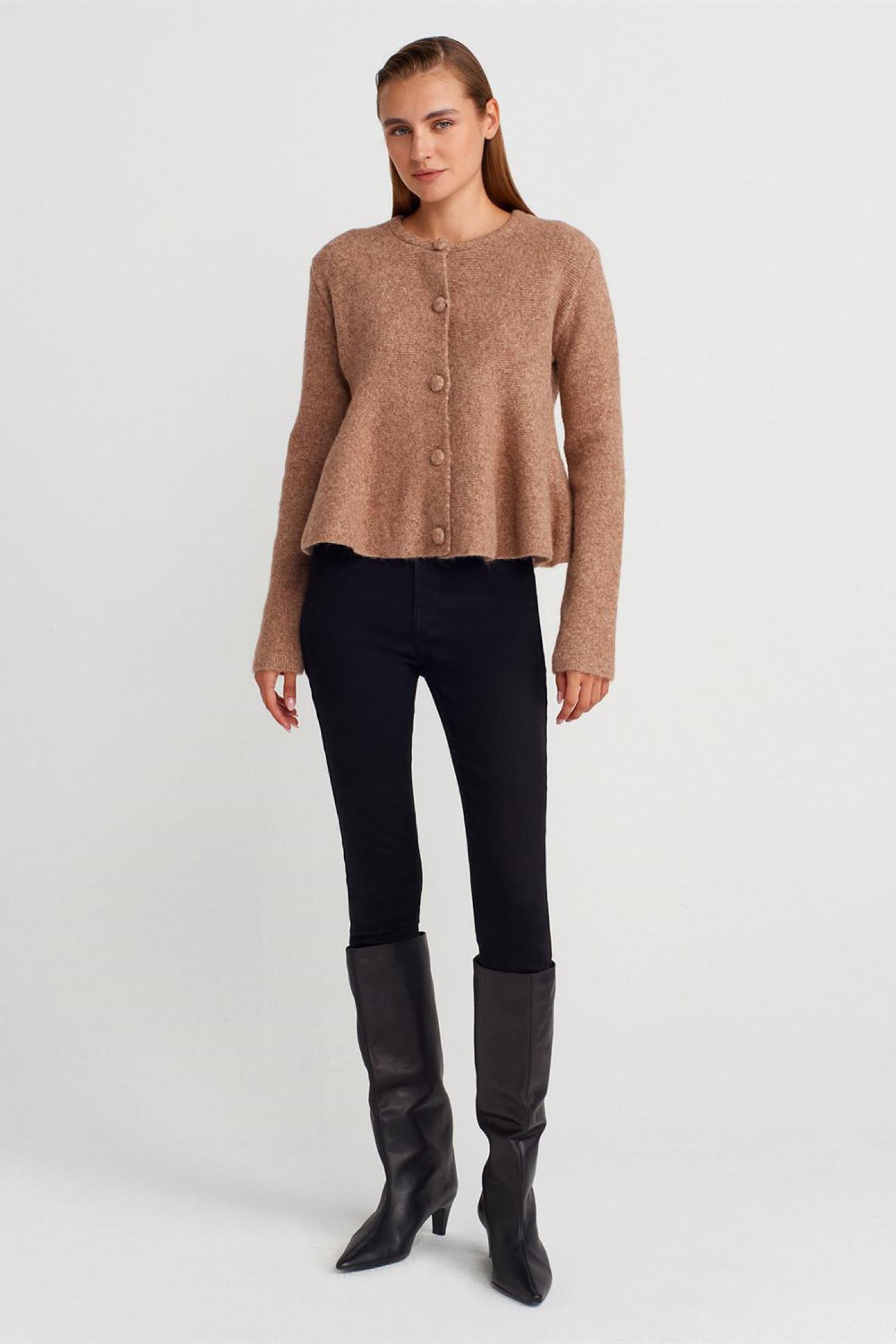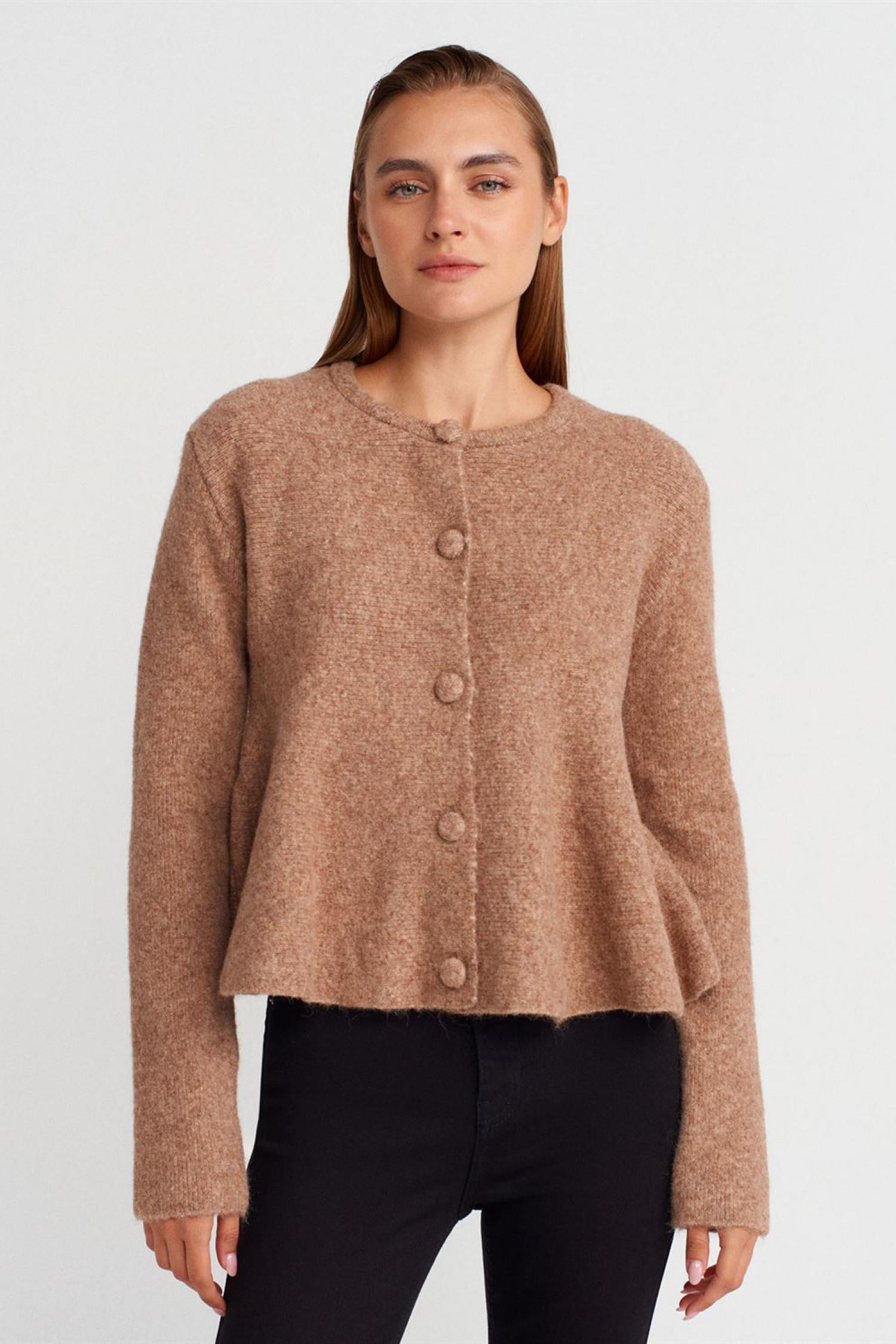 Dilvin 60985 Kadın Yumuşak Dokulu Peplum Düğmeli Triko Hırka
