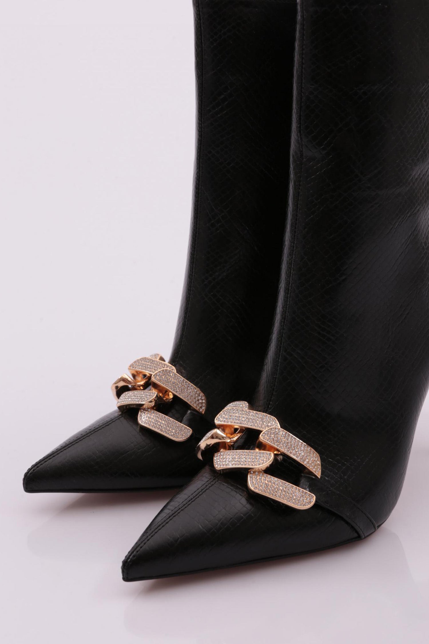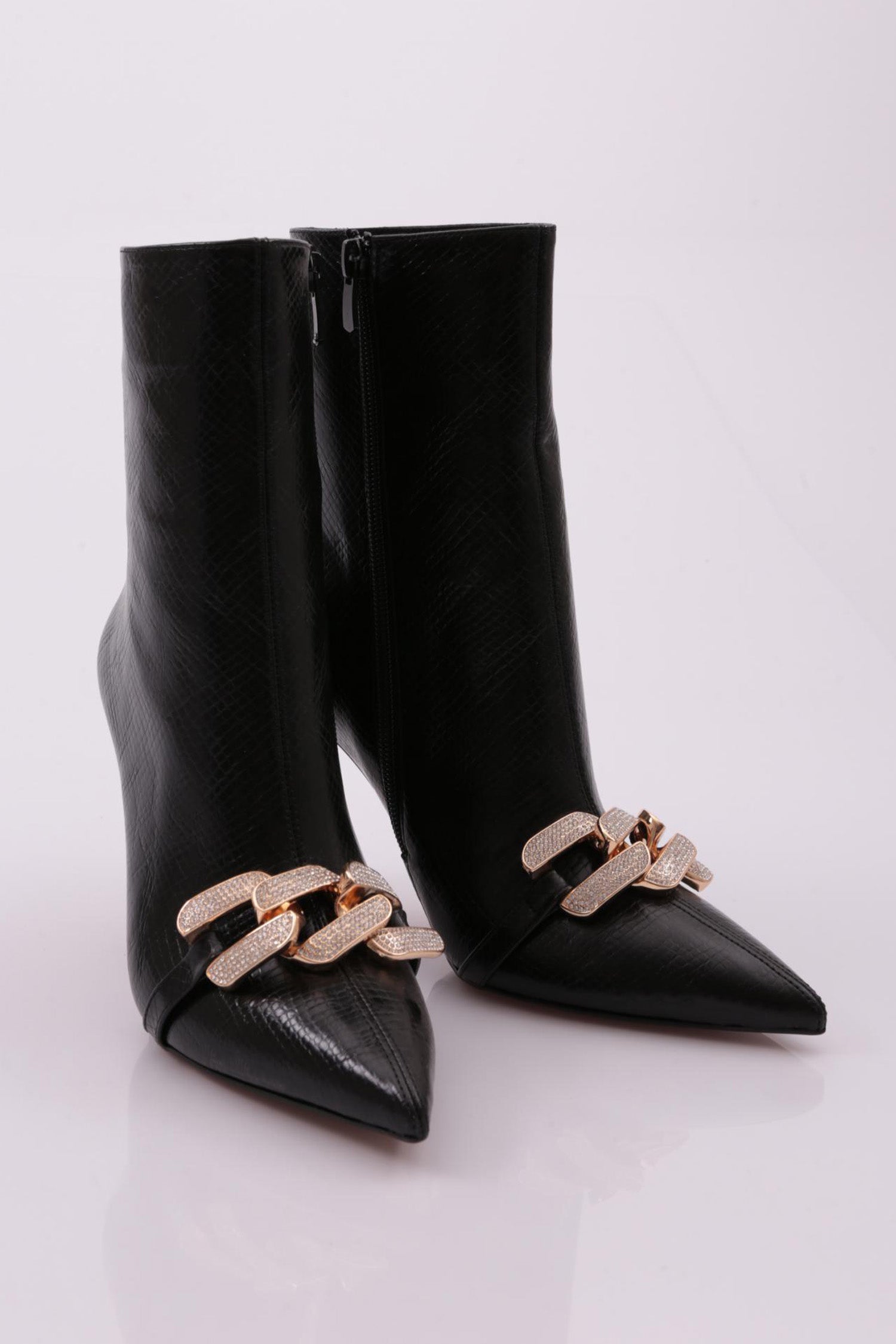 K Kadın Sivri Burun Ön Sılver Taşlı Zincir Tokalı Uzun İnce Topuklu Bot 2362392859