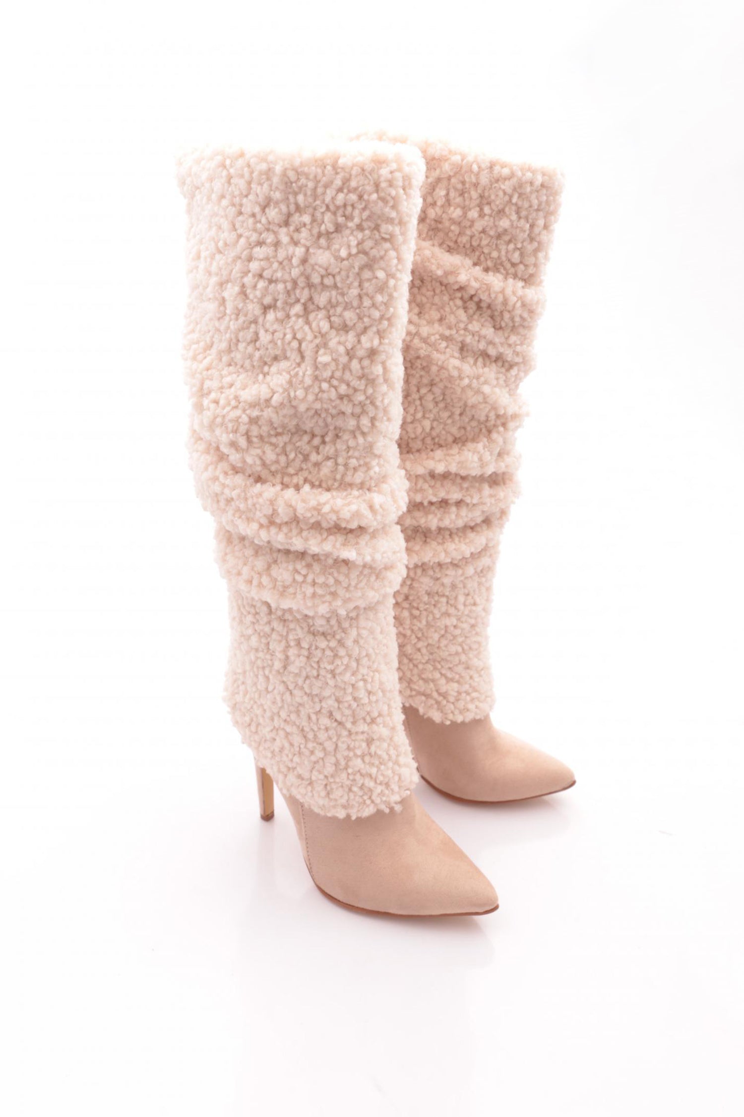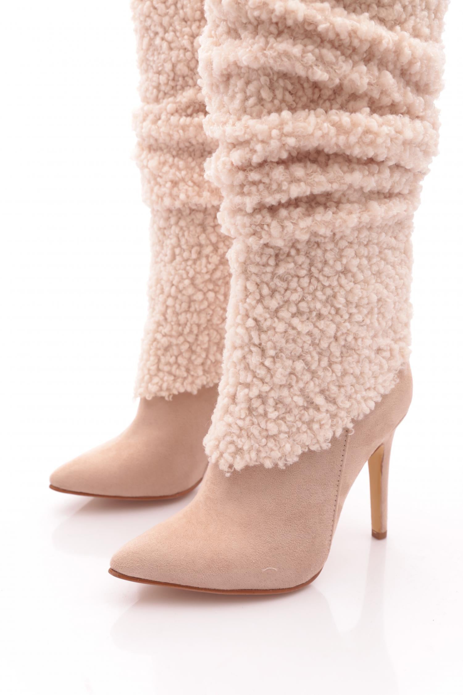 K Kadın Sivri Burun Üzeri Kürklü Uzun Çizme 53552654