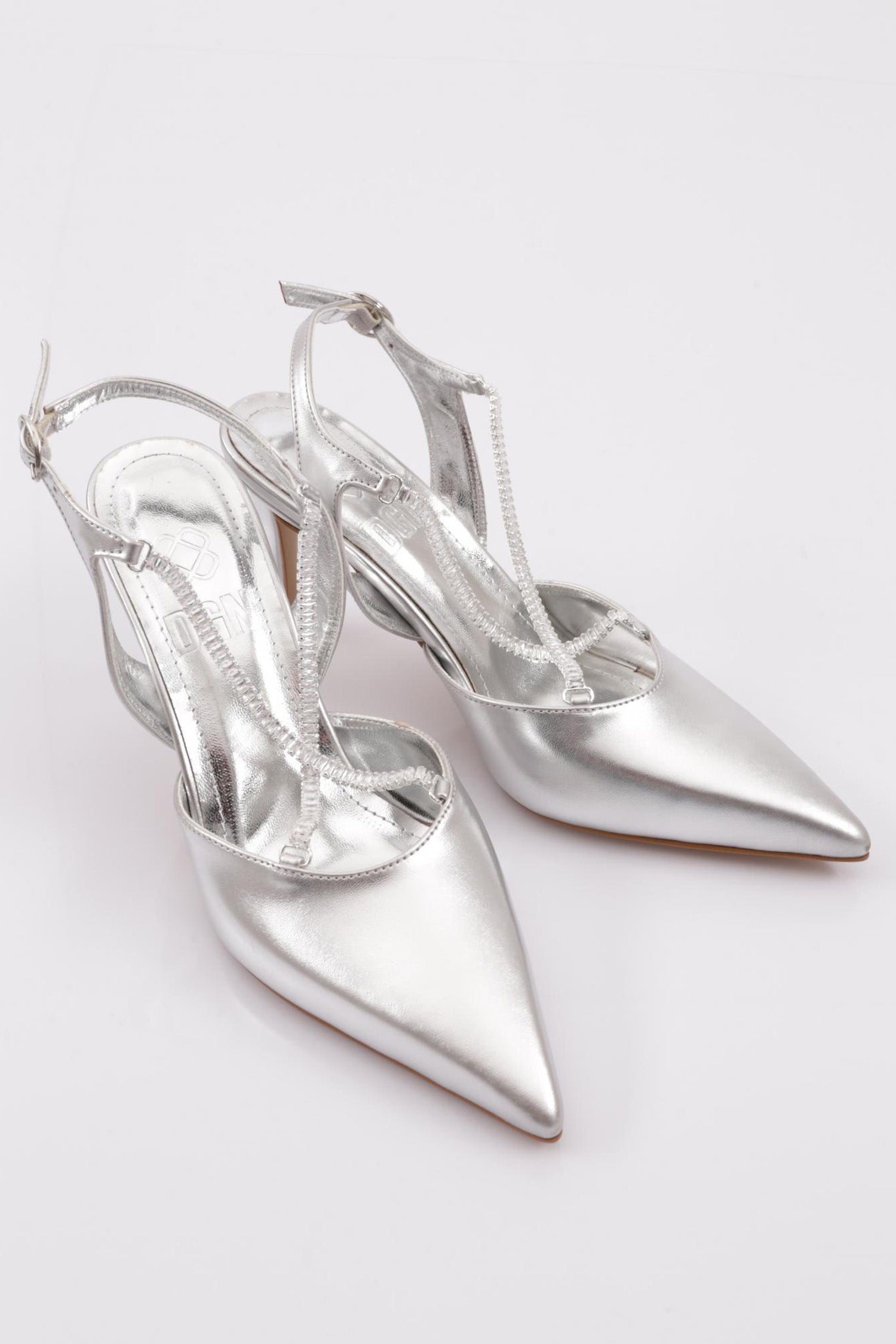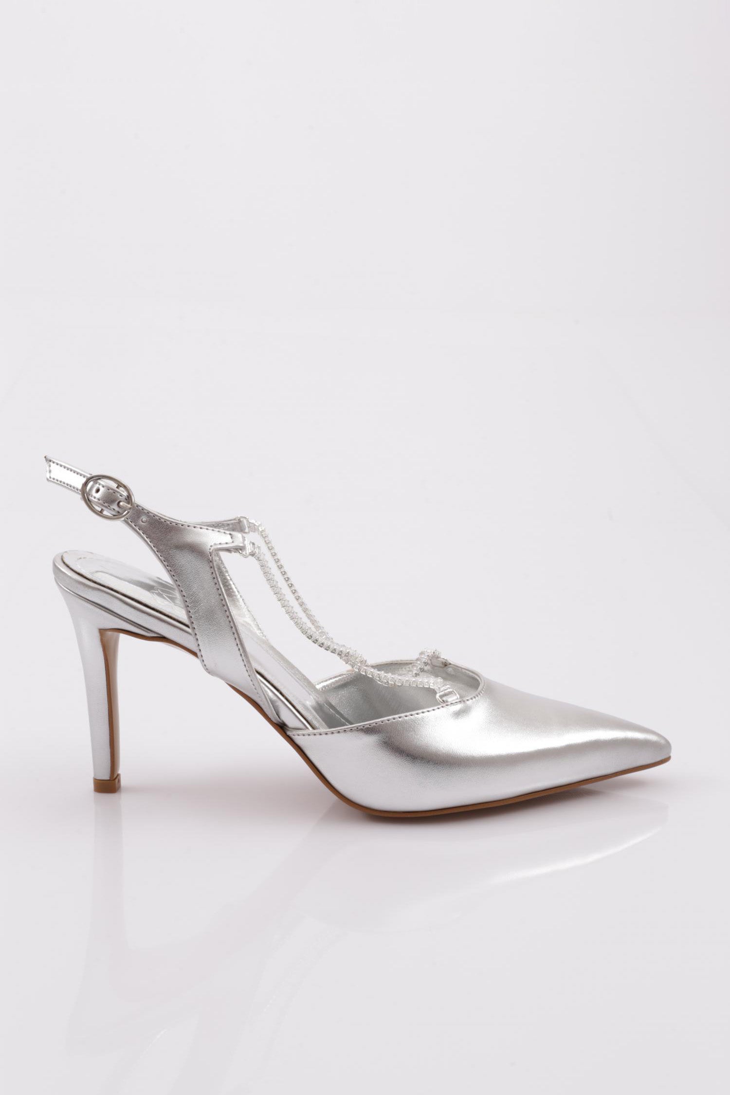 Kadın Arkası Açık Taş Zincirli Topuklu Ayakkabı 21153327