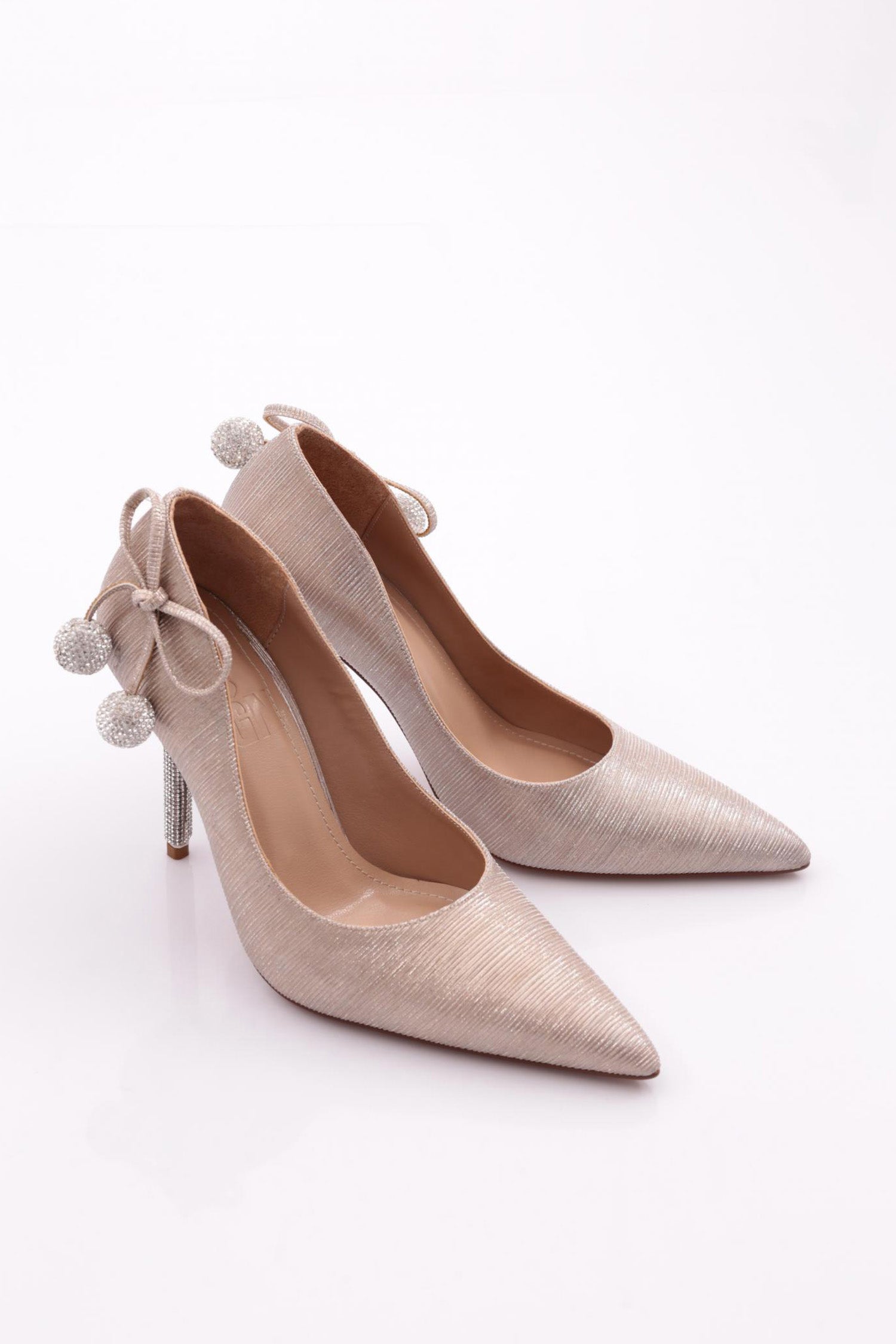 Kadın Arkası Kristal Top Süsleme Topuklu Ayakkabı 56573557