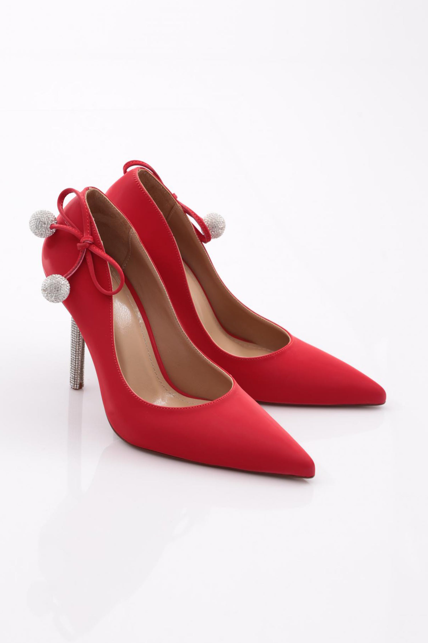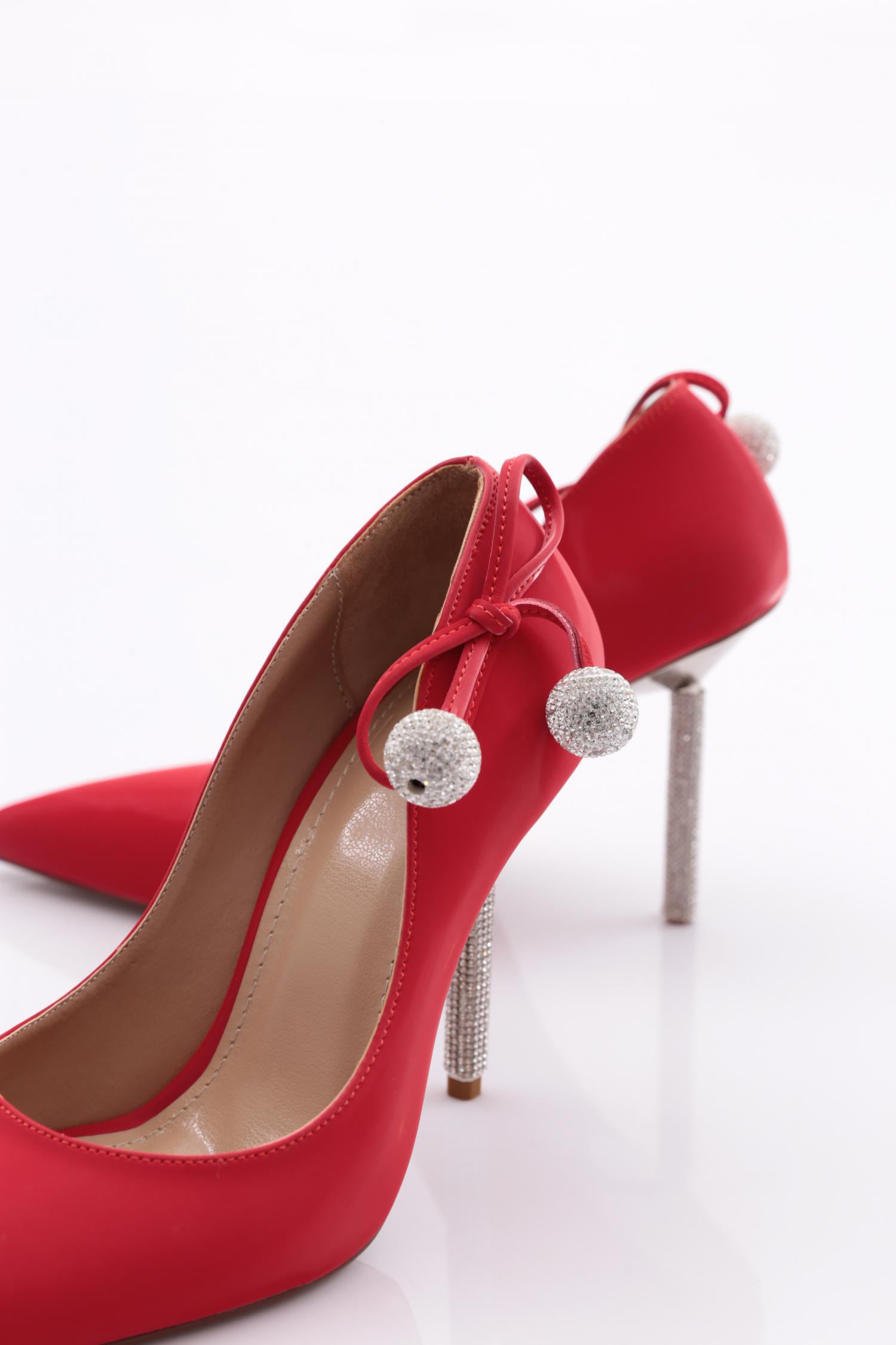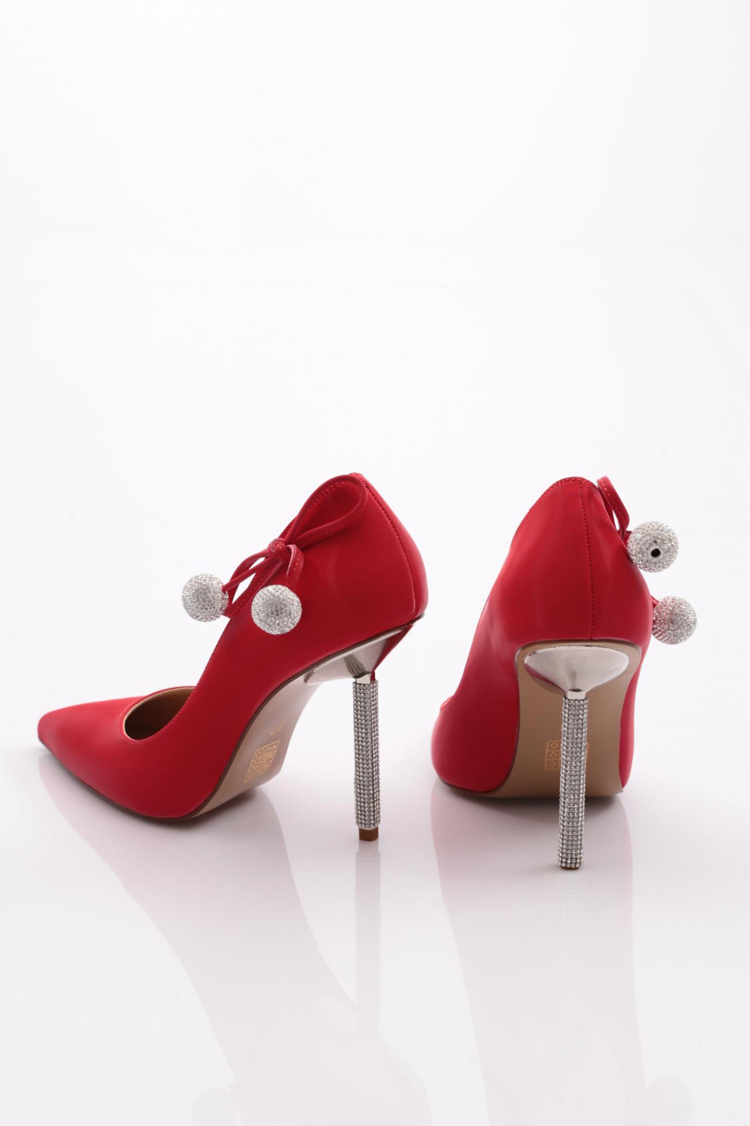 Kadın Arkası Kristal Top Süsleme Topuklu Ayakkabı 56573557