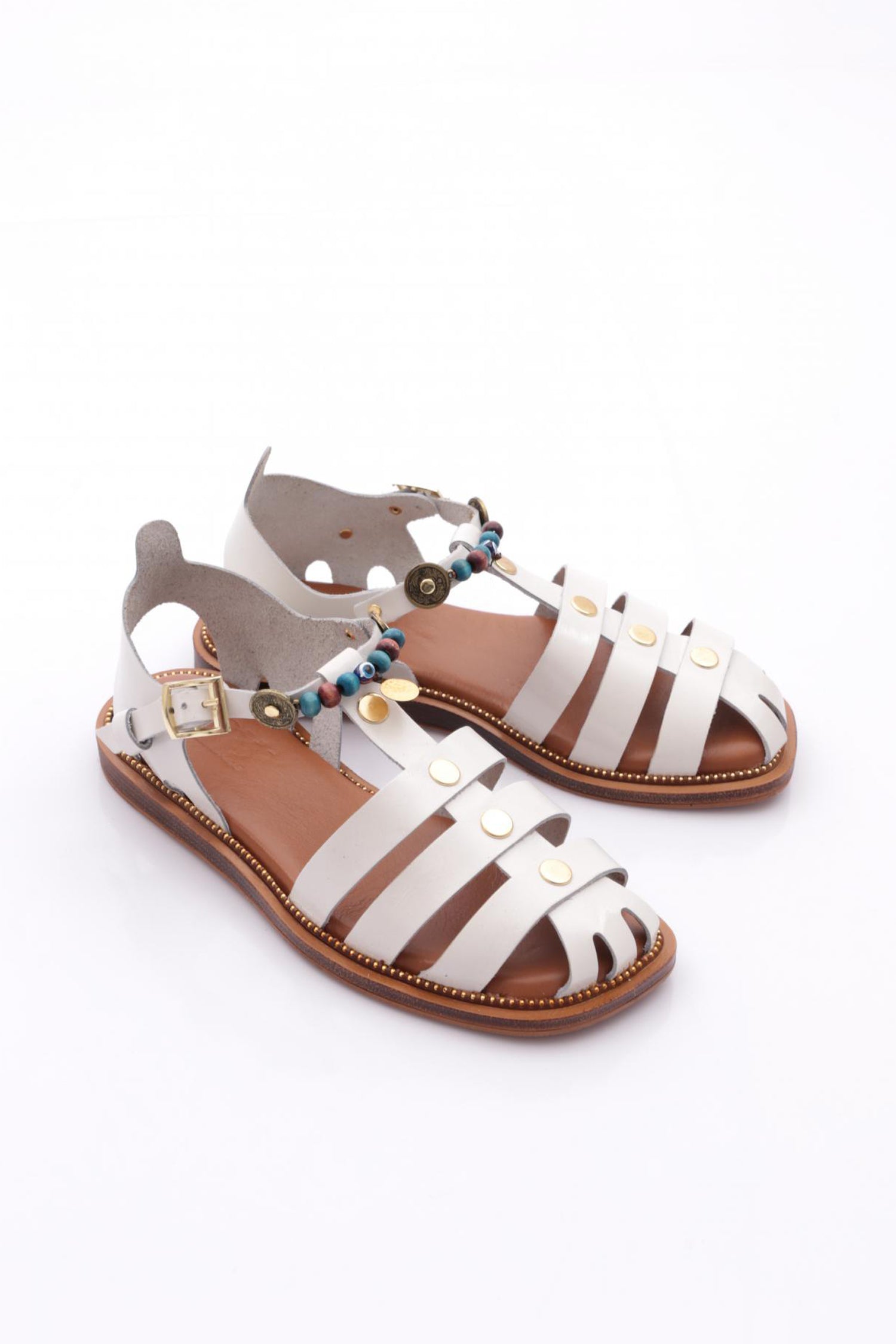 Kadın Bilekten Bağlama Boncuklu Sandalet 4173289