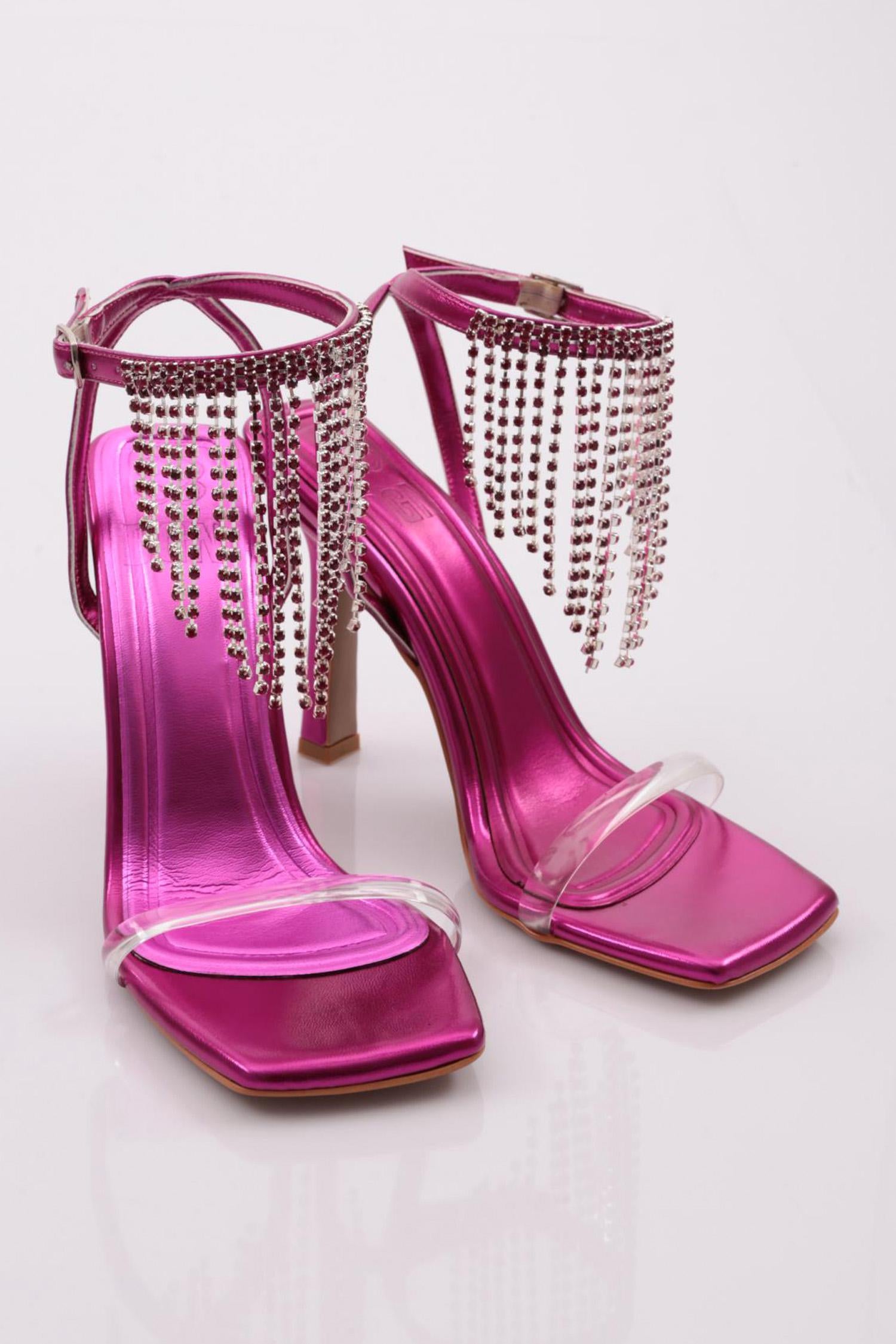 Kadın Bilekten Bağlama Taş Püsküllü Topuklu Ayakkabı 315333210