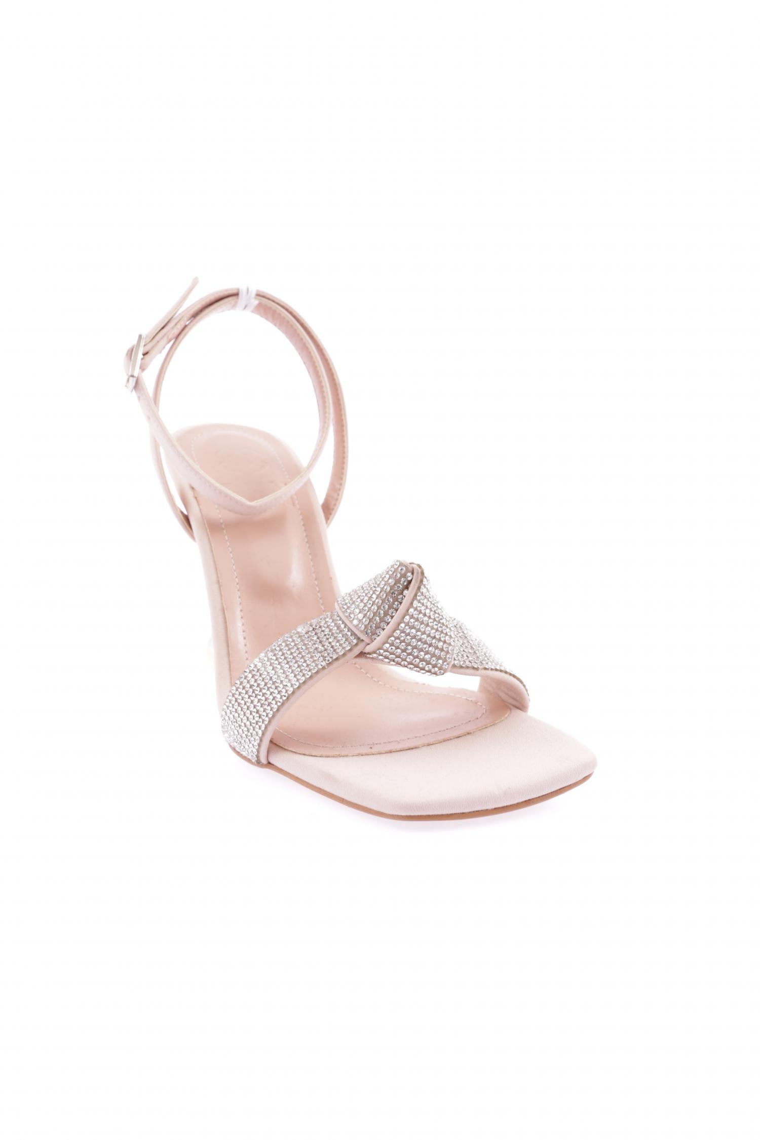 Kadın Burgulu Silver Taşlı Bilekten Bağlı Topuklu Ayakkabı 62733382