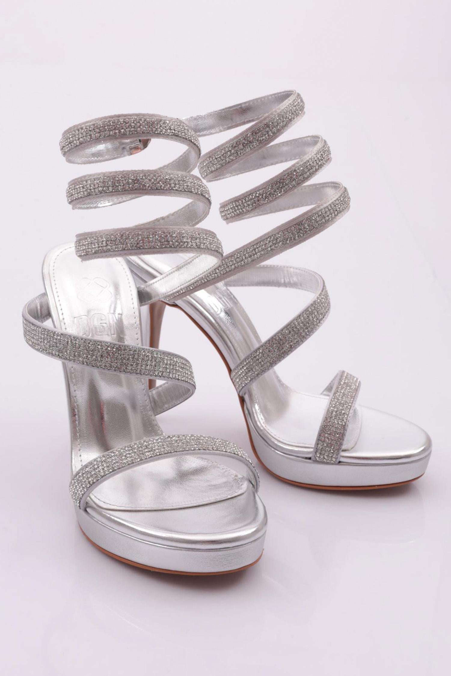 Kadın Burgulu Taş İpli Topuklu Ayakkabı 18823327