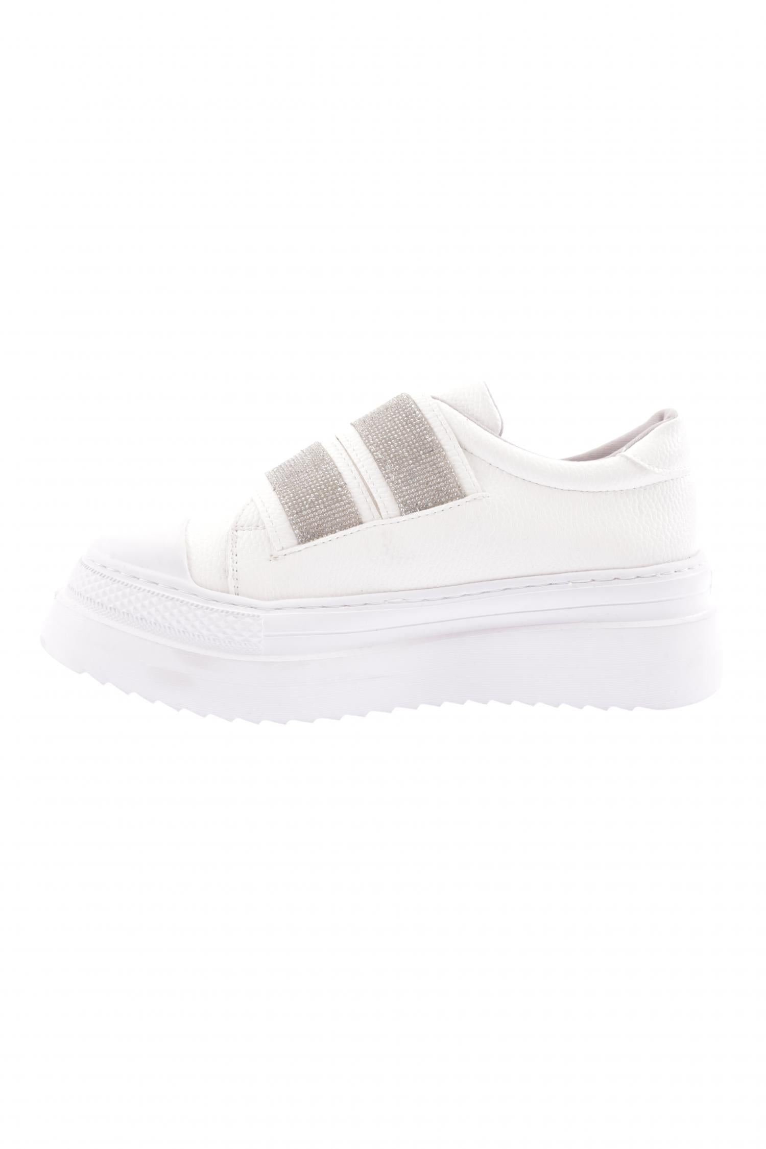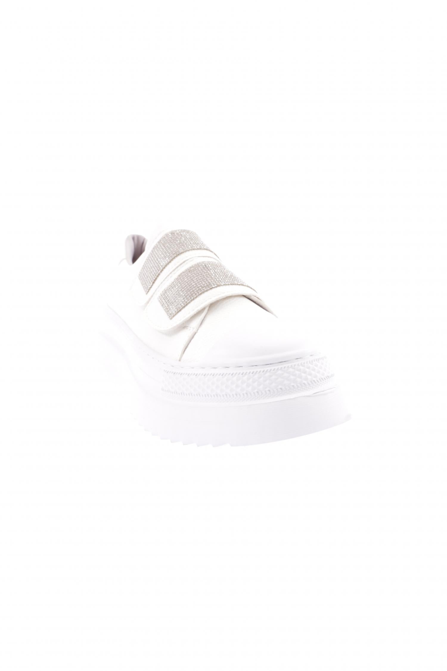 Kadın Cırtlı Bantları Silver Taşlı Kalın Taban Sneaker Ayakkabı 910921097