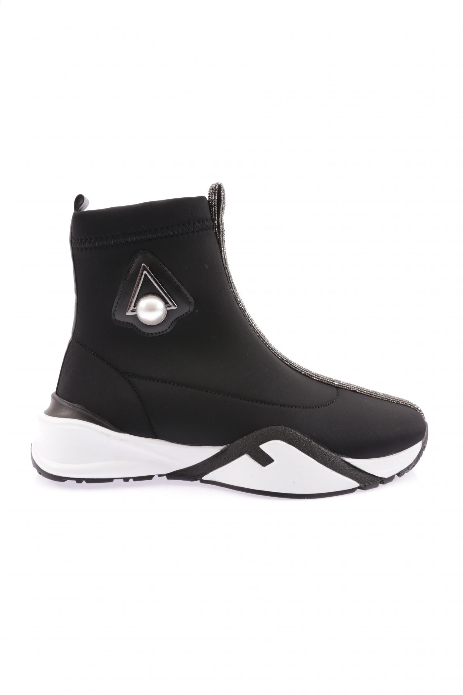 Kadın Kalın Taban Silver Taş Detaylı İnci Aksesuarlı Bot 1443363