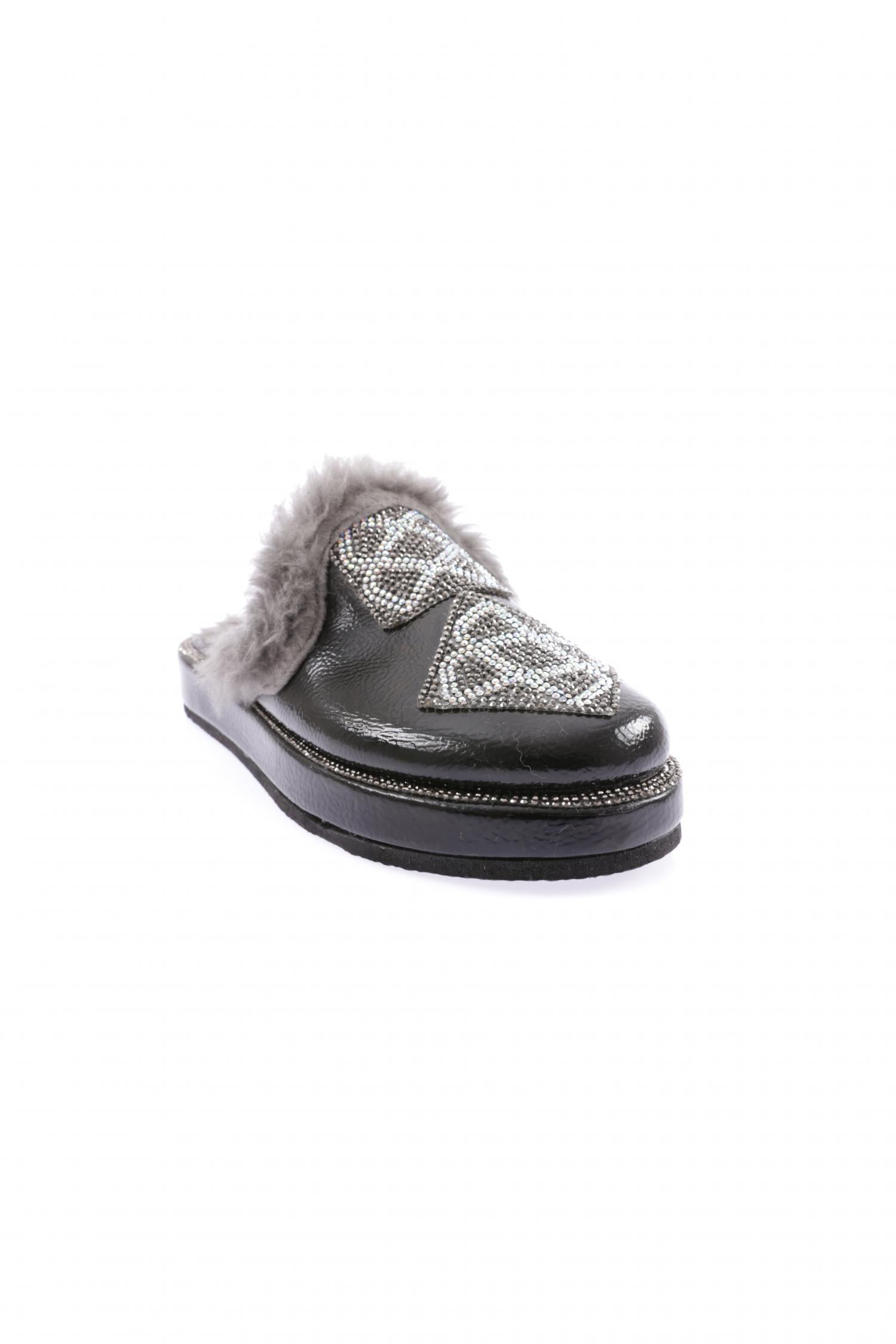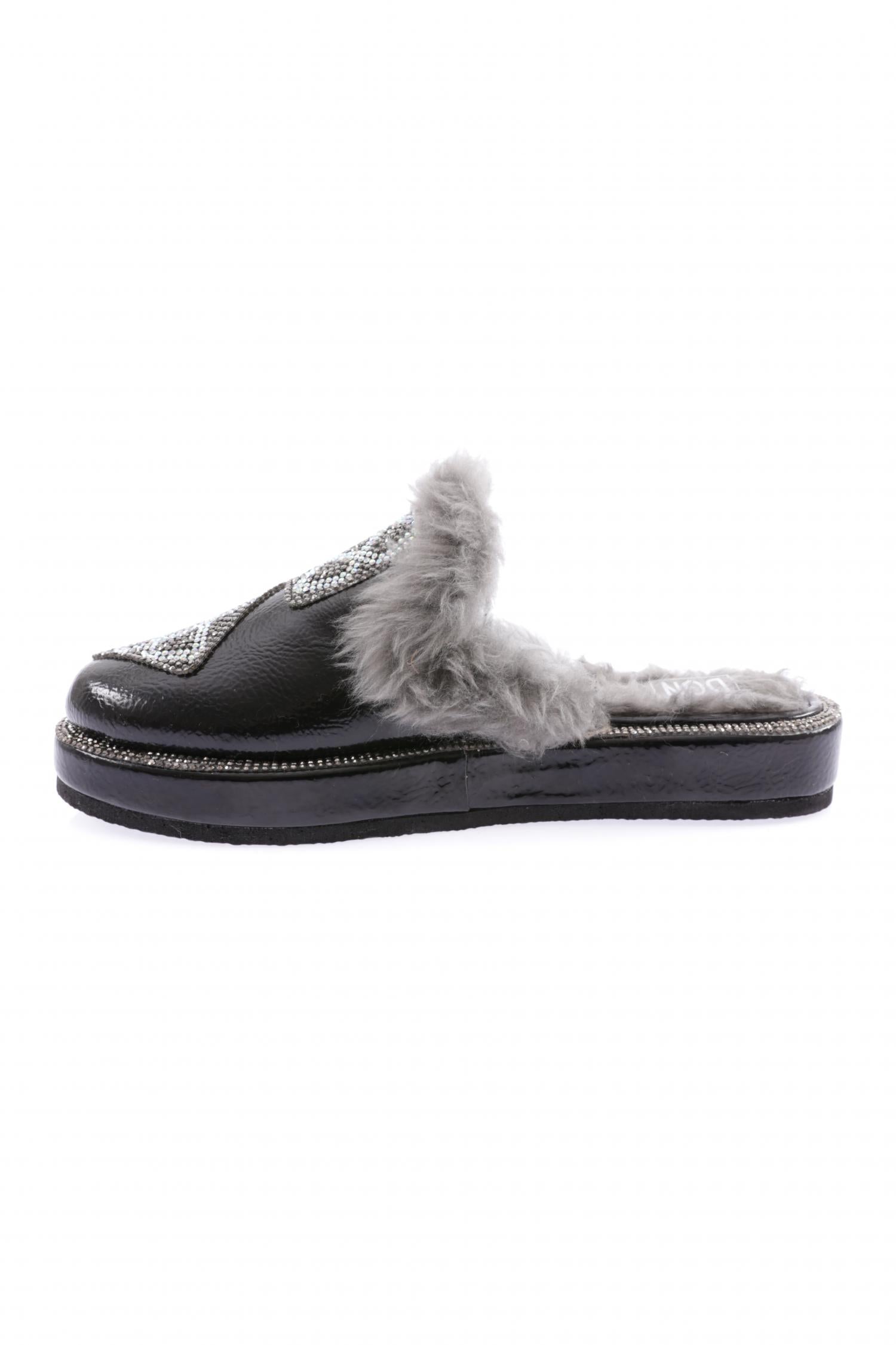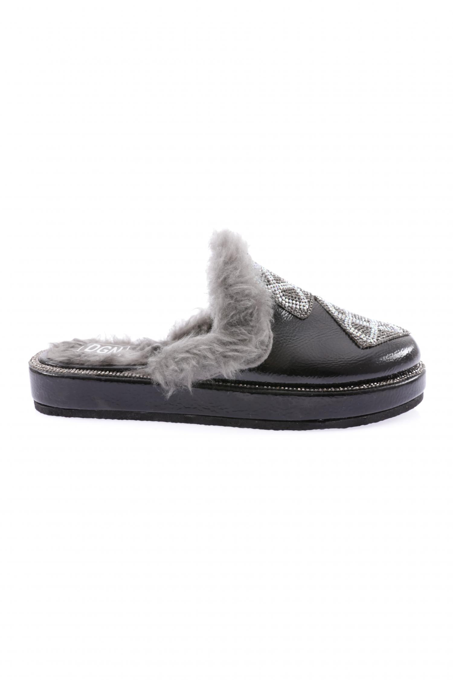 Kadın Kapalı Burun Taşlı Kare Arma Kürklü Terlik 8463268