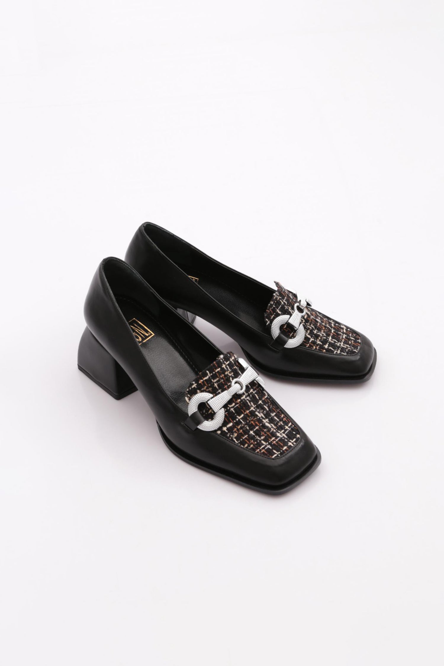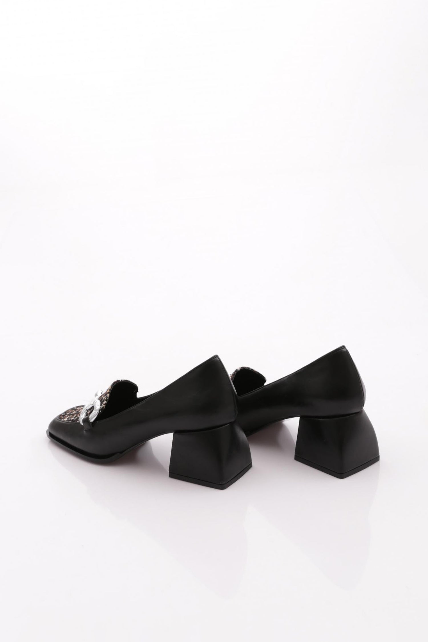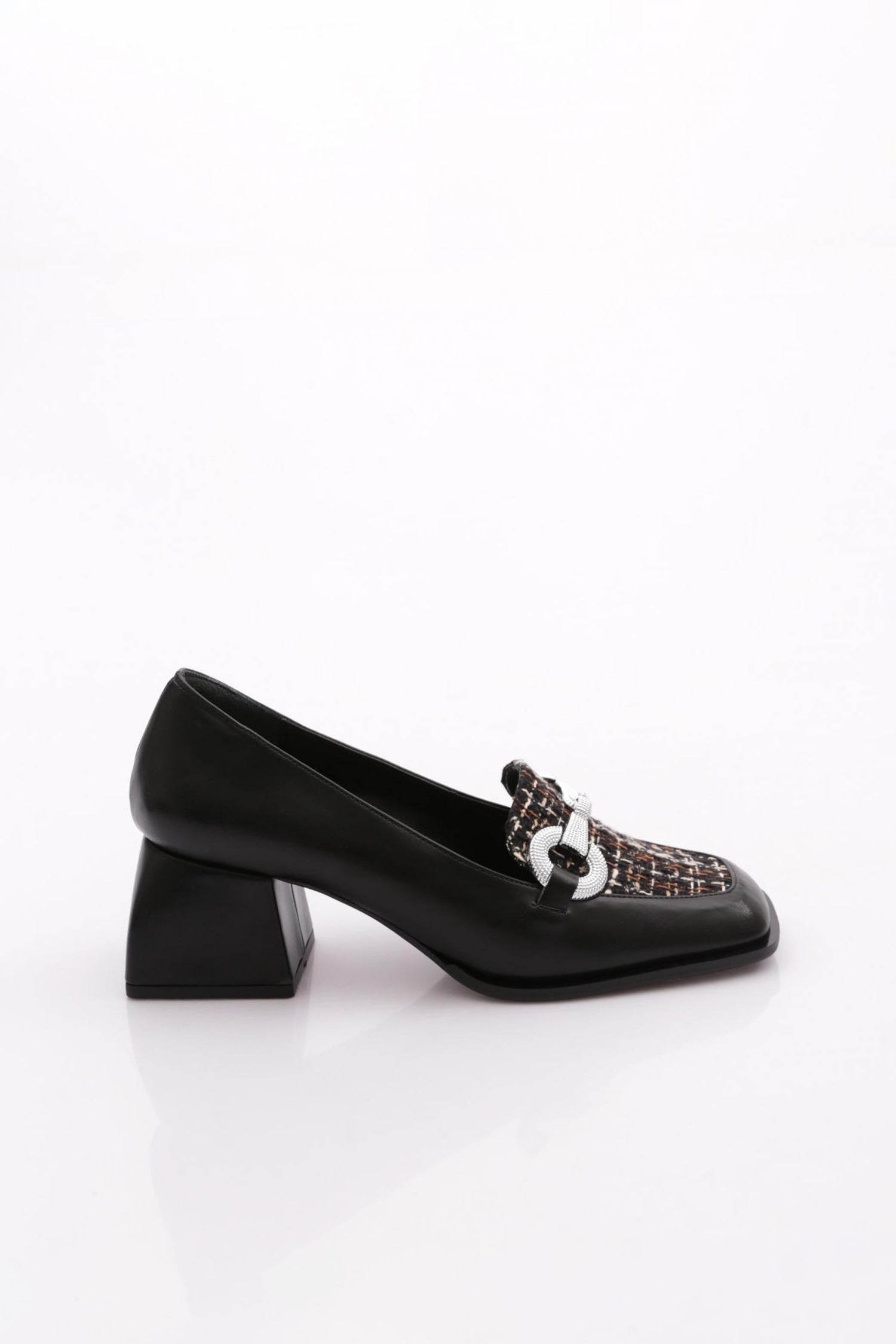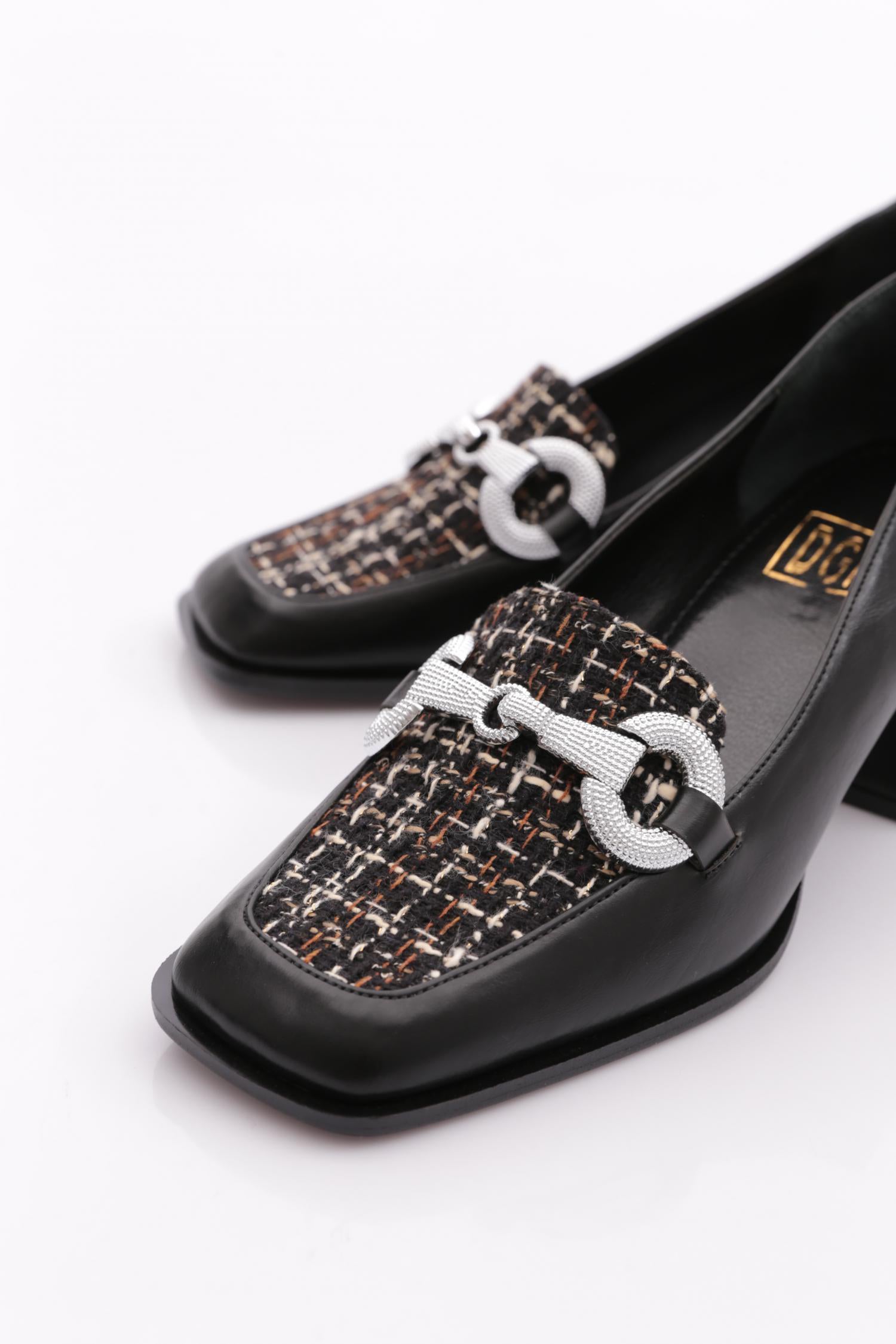 Kadın Kare Burun Üzeri Tekstil Metal Toka Kısa Ökçeli Ayakkabı 234462859