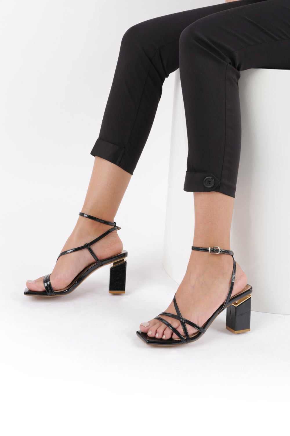 Kadın Küt Burun Çerçeve Topuklu Sandalet 2181142859