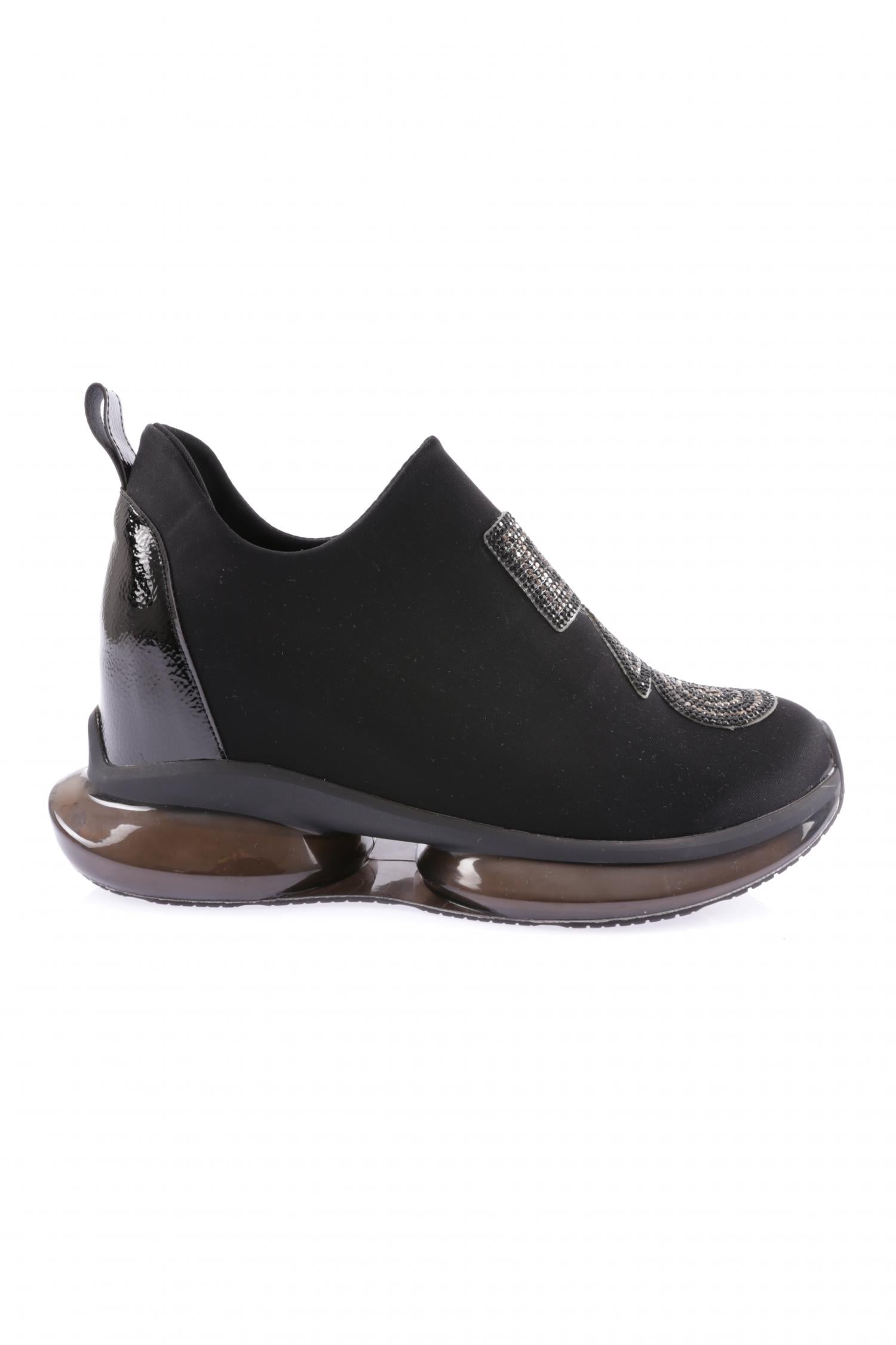 Kadın Mega Kalın Taban Strech Detaylı Silver Taşlı Sneakers Ayakkabı 21653136