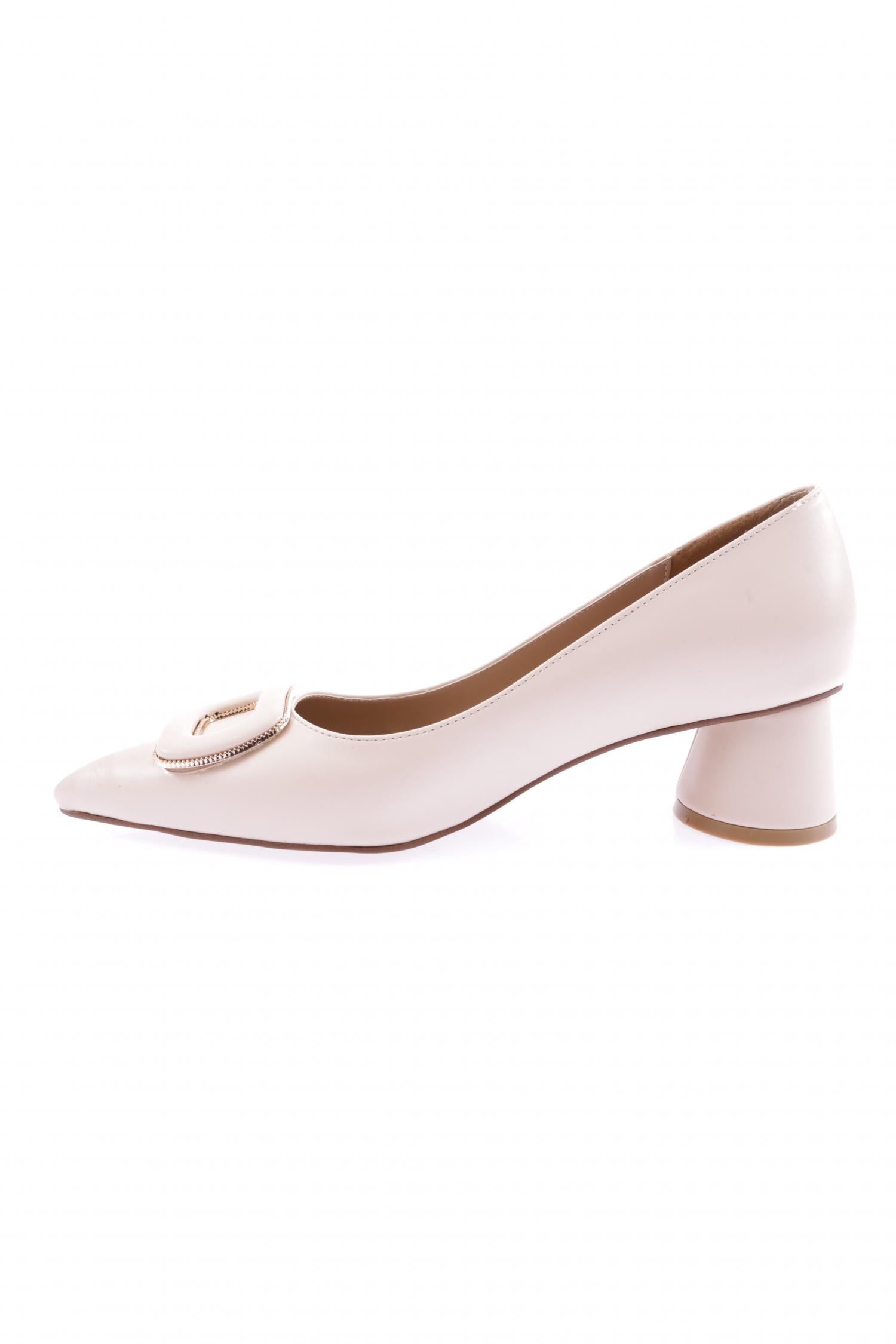 Kadın Metal Aksesuarlı Sivri Burun Kalın Kısa Topuklu Ayakkabı 54312821