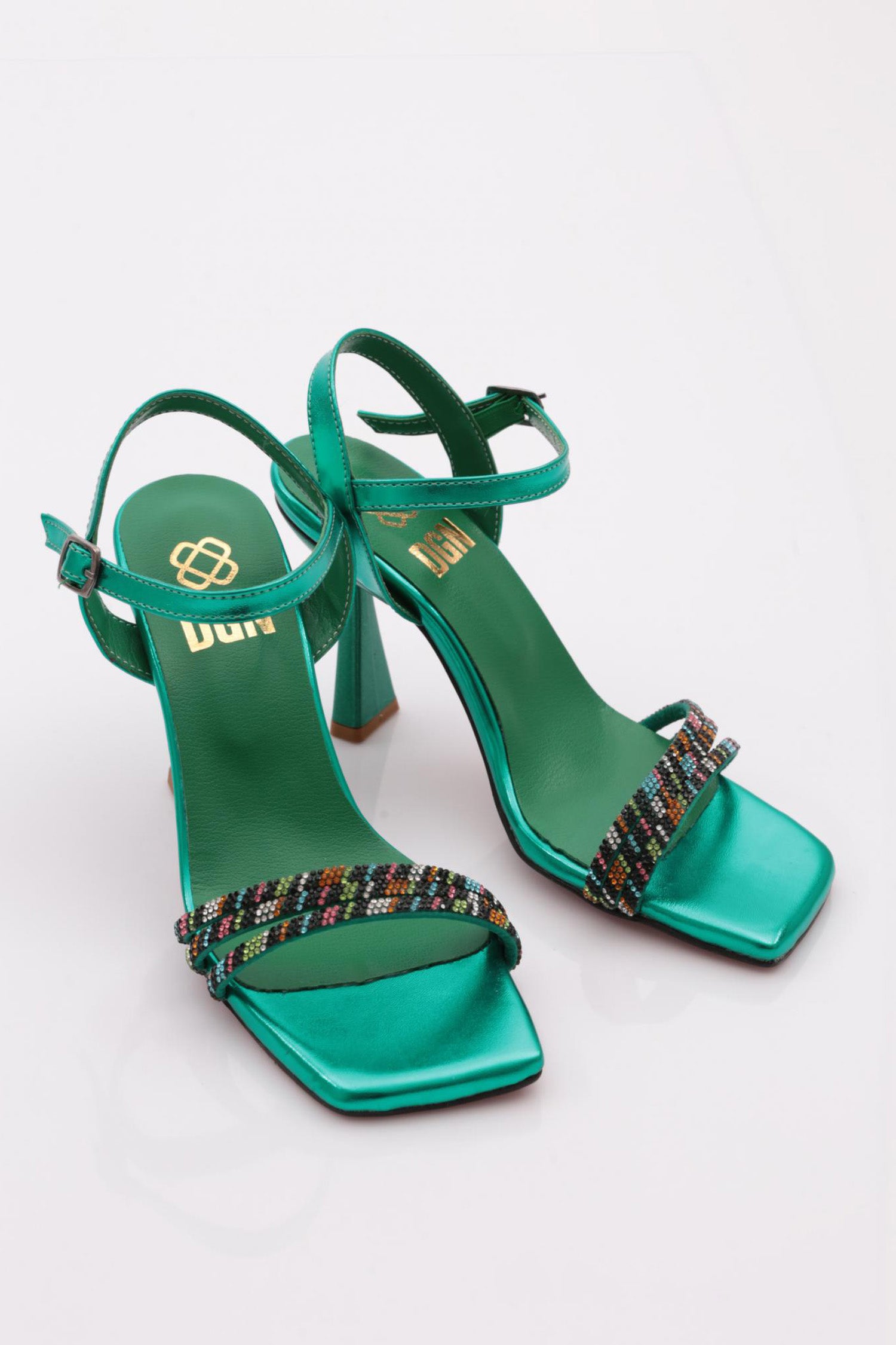 Kadın Renkli Şerit Bilekten Bağlama Topuklu Ayakkabı 23101021029