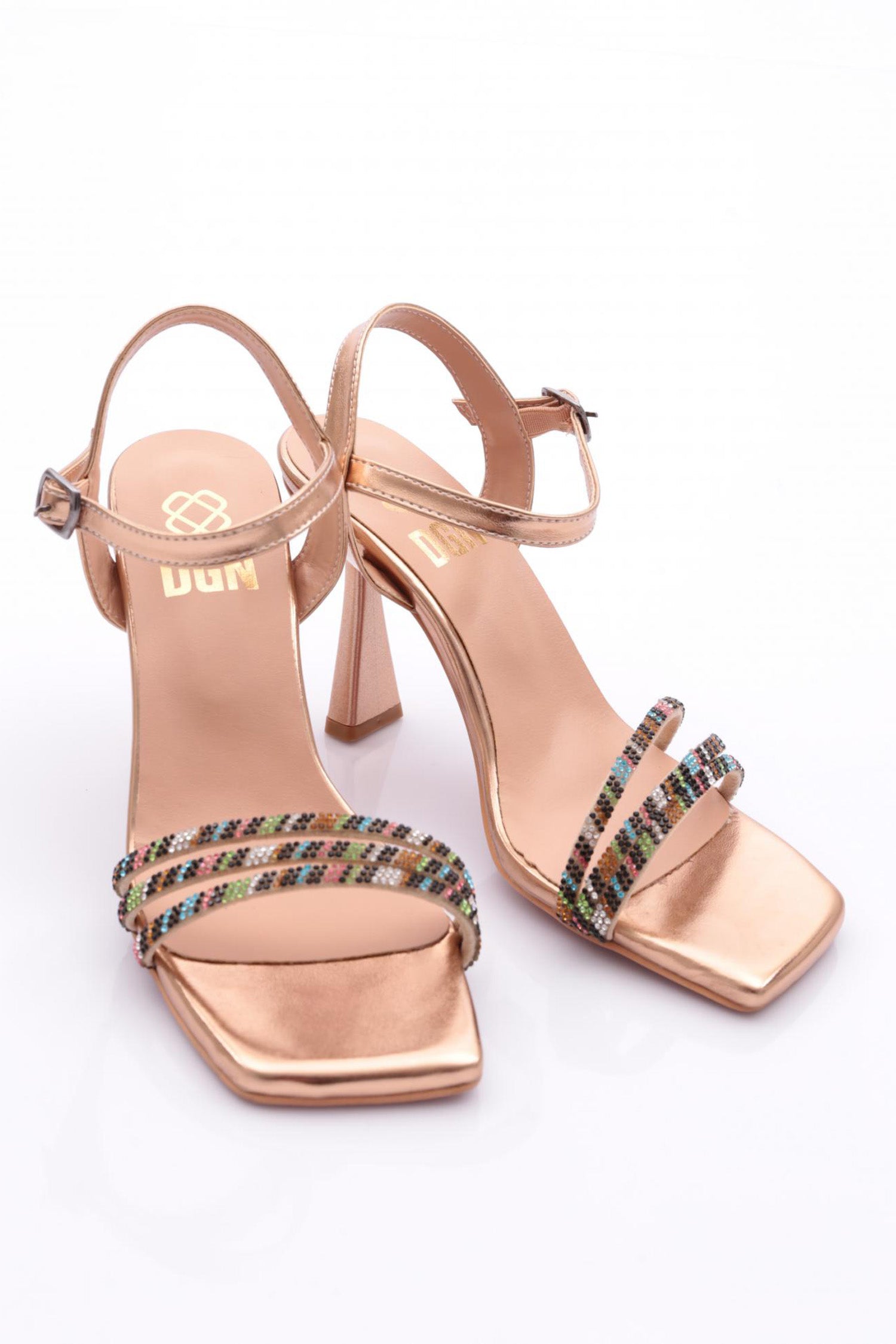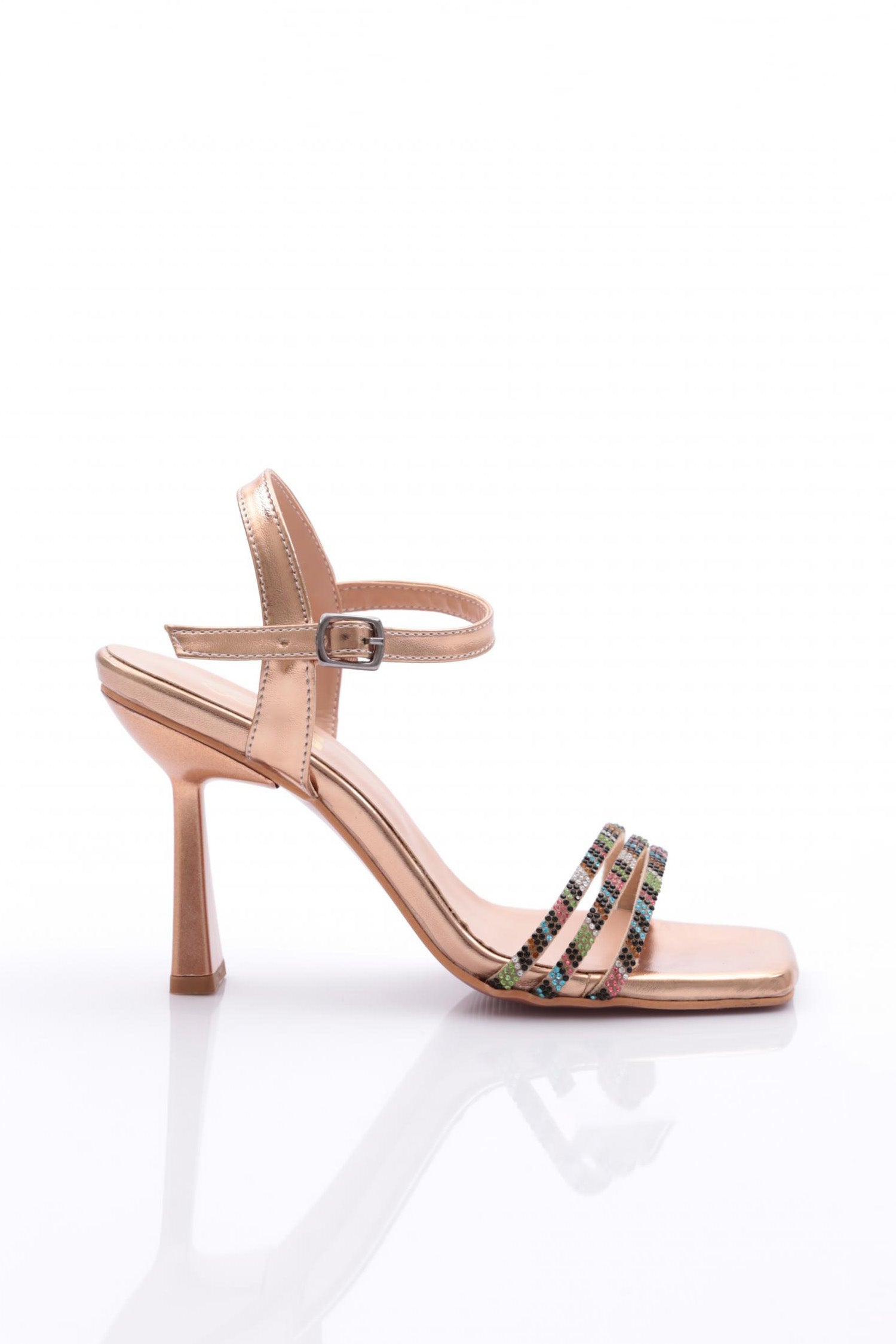 Kadın Renkli Şerit Bilekten Bağlama Topuklu Ayakkabı 23101021029