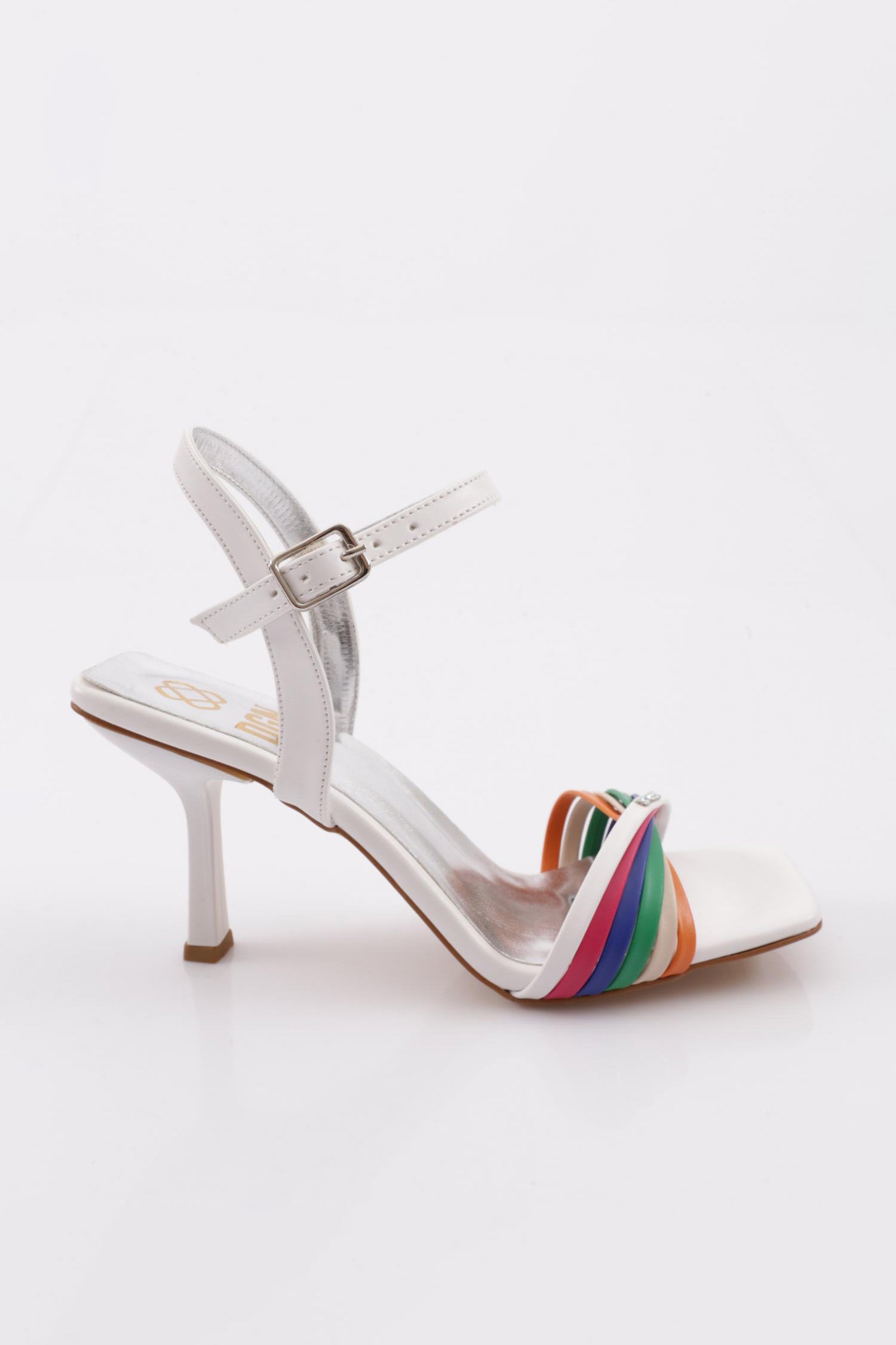 Kadın Renkli Şerit Düz Burun Topuklu Ayakkabı 26232722131962322
