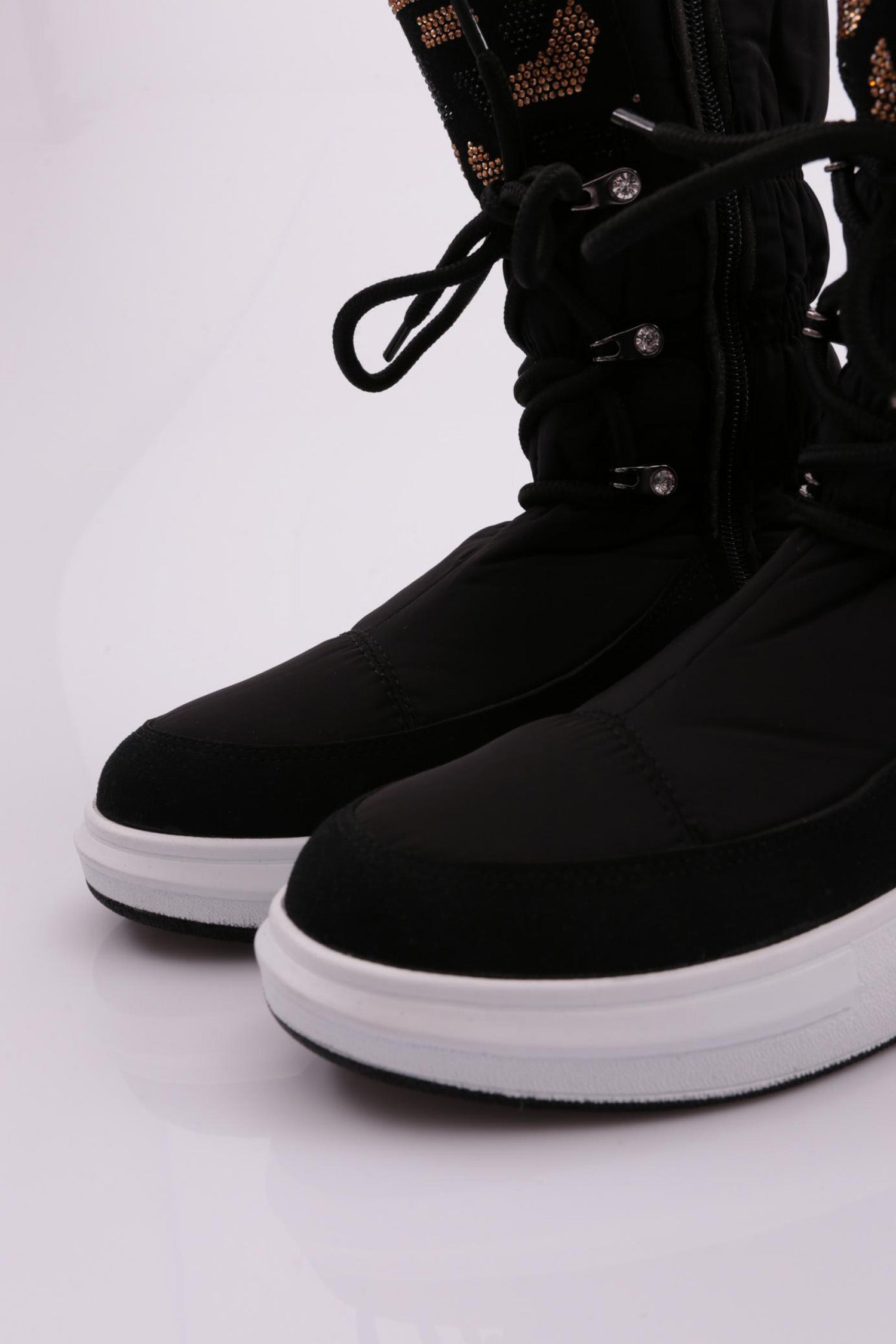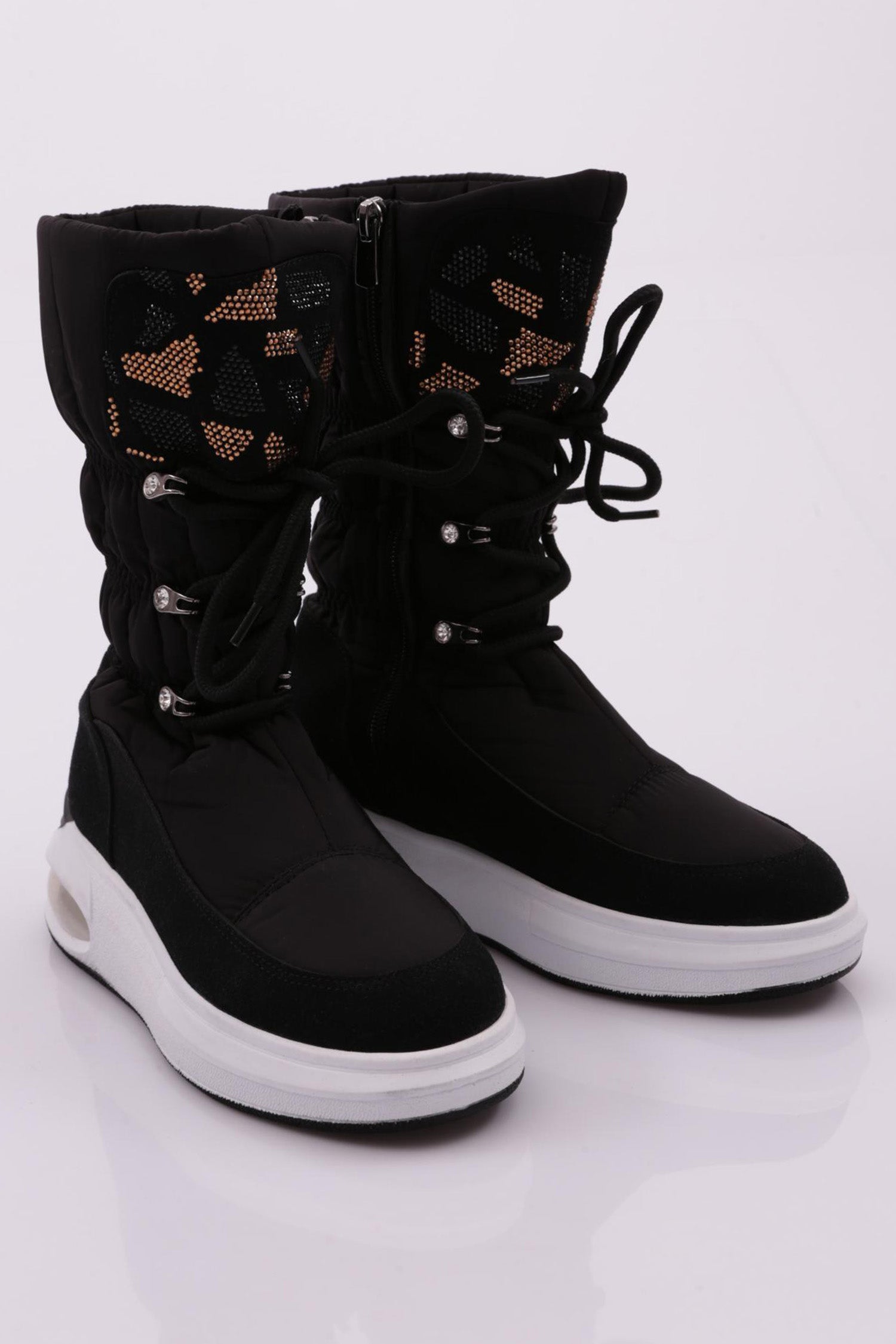 Kadın Silver Taşlı Bağcıklı Kalın Taban Paraşüt Bot 214213137