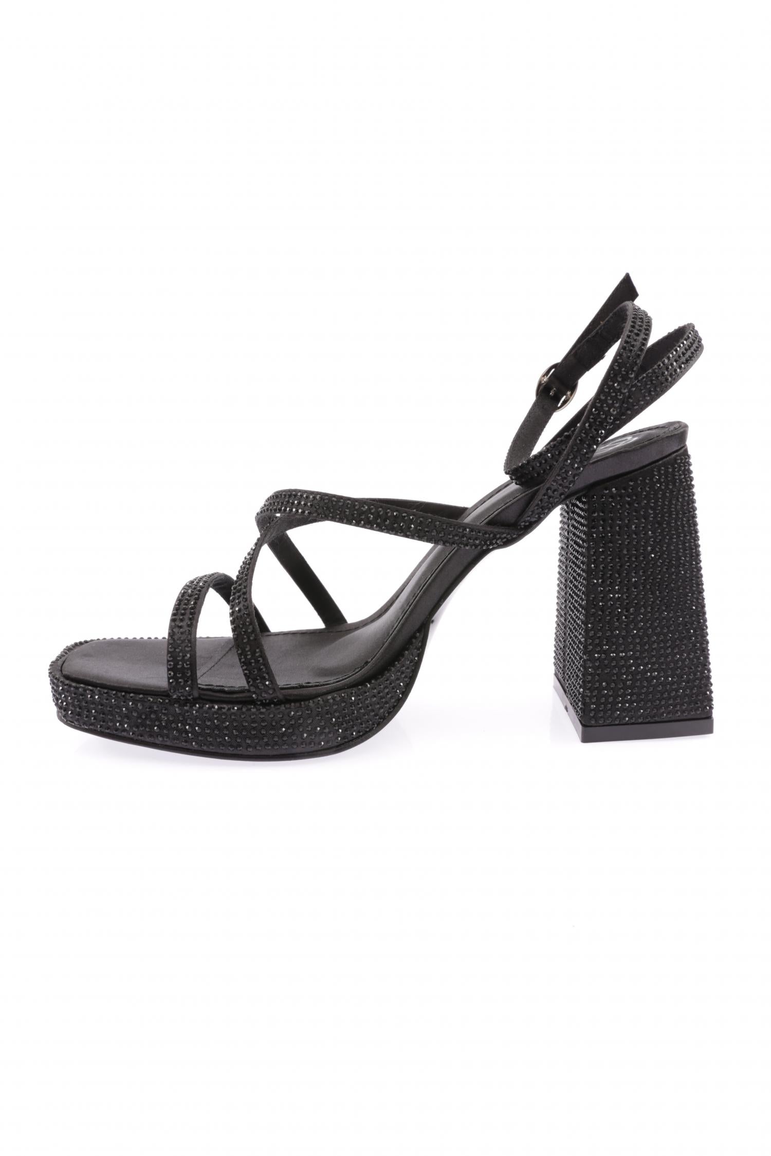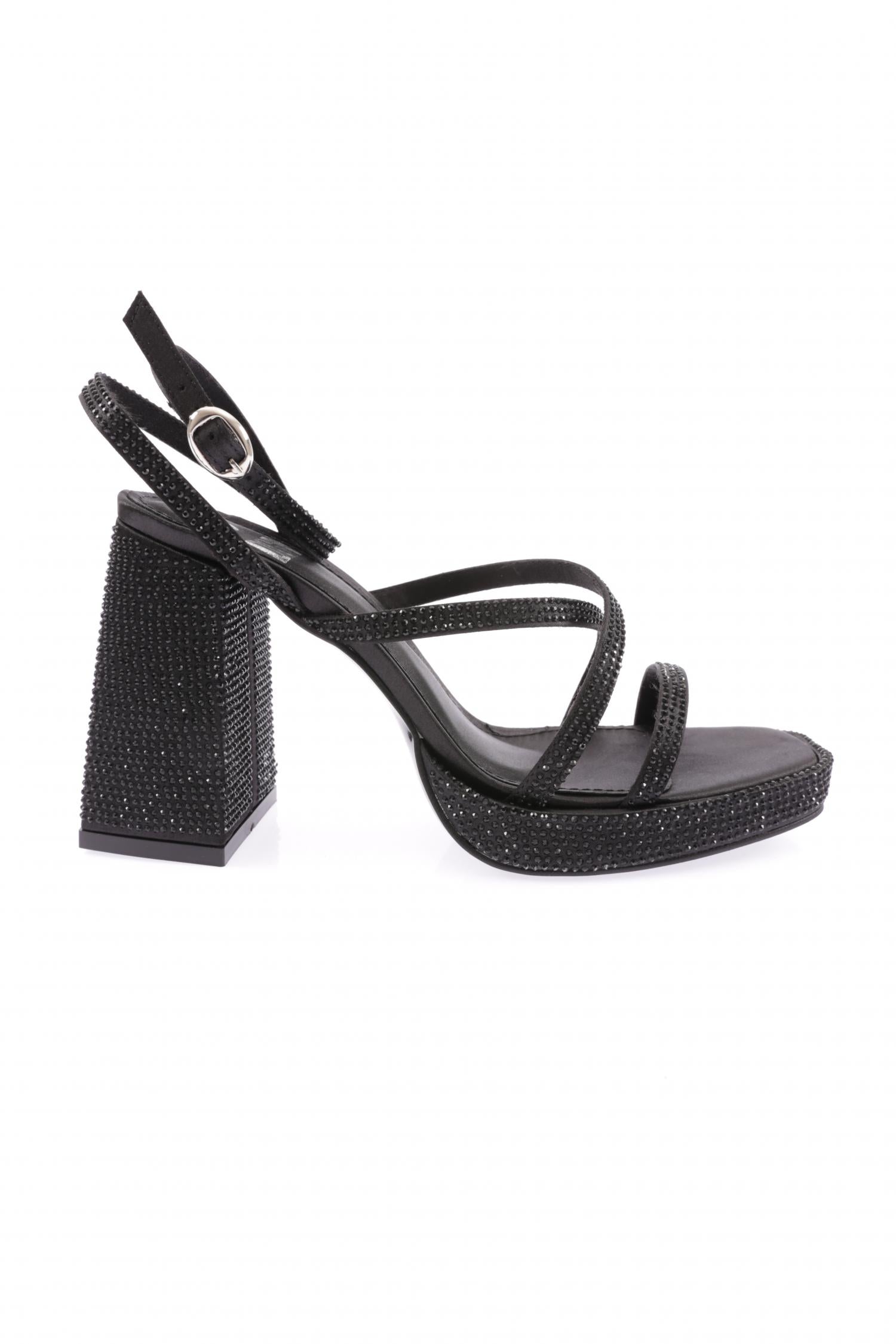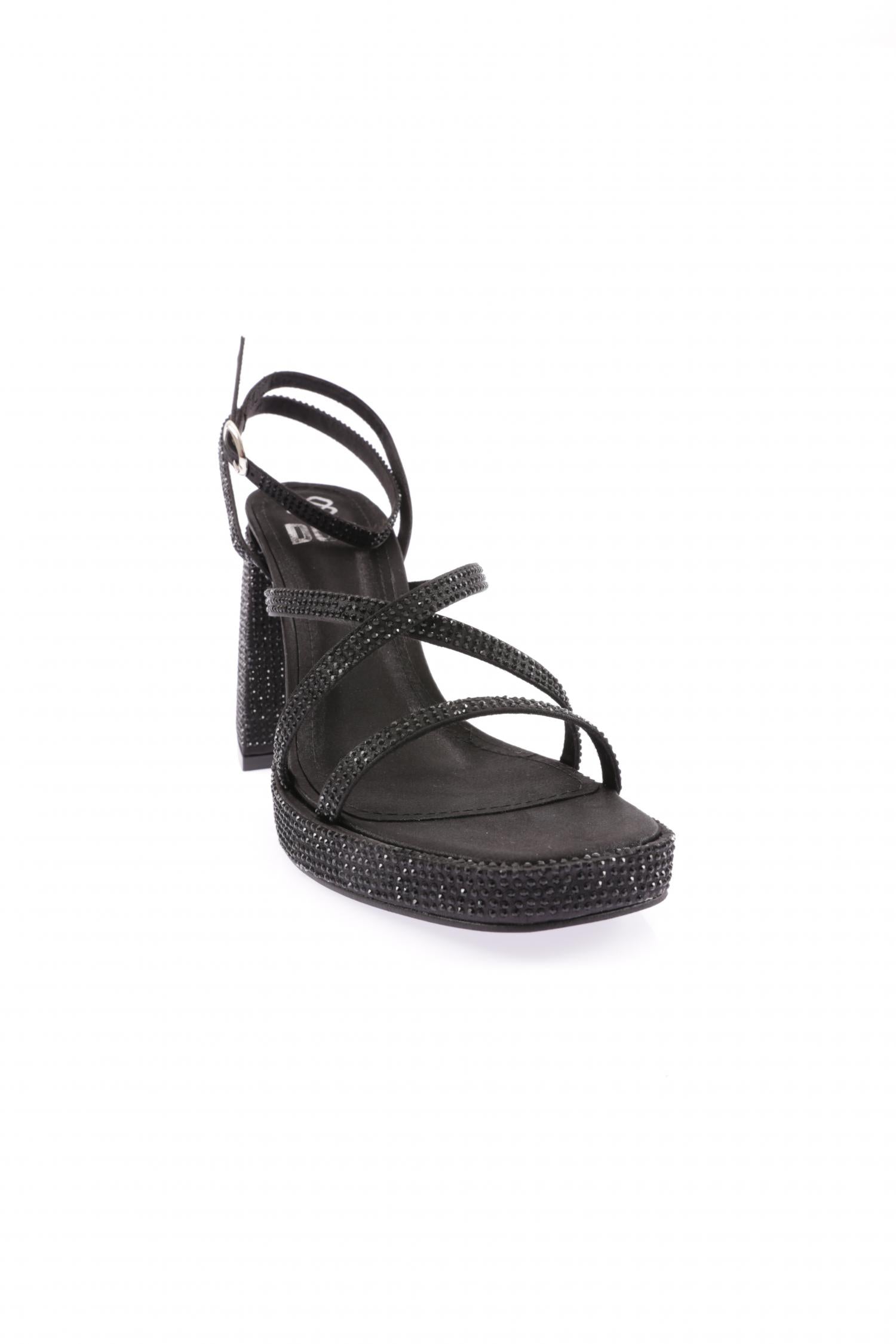 Kadın Sılver Taşlı Tek Çapraz Bant Alçak Platform Yüksek Topuk Bilekten Bağlı Ayakkabı 8864535