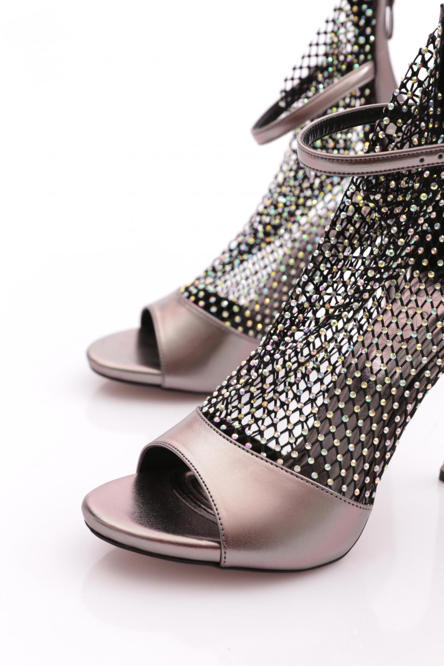 Kadın Silver Taşlı Transparan Bilekten Kemer Bağlamalı Topuklu Ayakkabı 314233210