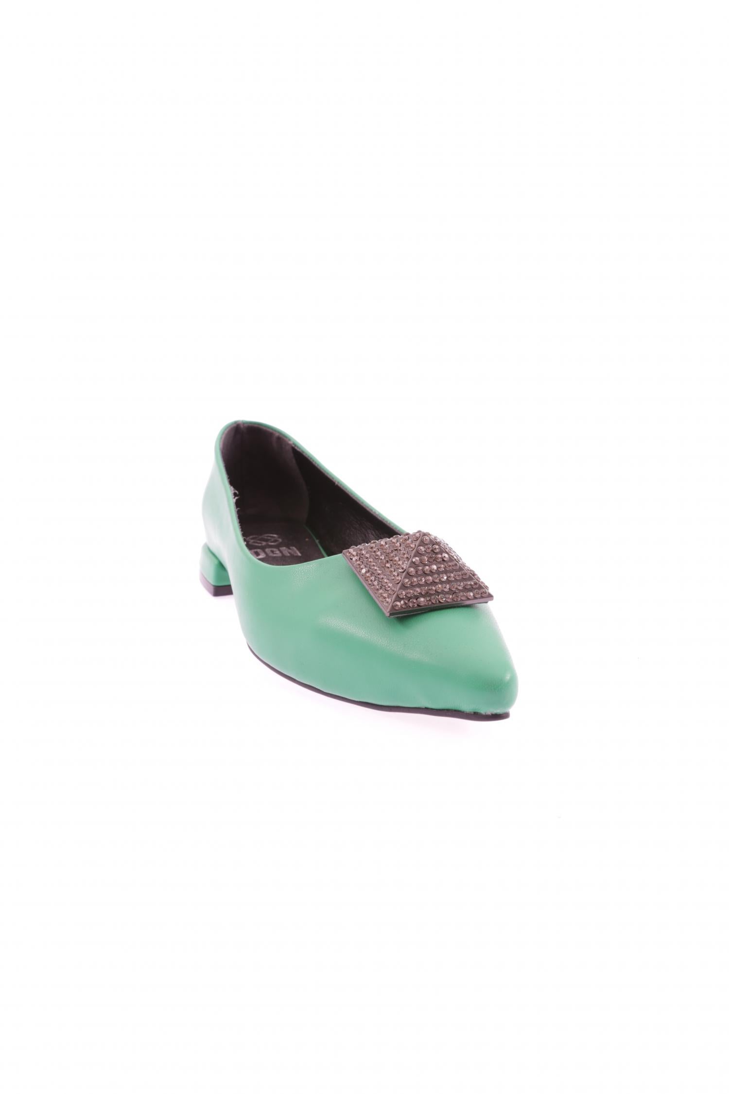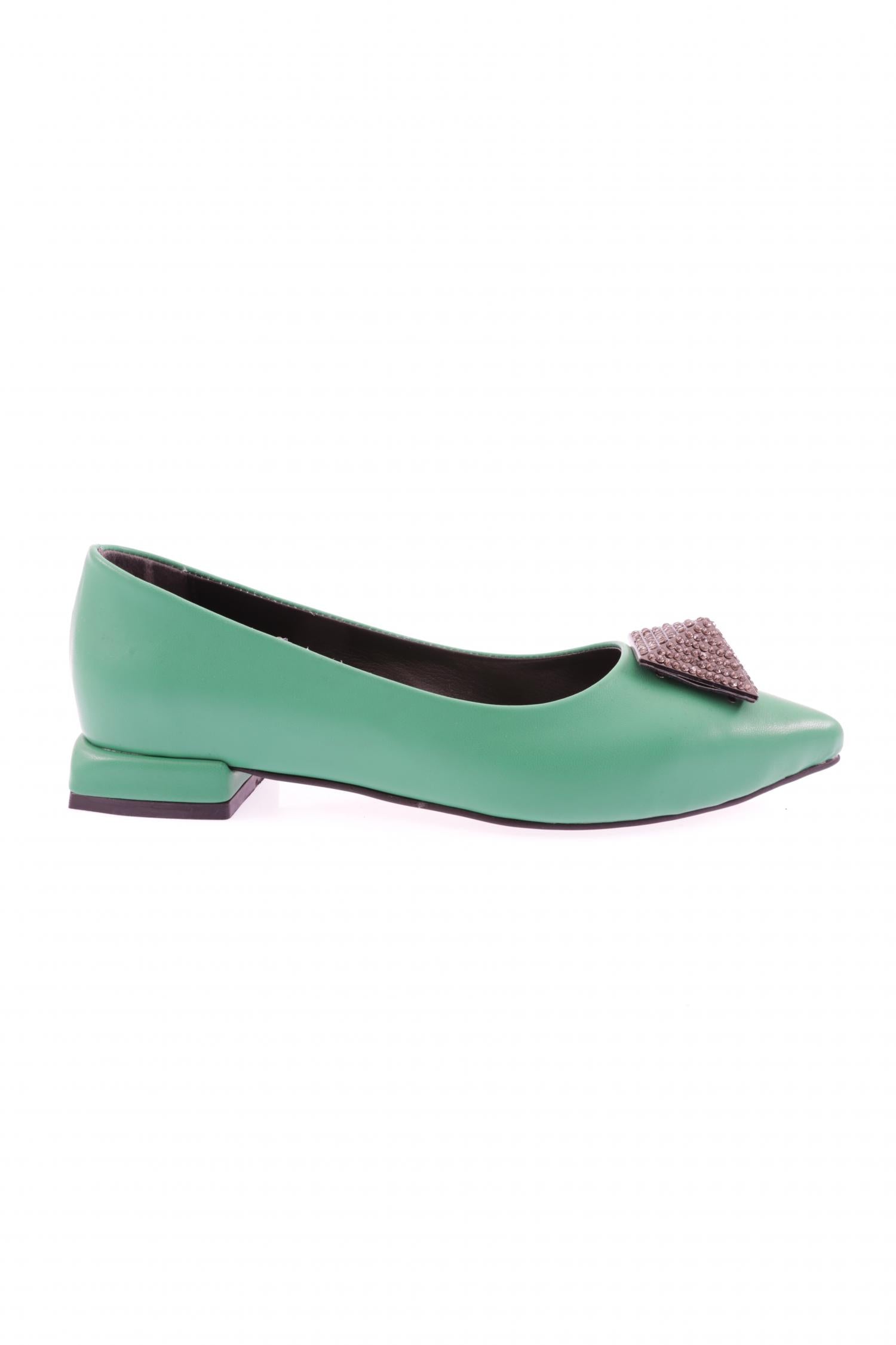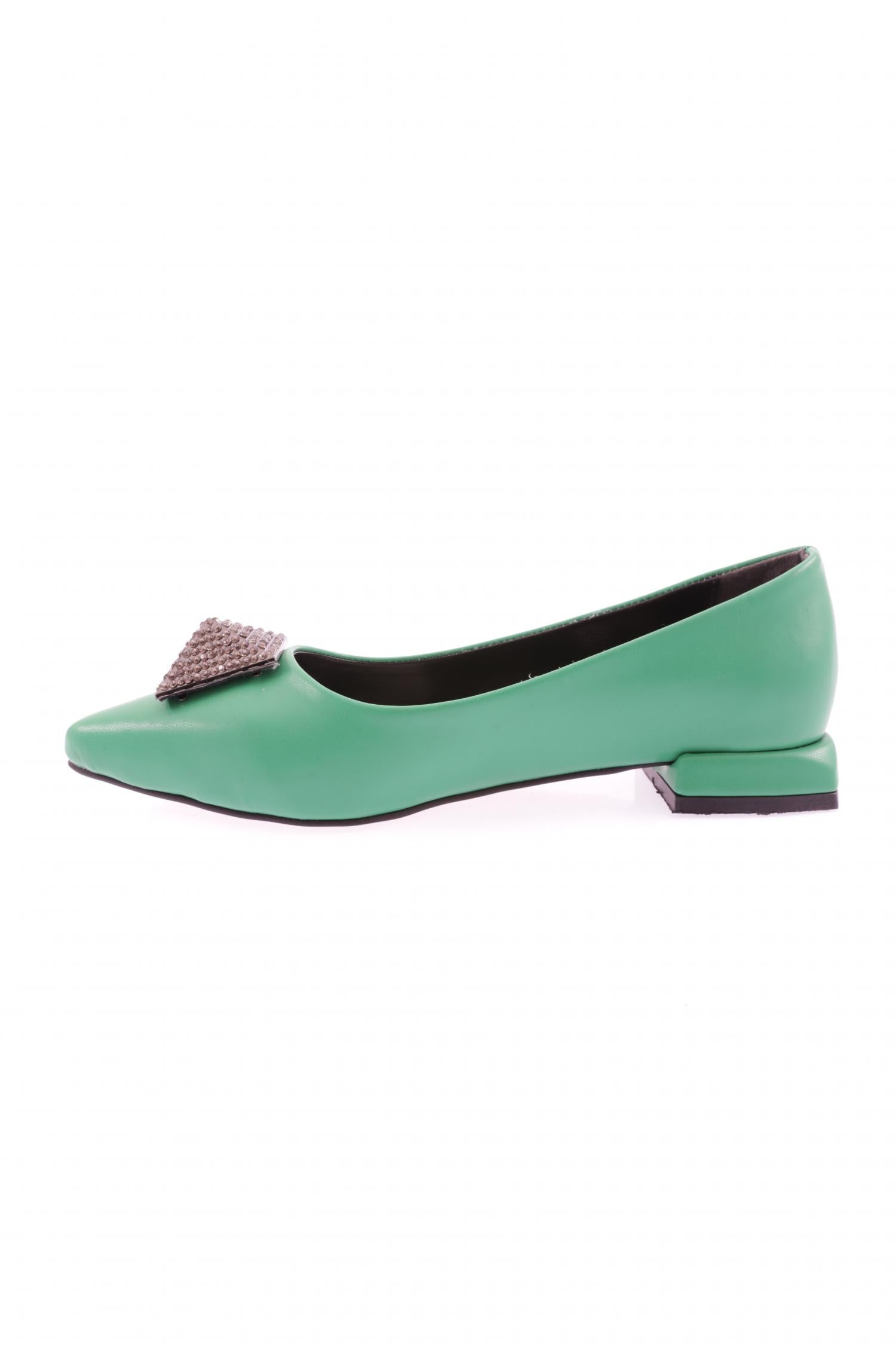 Kadın Sivri Burun Kristal Taş Tokalı Galvaniz Ökçeli Babet 39182534