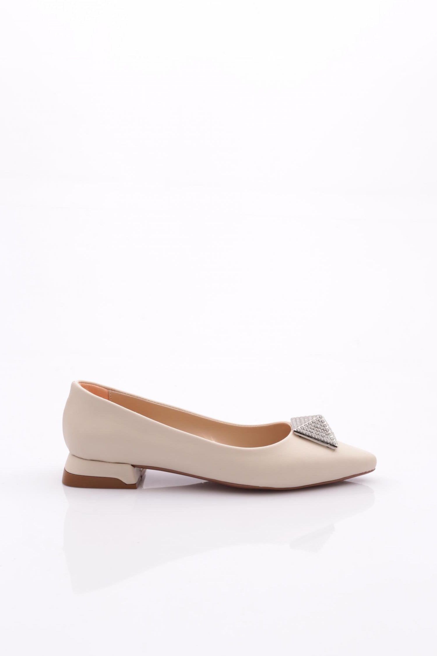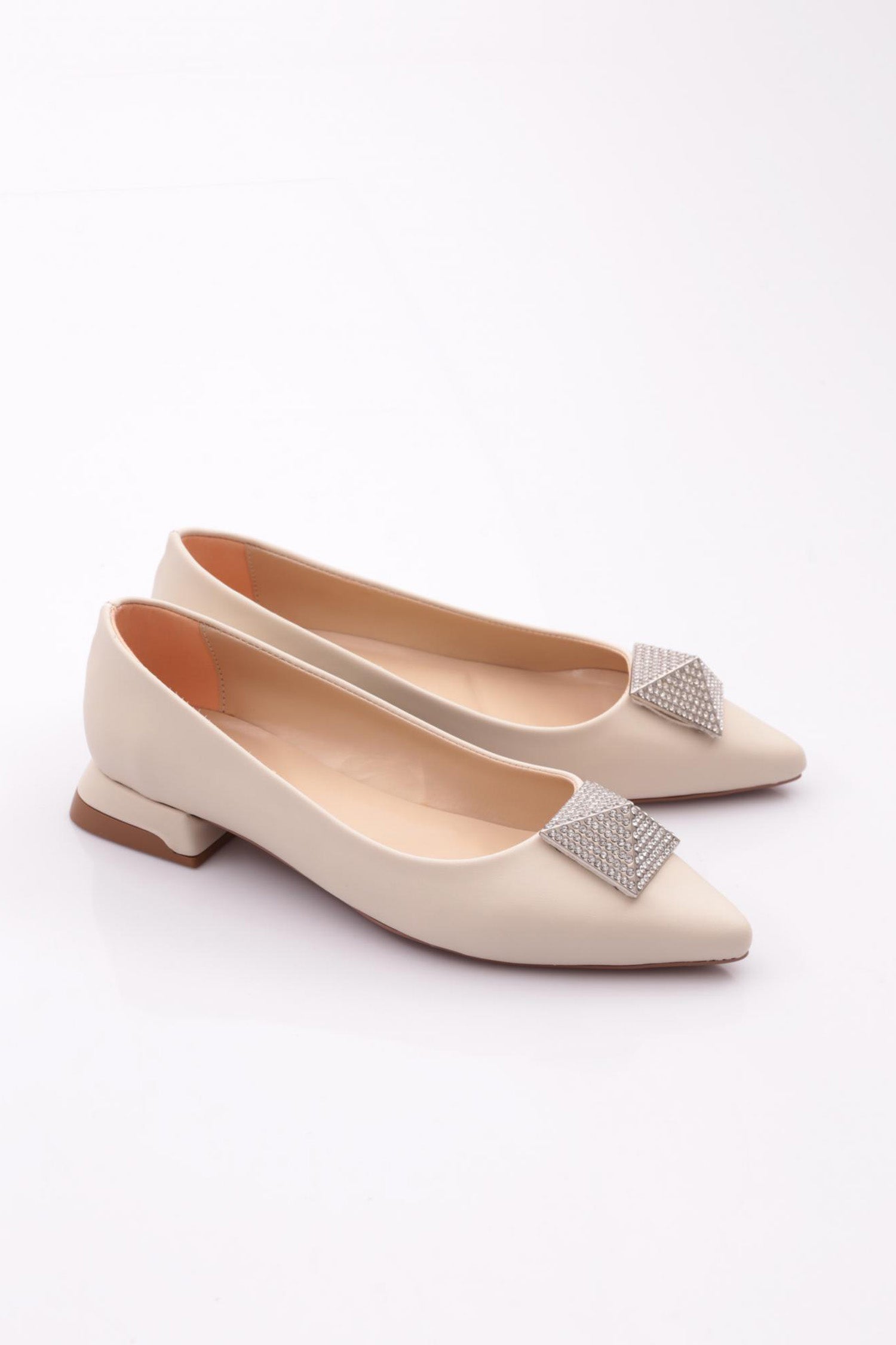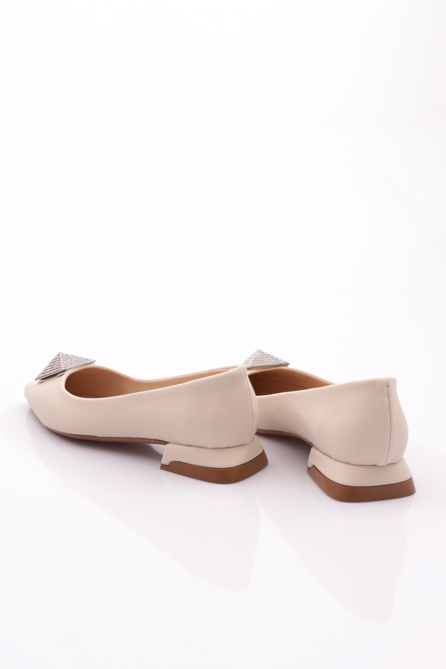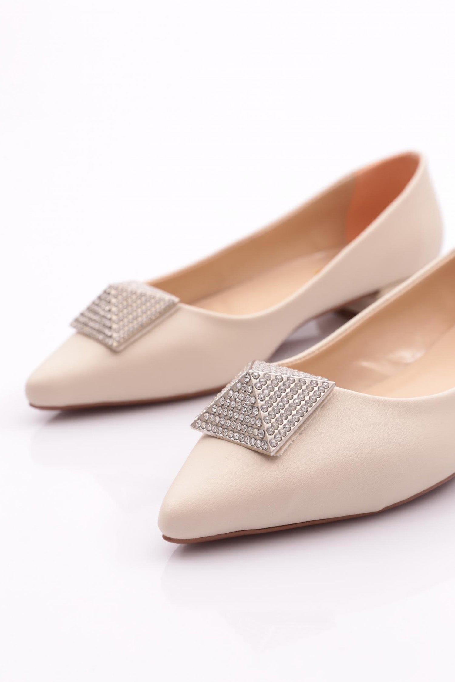 Kadın Sivri Burun Kristal Taş Tokalı Galvaniz Ökçeli Babet 39182534